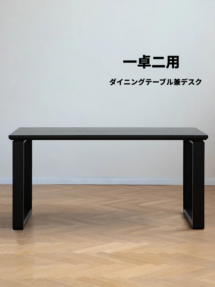 黒い無垢材のダイニングテーブル|侘寂スタイルのレストラン家具|赤オークの大板テーブル|現代的でシンプルな家庭用ダイニングテーブル&椅子セット|スタイリッシュで温かみのある空間作りに最適!