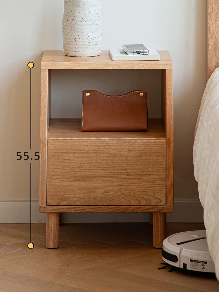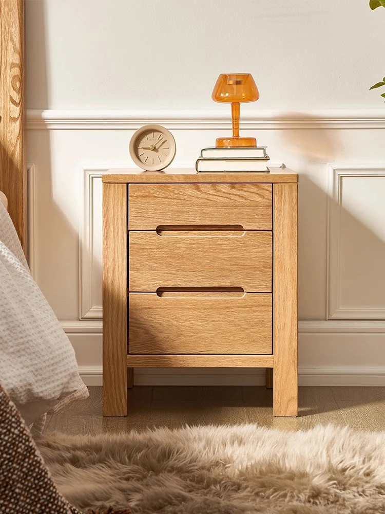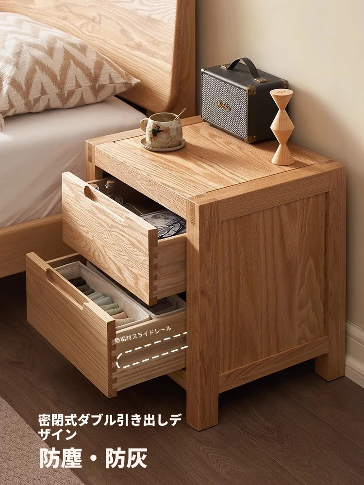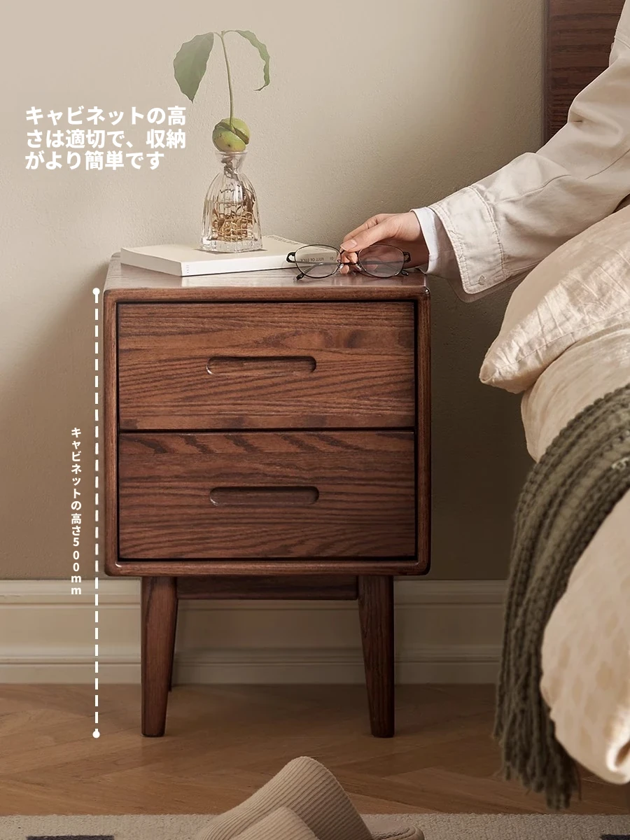 原始原素本物の無垢材ベッドサイドキャビネット|北欧スタイルのオーク材使用|シンプルでモダンなデザイン|寝室にぴったりの収納力!