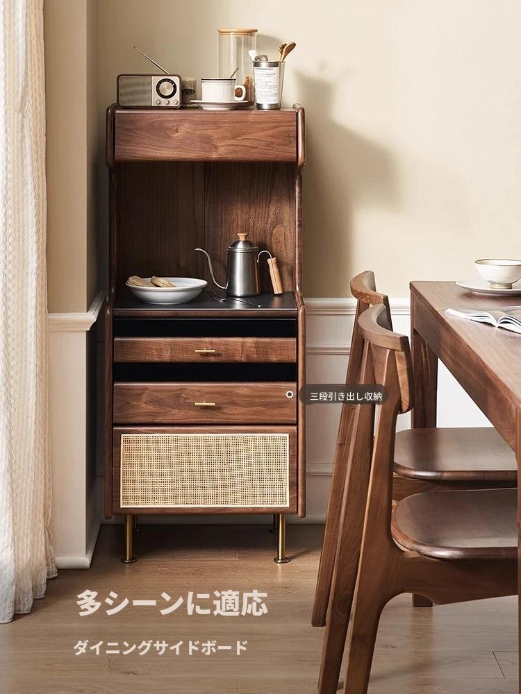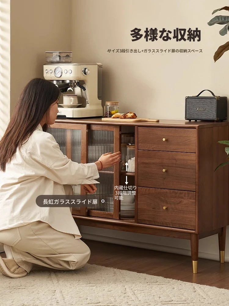 原始のエッセンス 全実木のダイニングサイドボード 高級感漂う北米産ブラックウォールナット 小スペースに最適な収納キャビネット