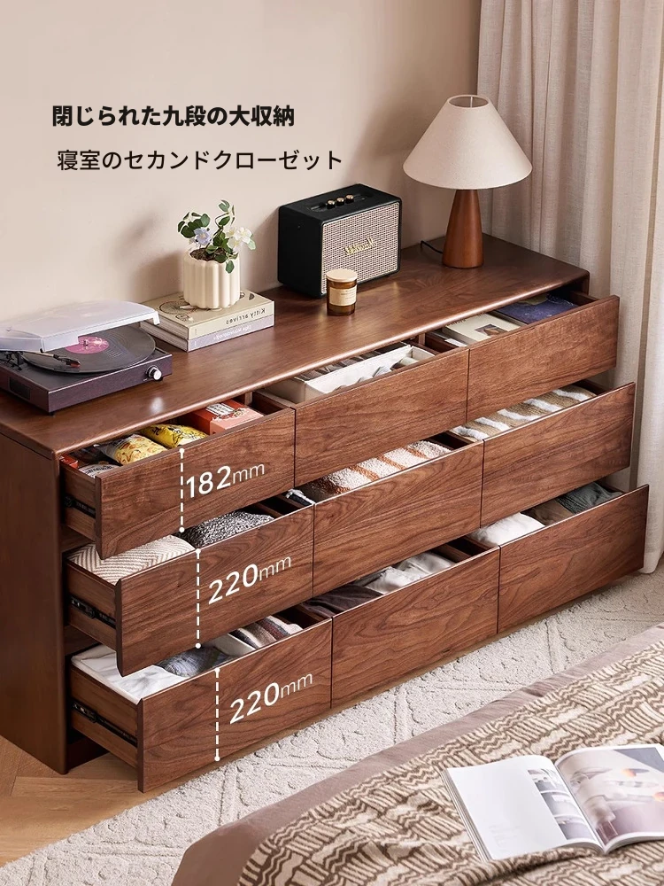 オリジナルエレメント 北米産 ブラックウォールナット製 9段収納チェスト 大容量 引き出し付き ベッドサイドキャビネット - スタイリッシュで機能的な収納ソリューション!