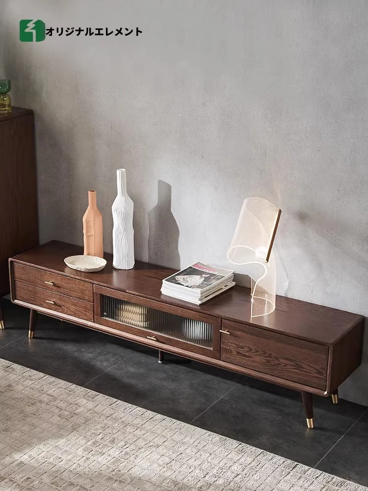 オリジナルエレメント 全無垢材 テレビボード ブラックウォールナット モダンミニマル リビングルーム 小型収納キャビネット スタイリッシュな空間を演出し、機能性も兼ね備えたデザイン!