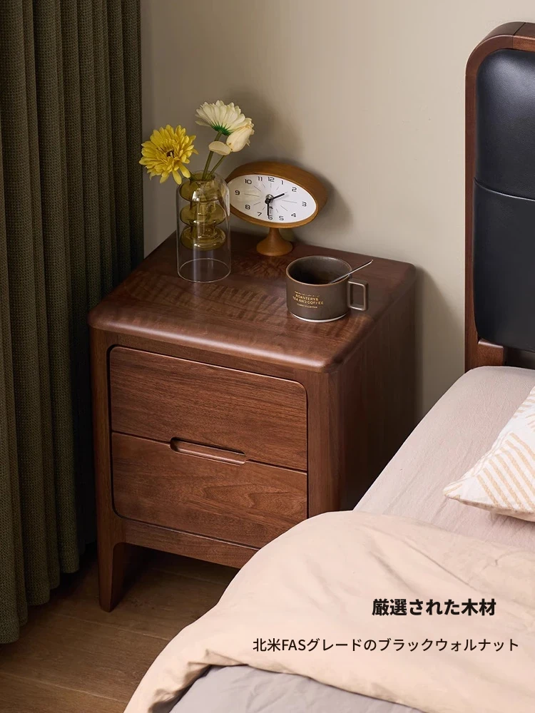 オリジナルエッセンス全無垢材ベッドサイドキャビネット 北米産ウォールナット製 シンプルなデザインの寝室ストレージボックス ベッドサイド収納に最適!
