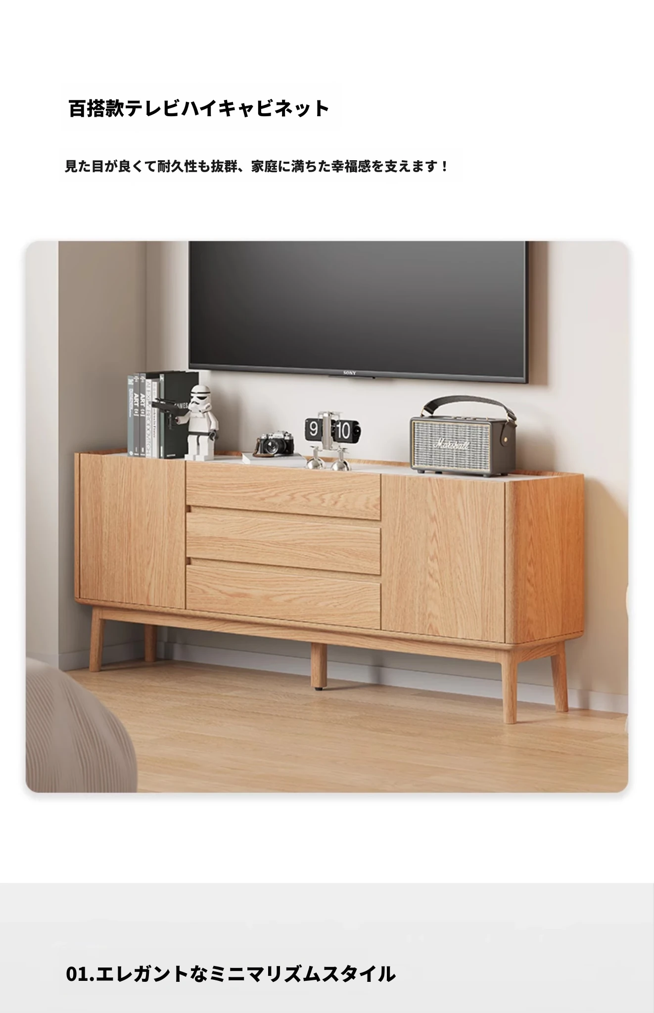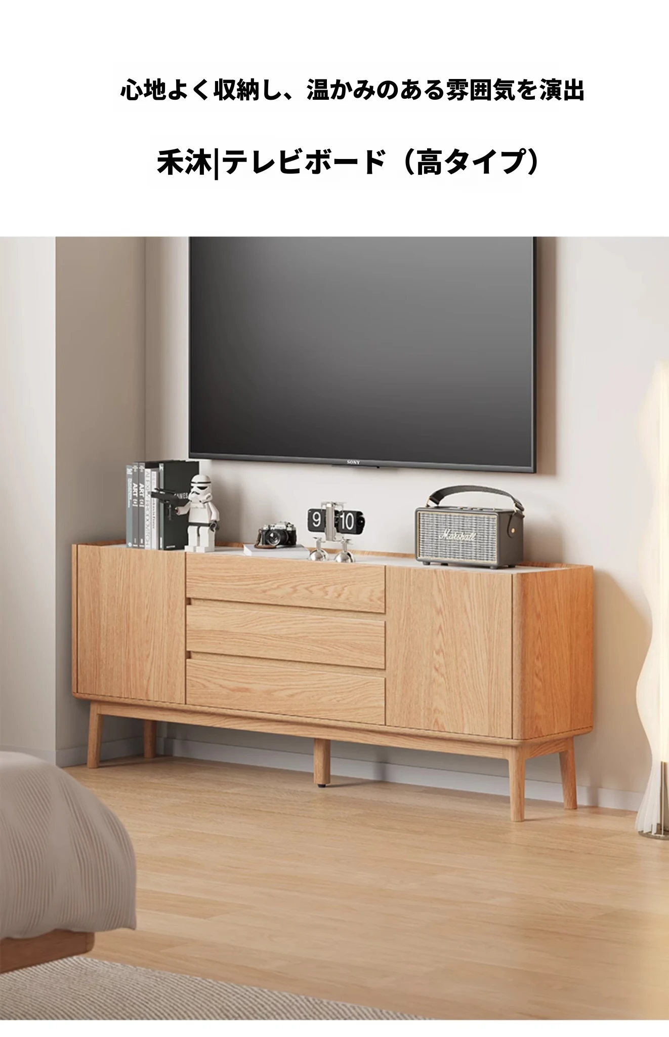 天然木製のシンプルモダン高脚ロックスタイルテレビボード - おしゃれで機能的、あなたの寝室を格上げするアイテム!