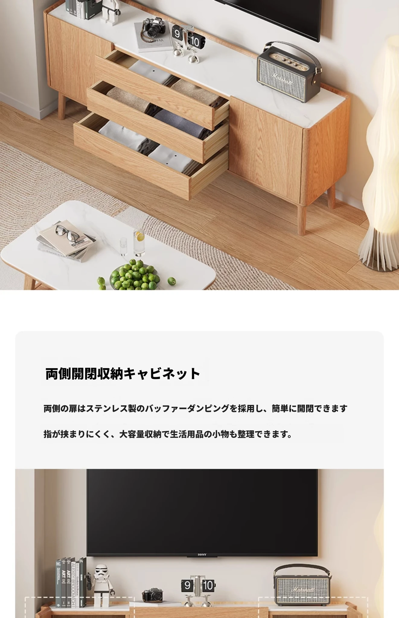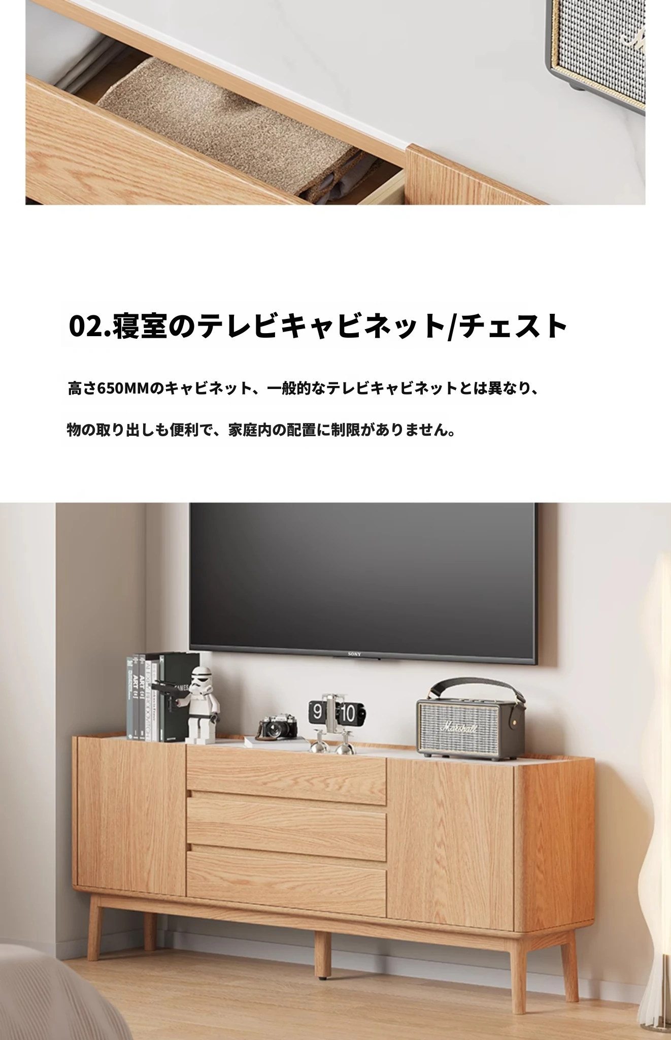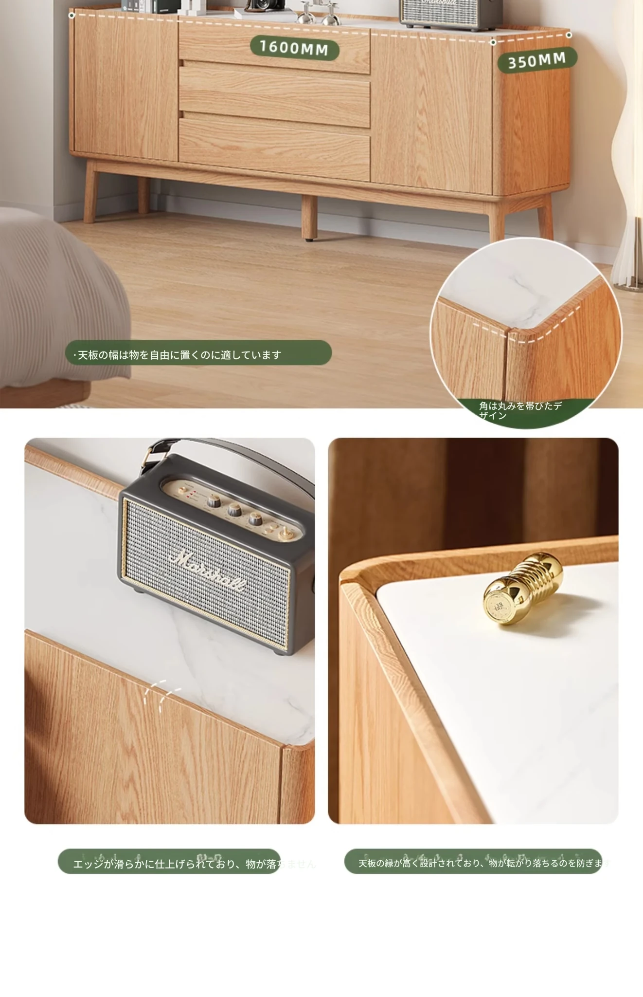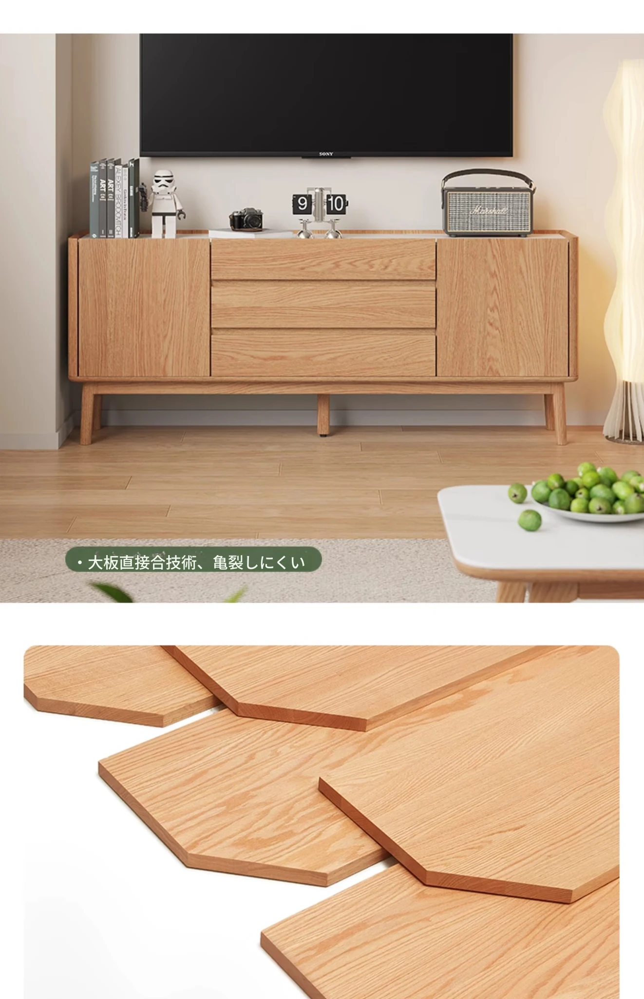 原木色-オーク岩板テレビキャビネット 1600*350*650mm