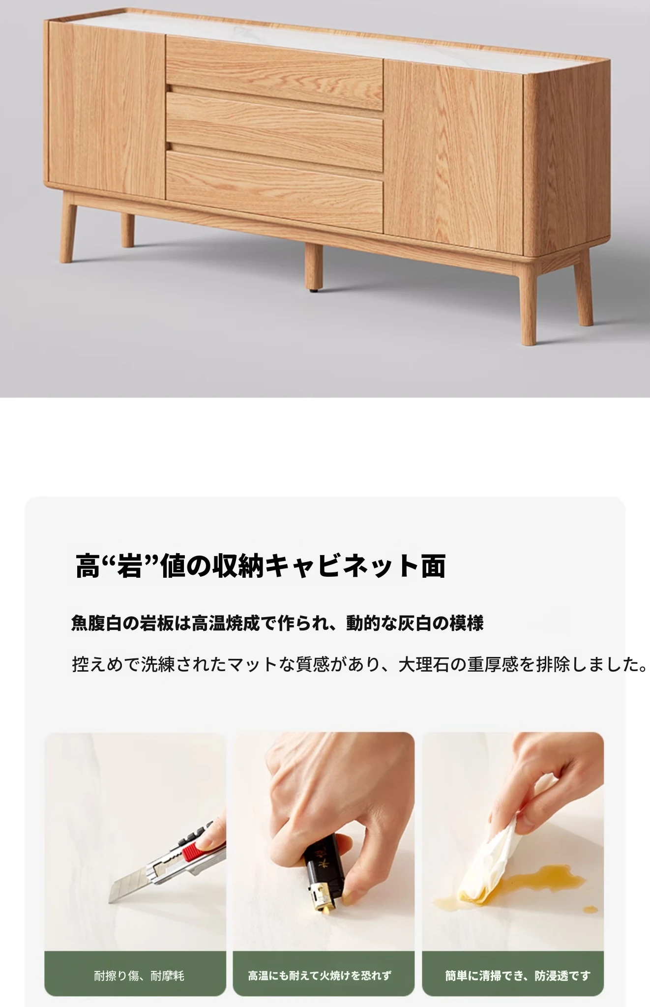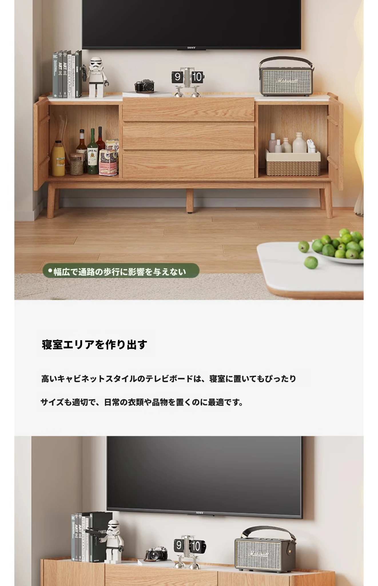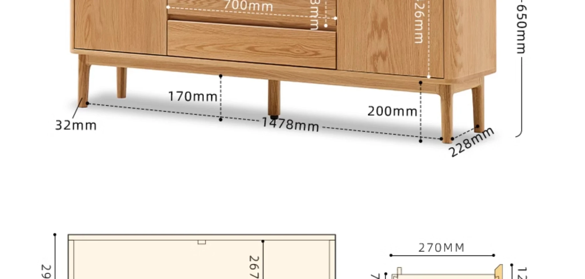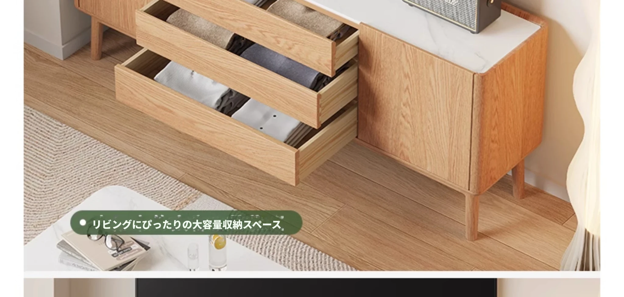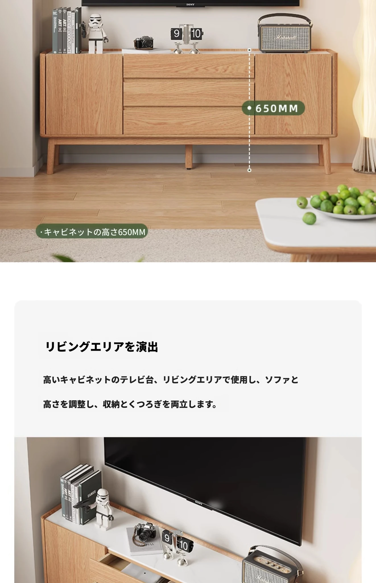 原木色-オーク岩板テレビキャビネット 1600*350*650mm