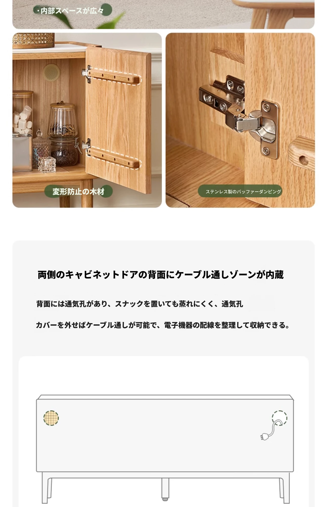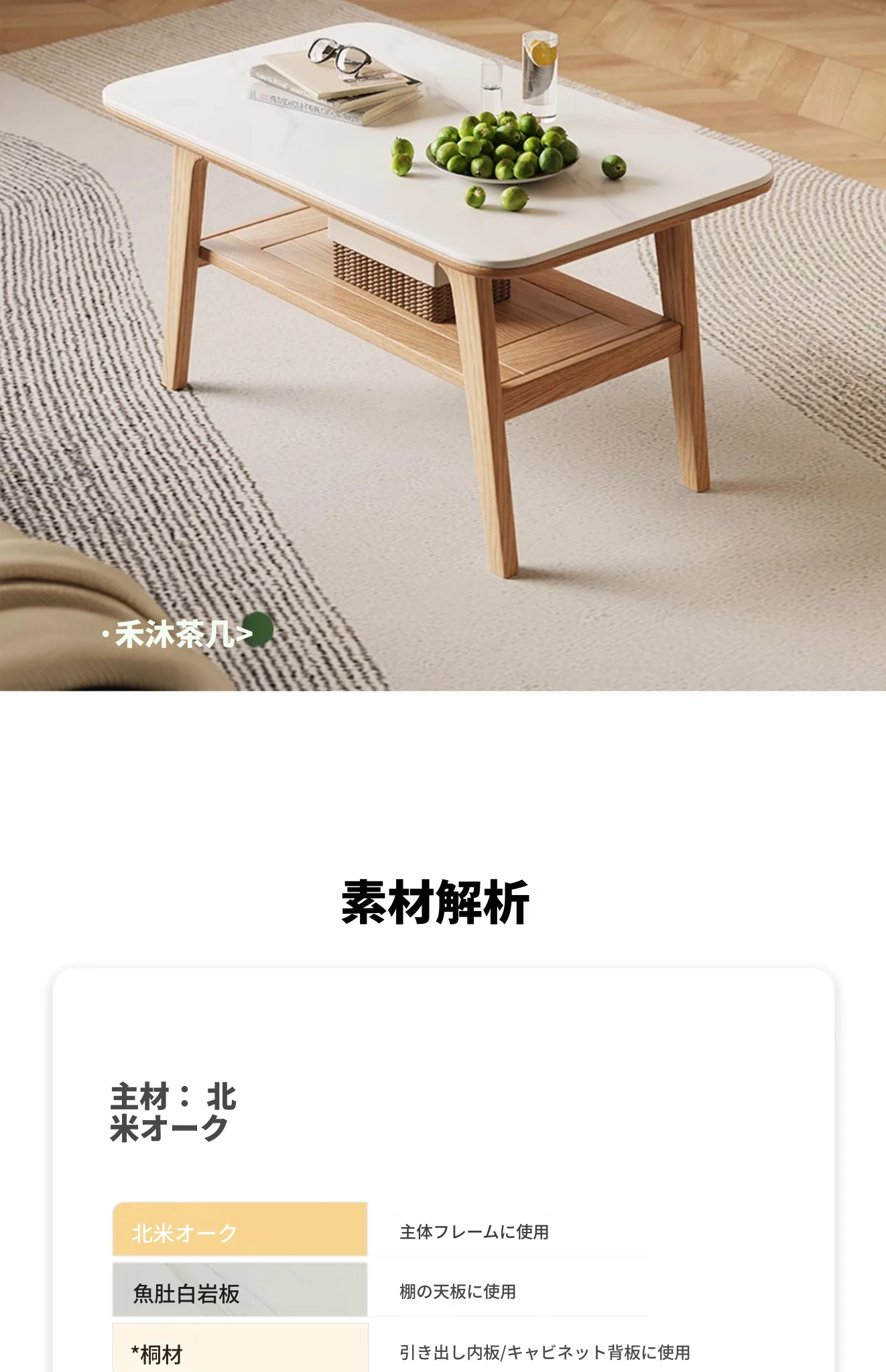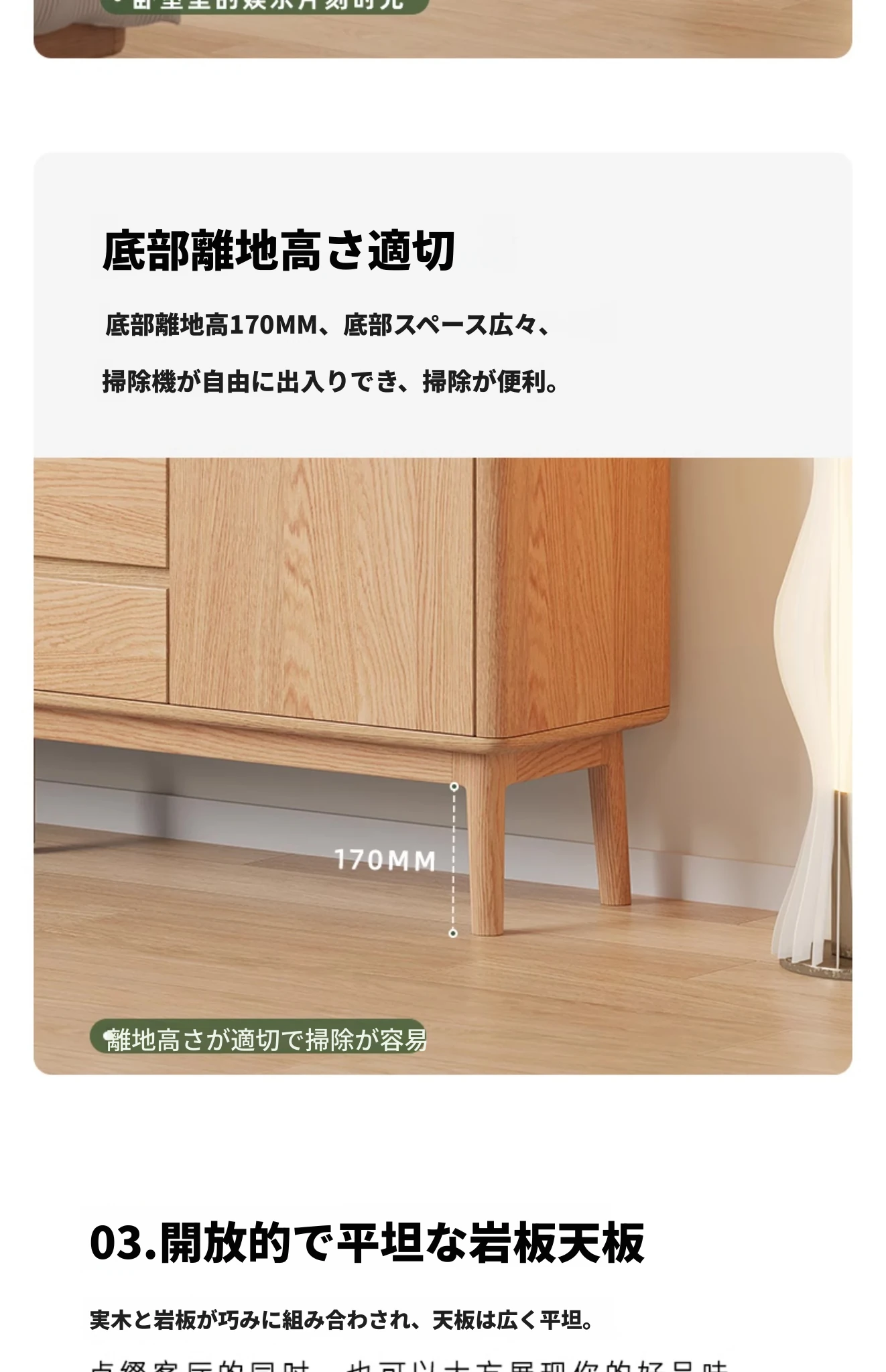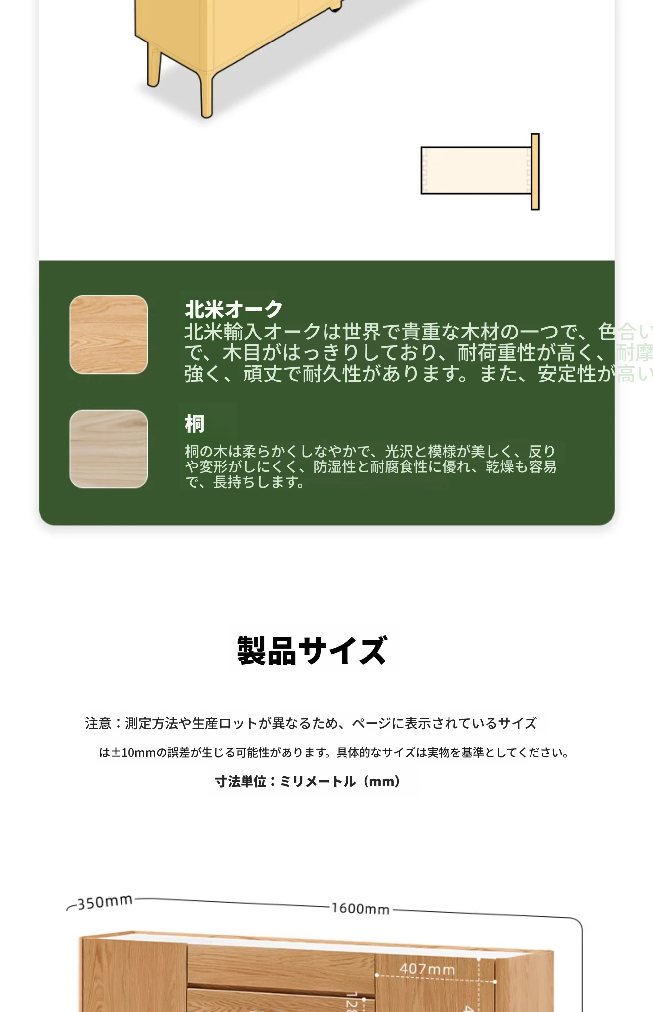 原木色-オーク岩板テレビキャビネット 1600*350*650mm