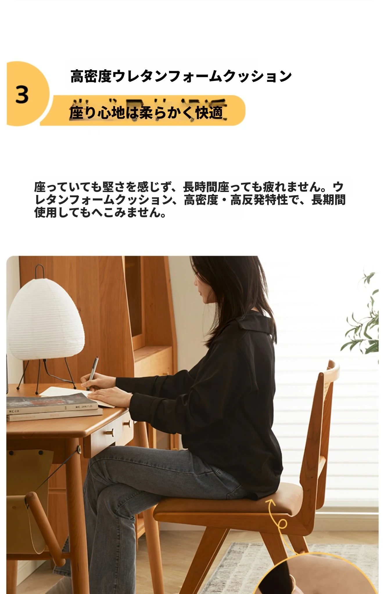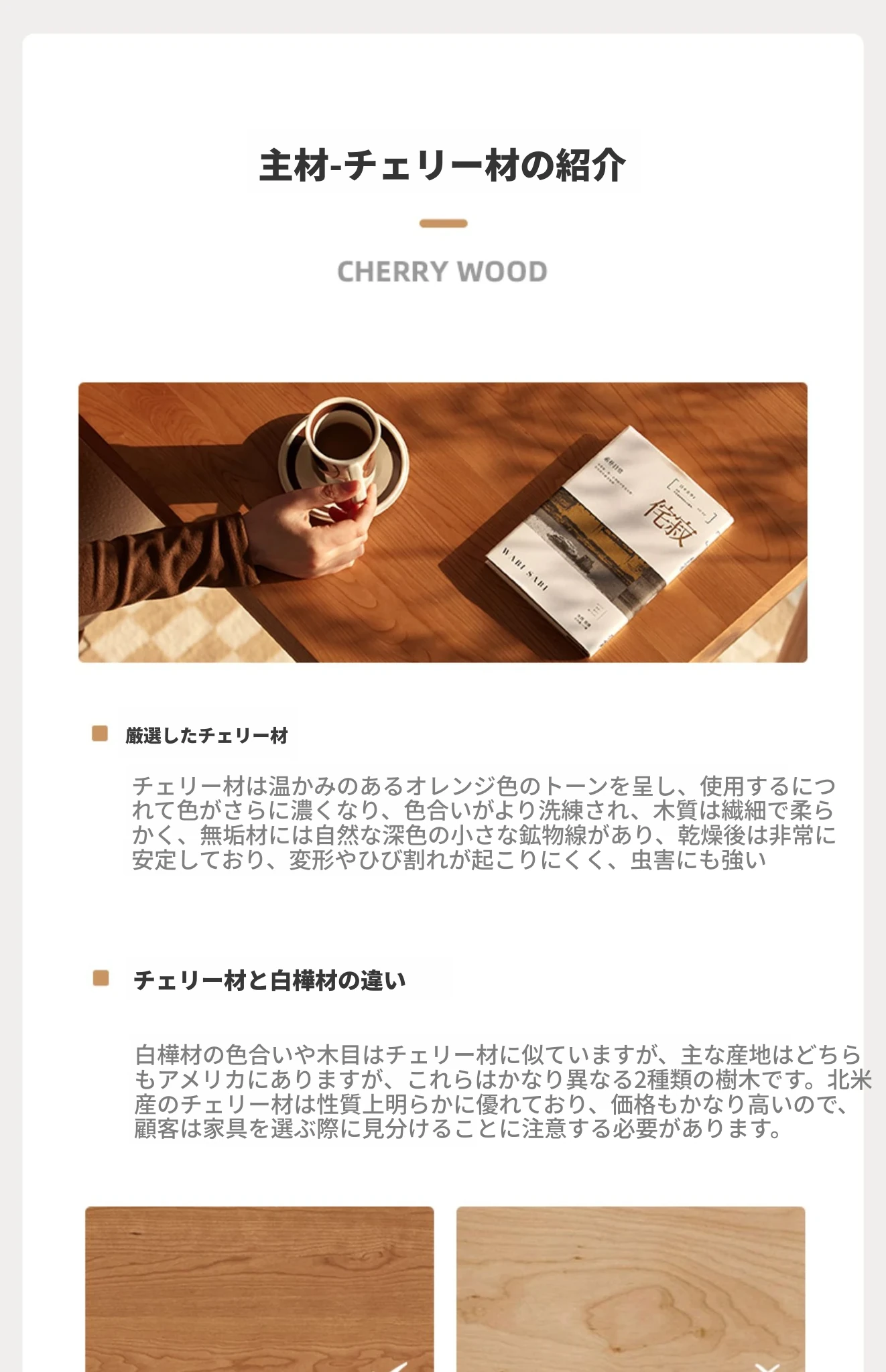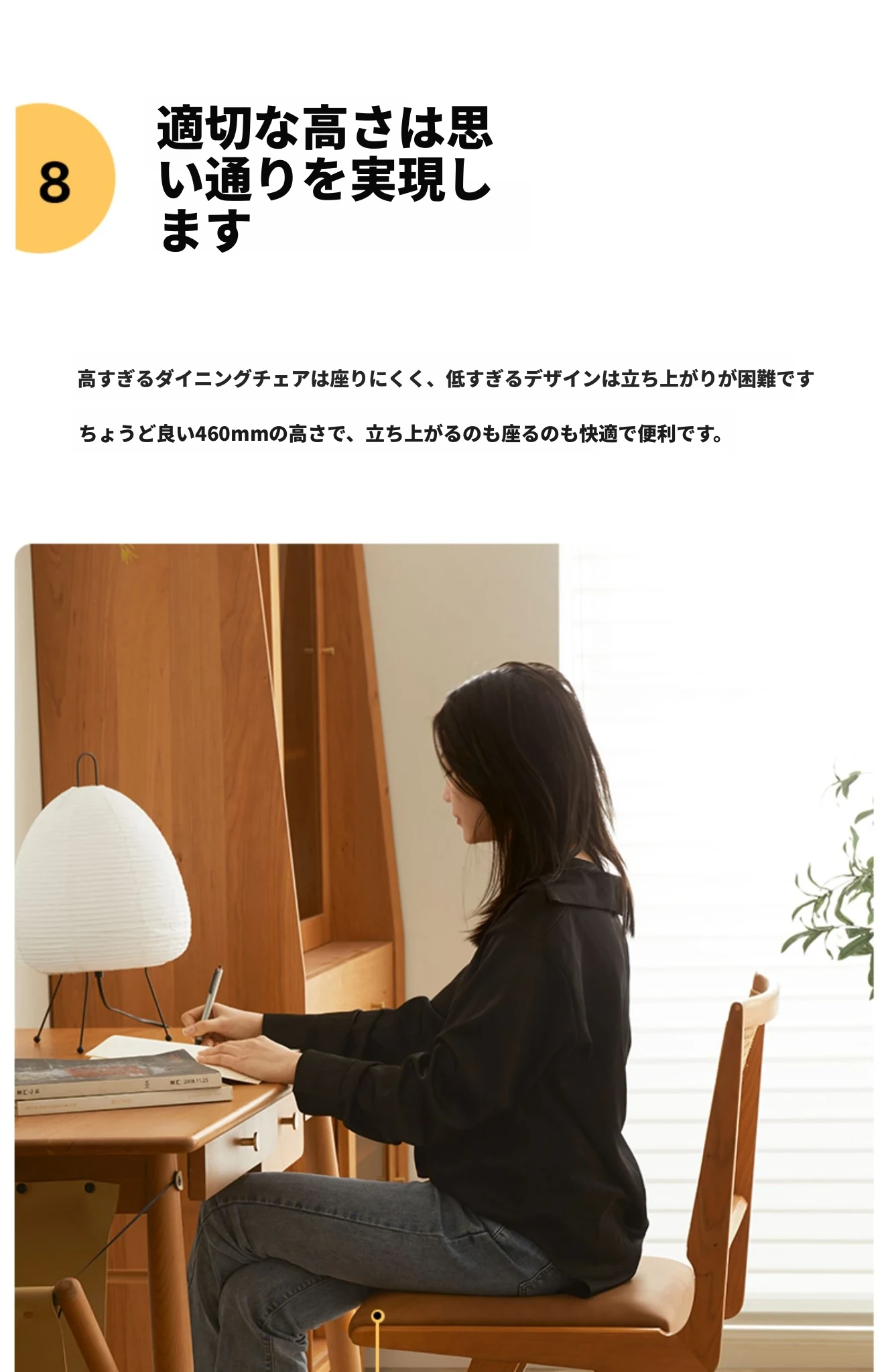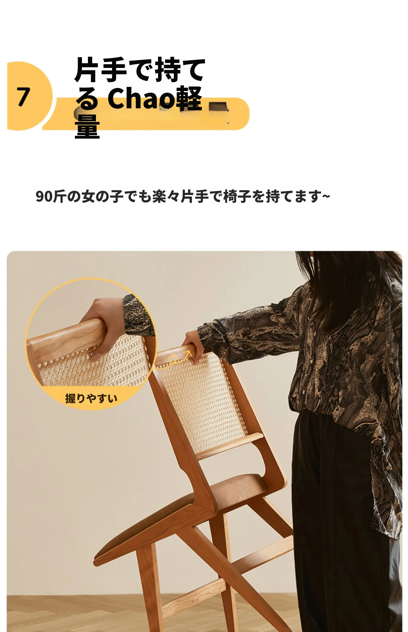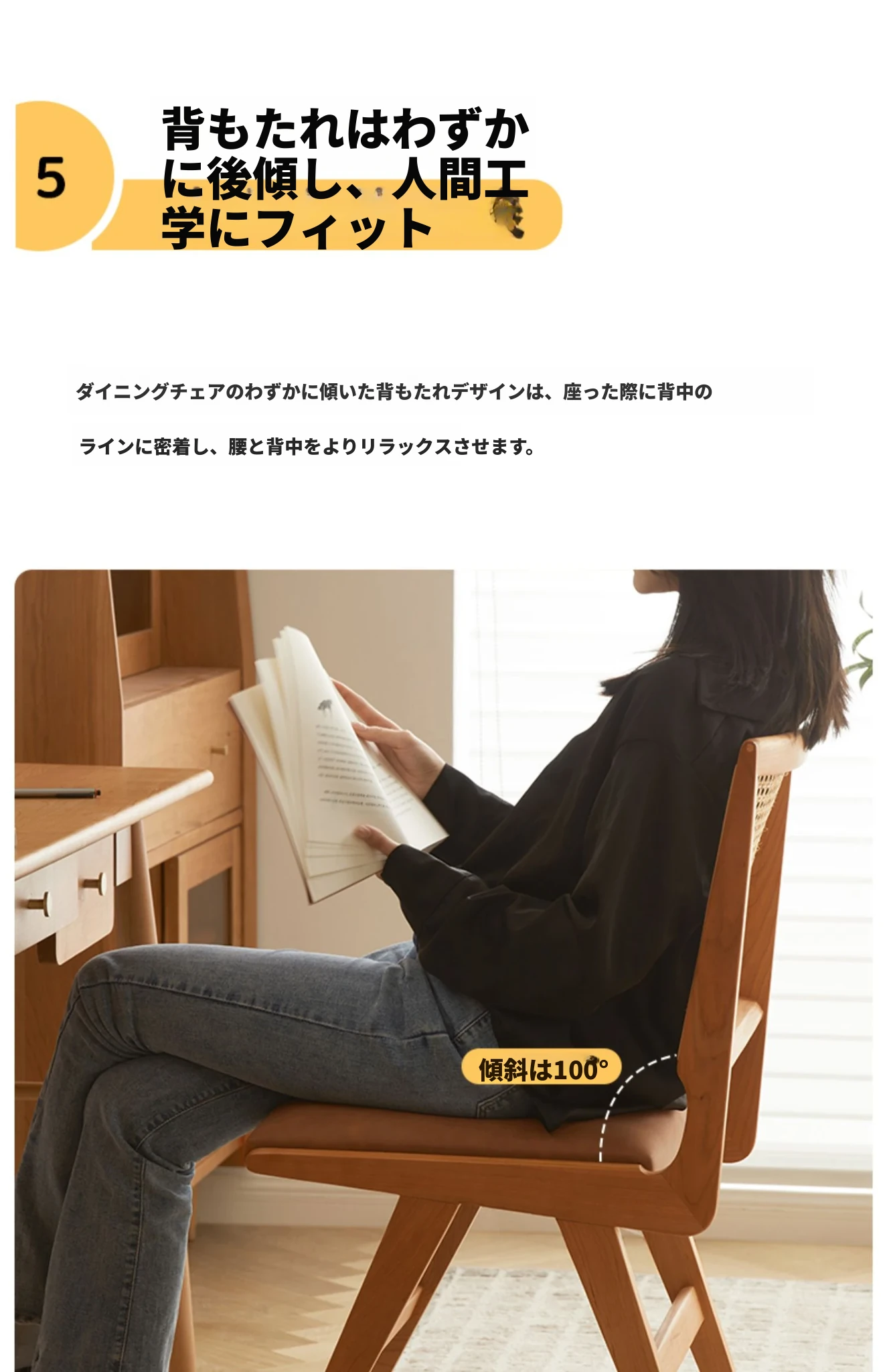 原木の北欧侘寂スタイル、チェリーウッドの背もたれ付きダイニングチェア - 小規模住宅に最適な通気性の高いラタン製リラックスチェア!おしゃれで心地よい空間を演出します。