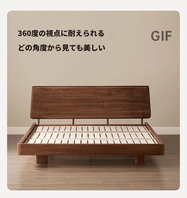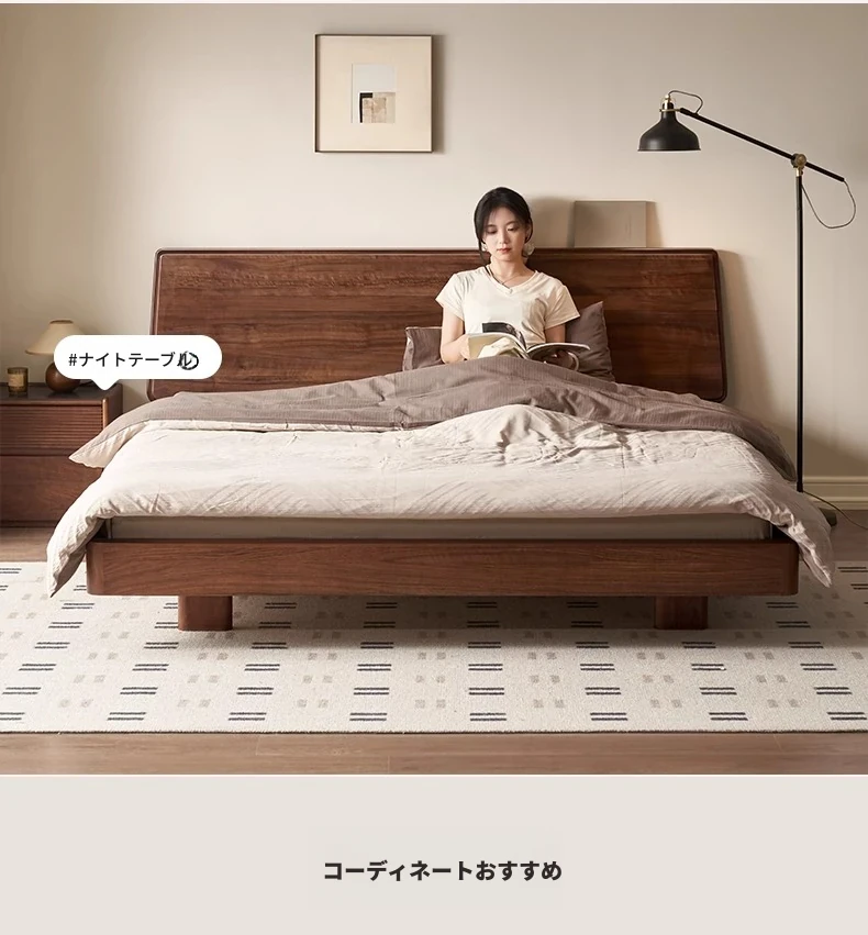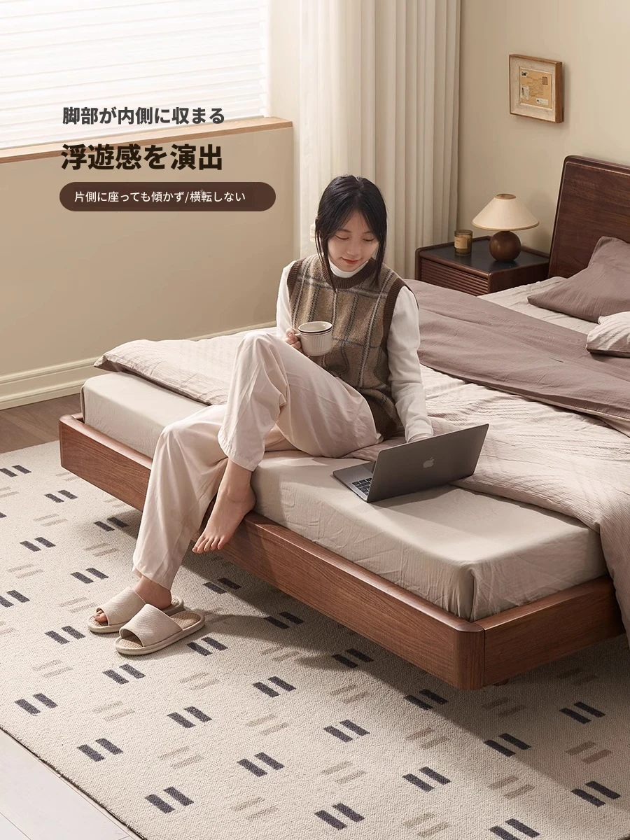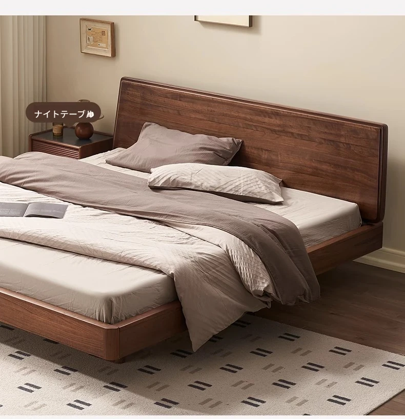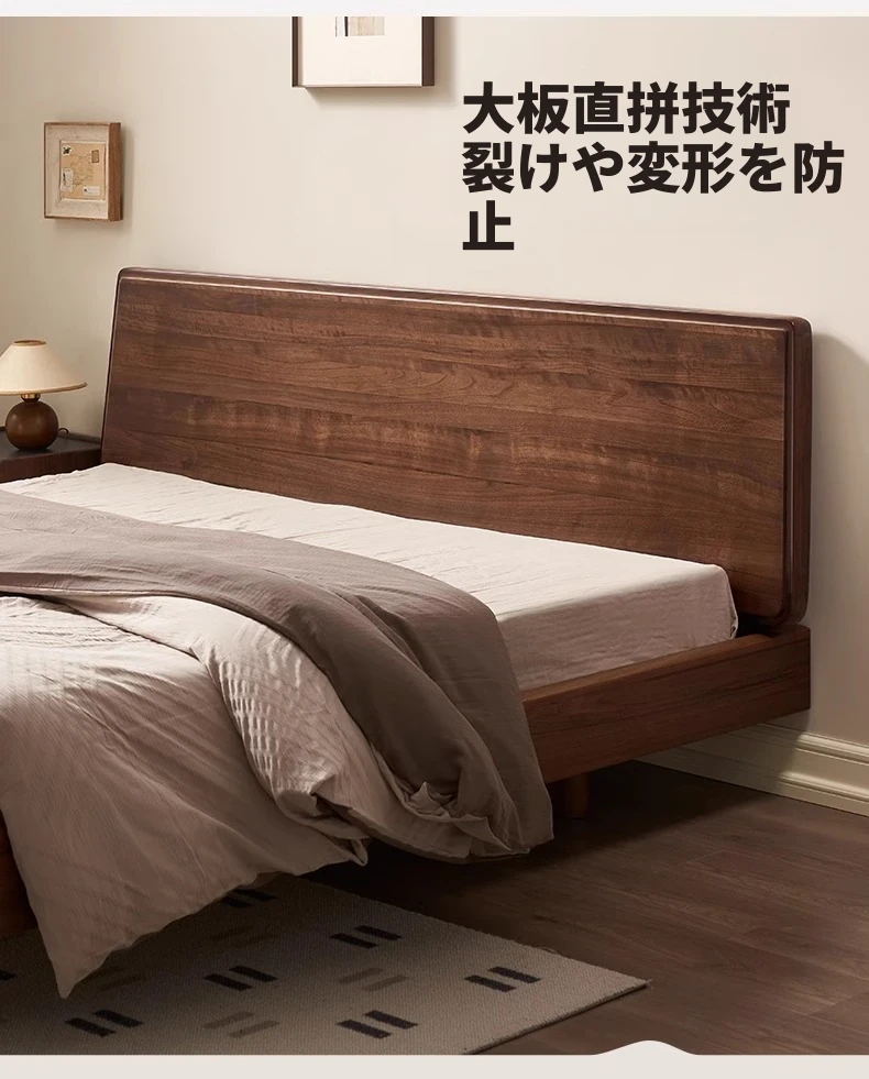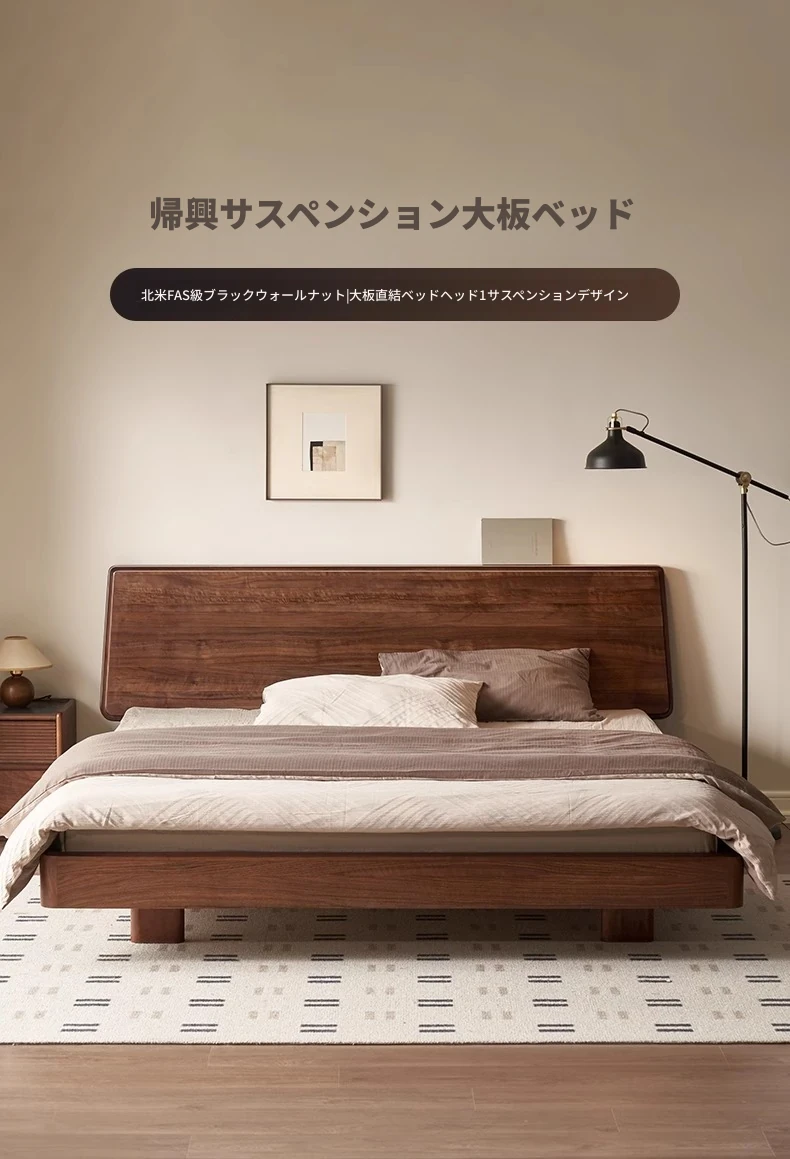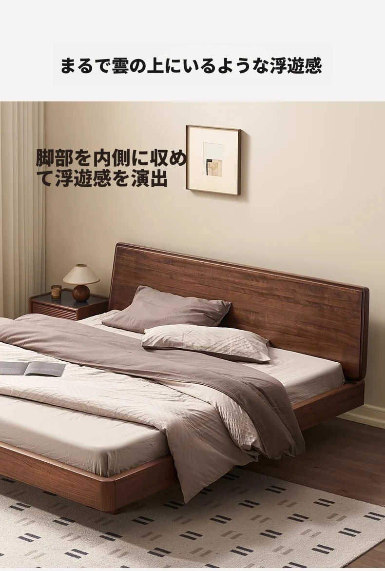 ナチュラルエレメントの無垢材ベッド - モダンシンプルな北米産ブラックウォールナット使用、1.8mのダブルベッド!主寝室にぴったりの浮遊感を演出するデザイン。快適な眠りをお届けします。