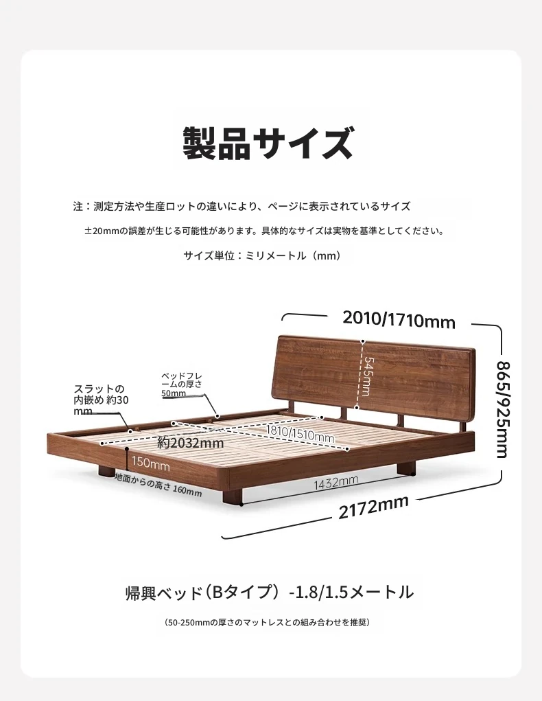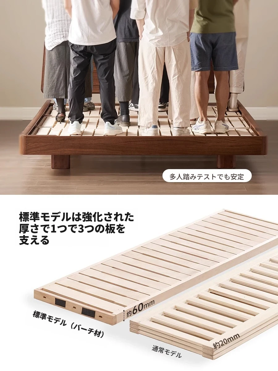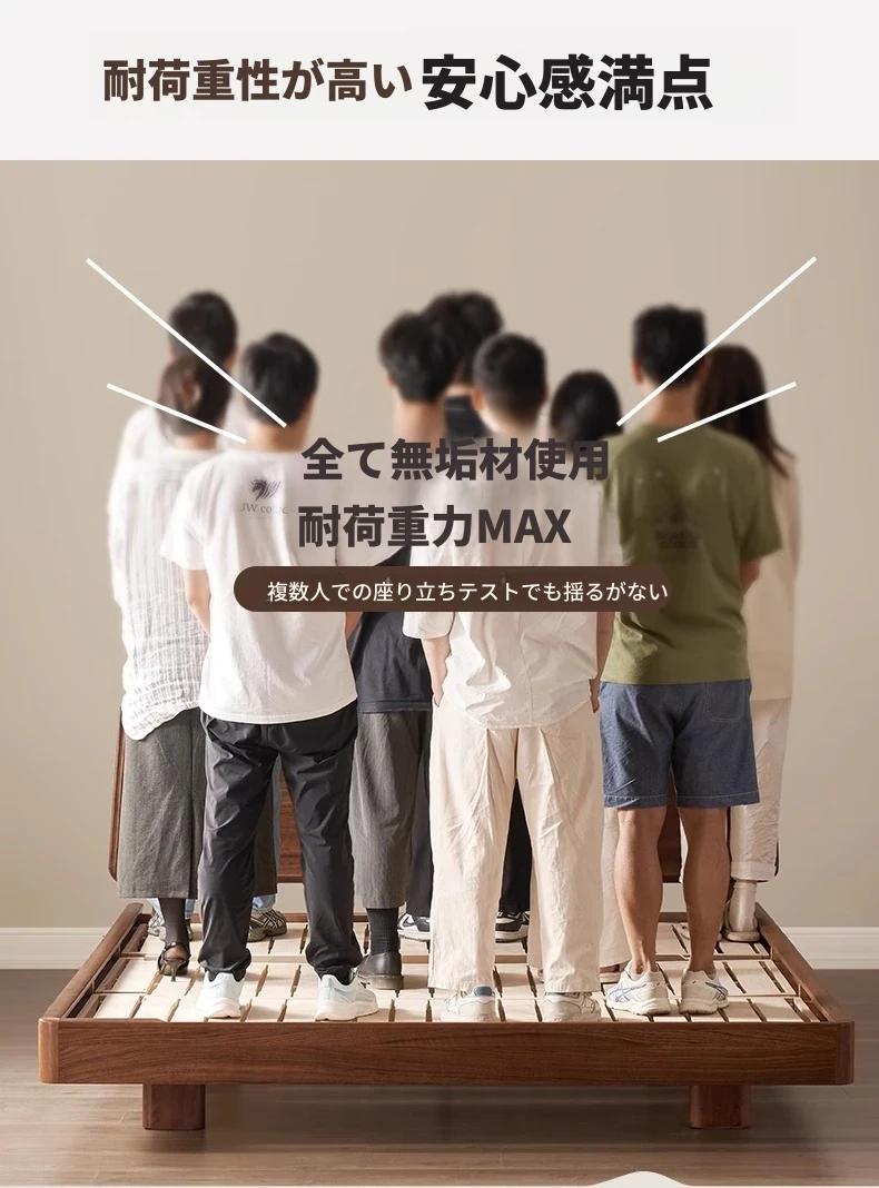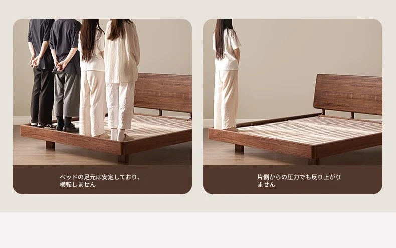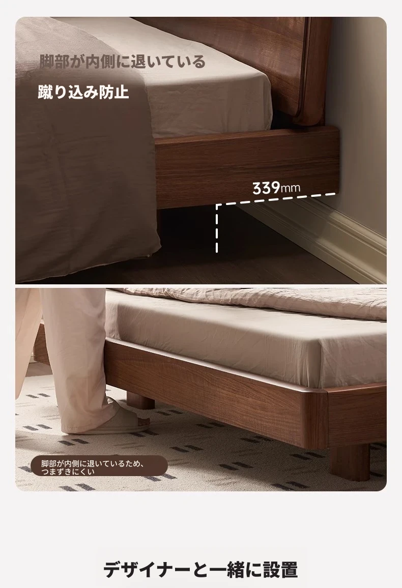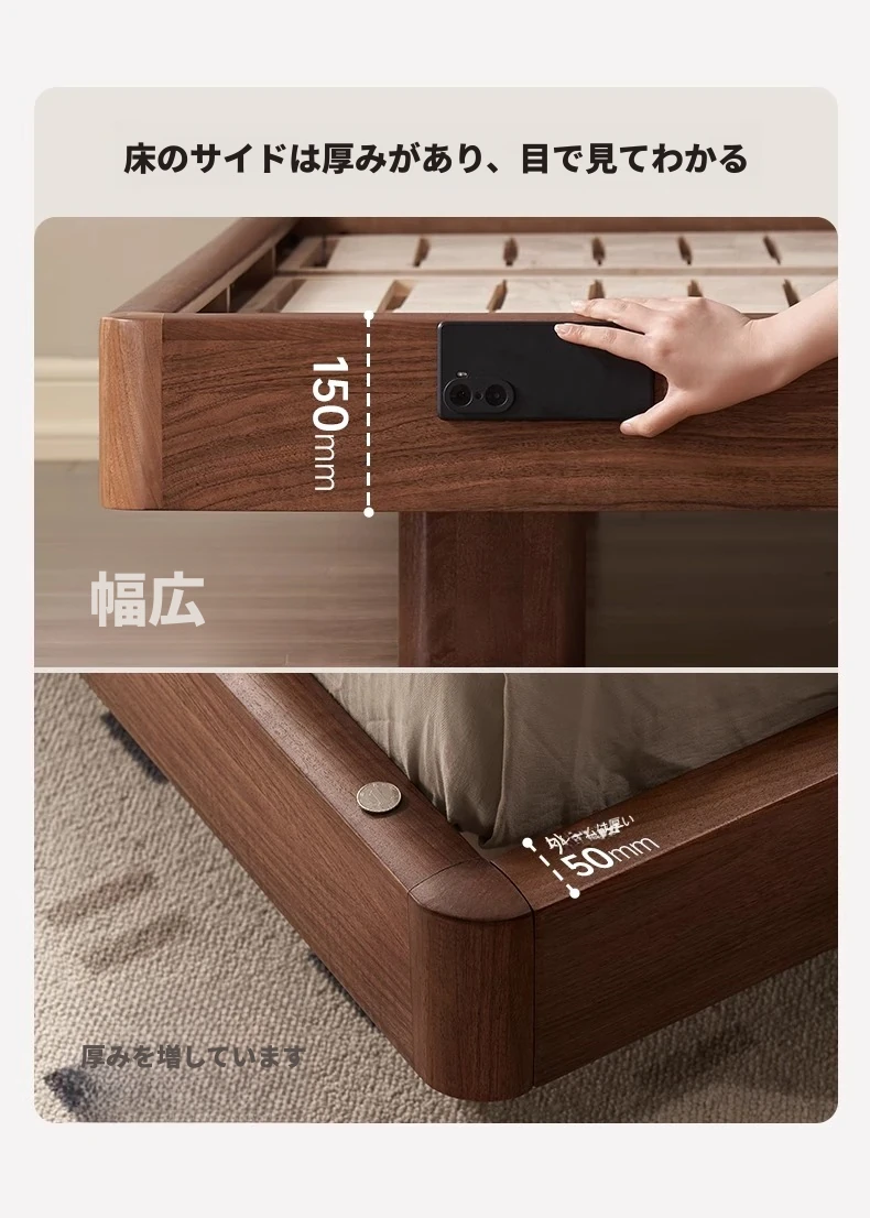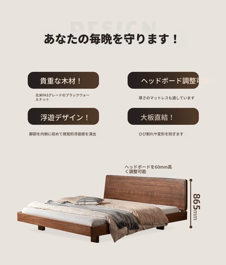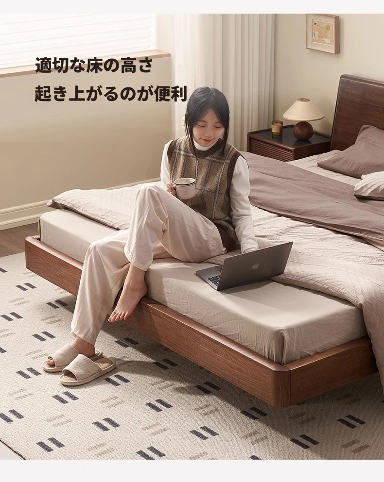 ナチュラルエレメントの無垢材ベッド - モダンシンプルな北米産ブラックウォールナット使用、1.8mのダブルベッド!主寝室にぴったりの浮遊感を演出するデザイン。快適な眠りをお届けします。