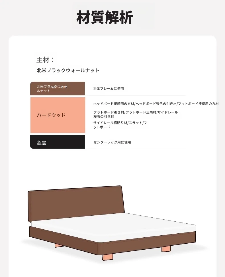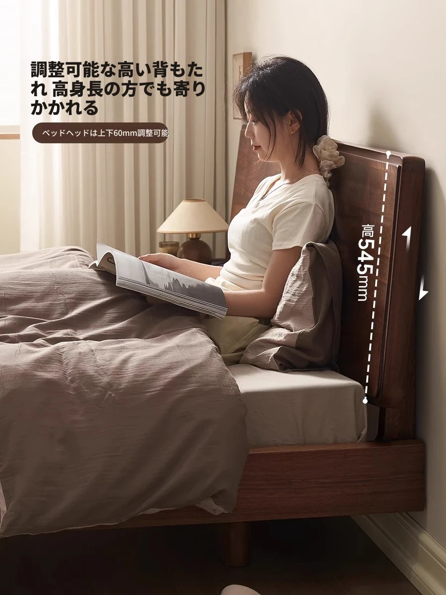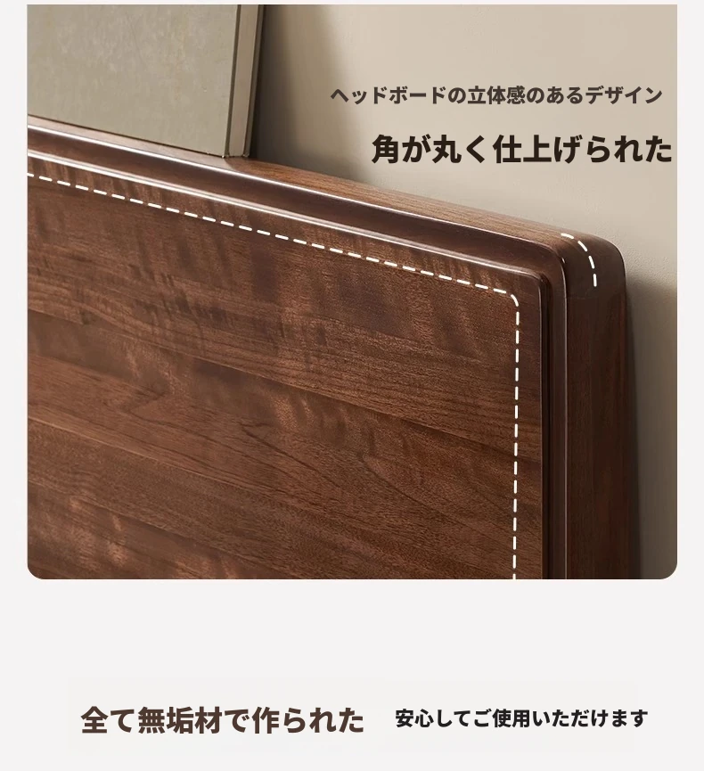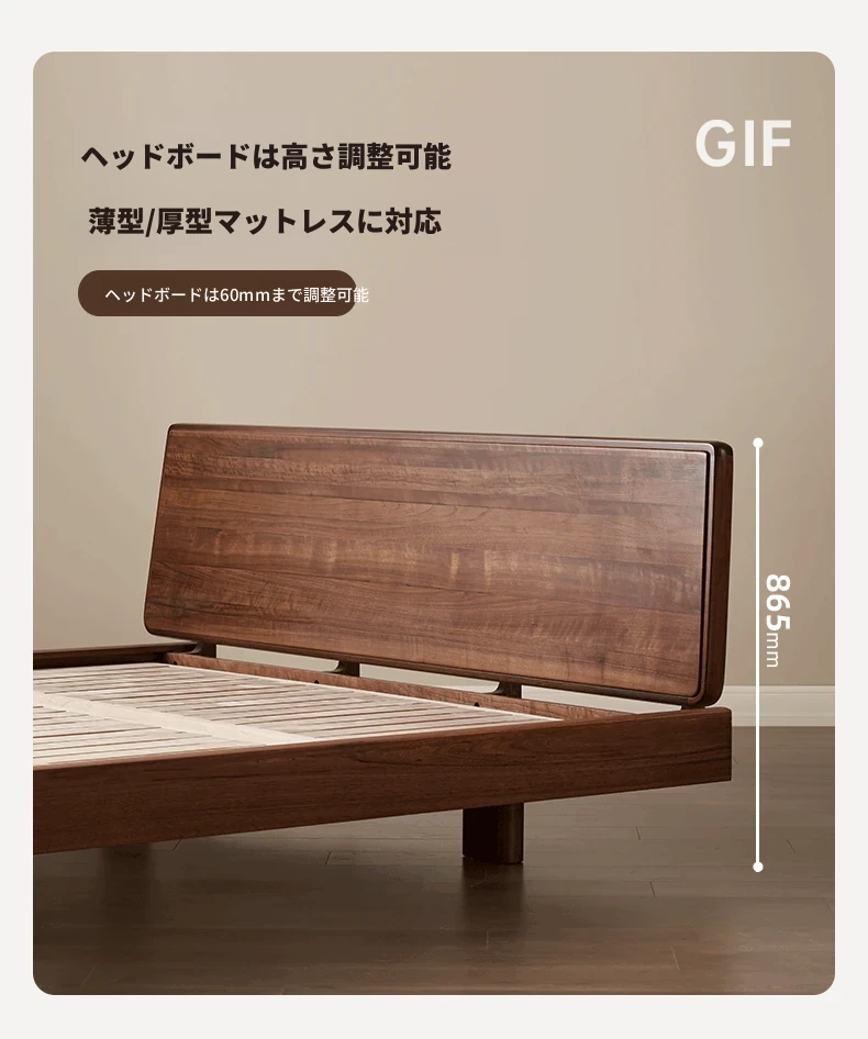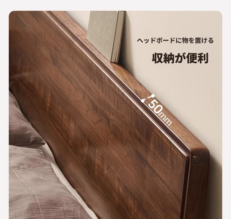 【北米ブラックウォールナット】帰興ベッド-Bタイプ(ヘッドボードの高さ調整可能)