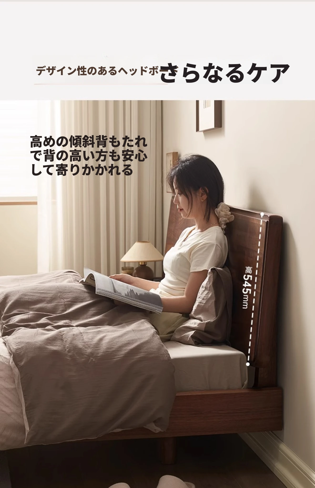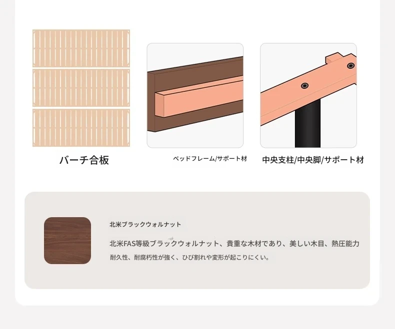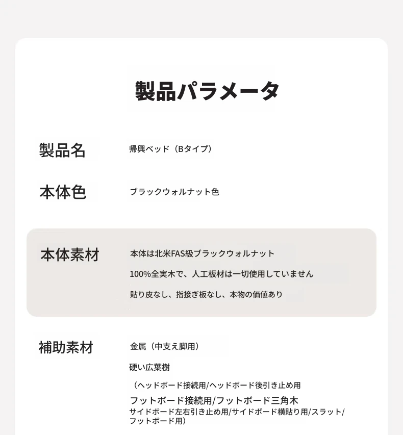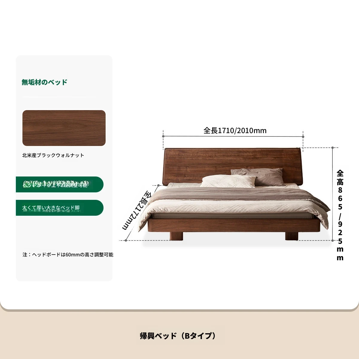 【北米ブラックウォールナット】帰興ベッド-Bタイプ(ヘッドボードの高さ調整可能)