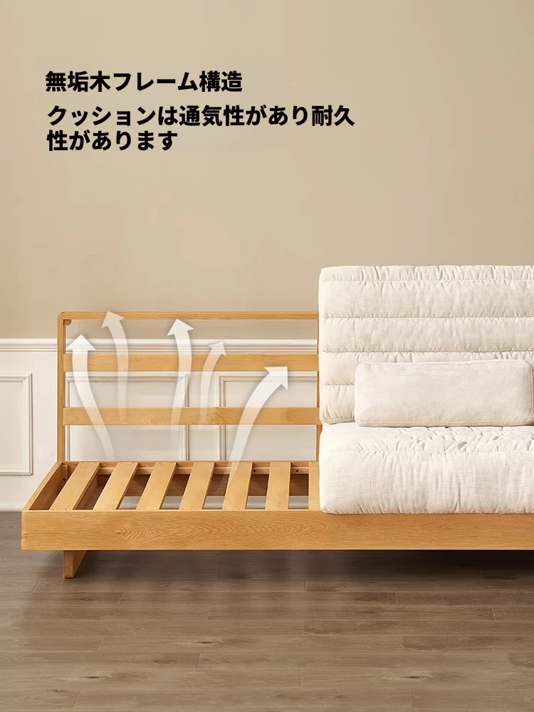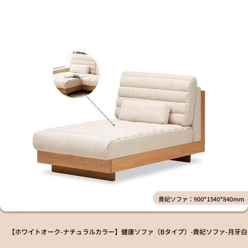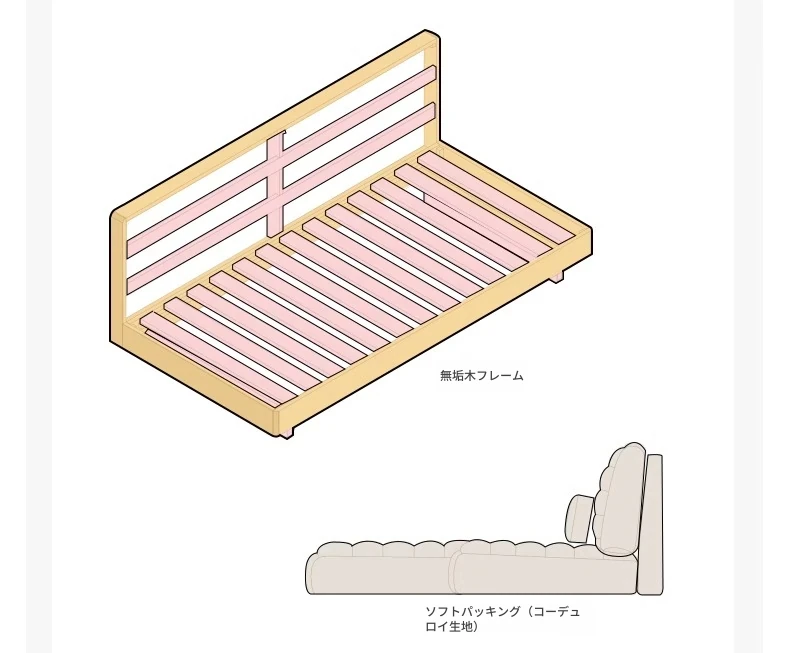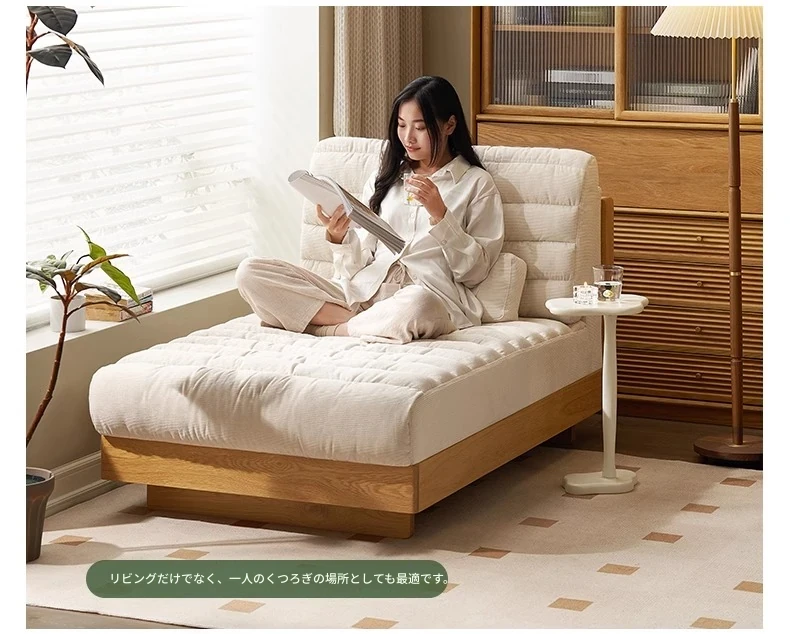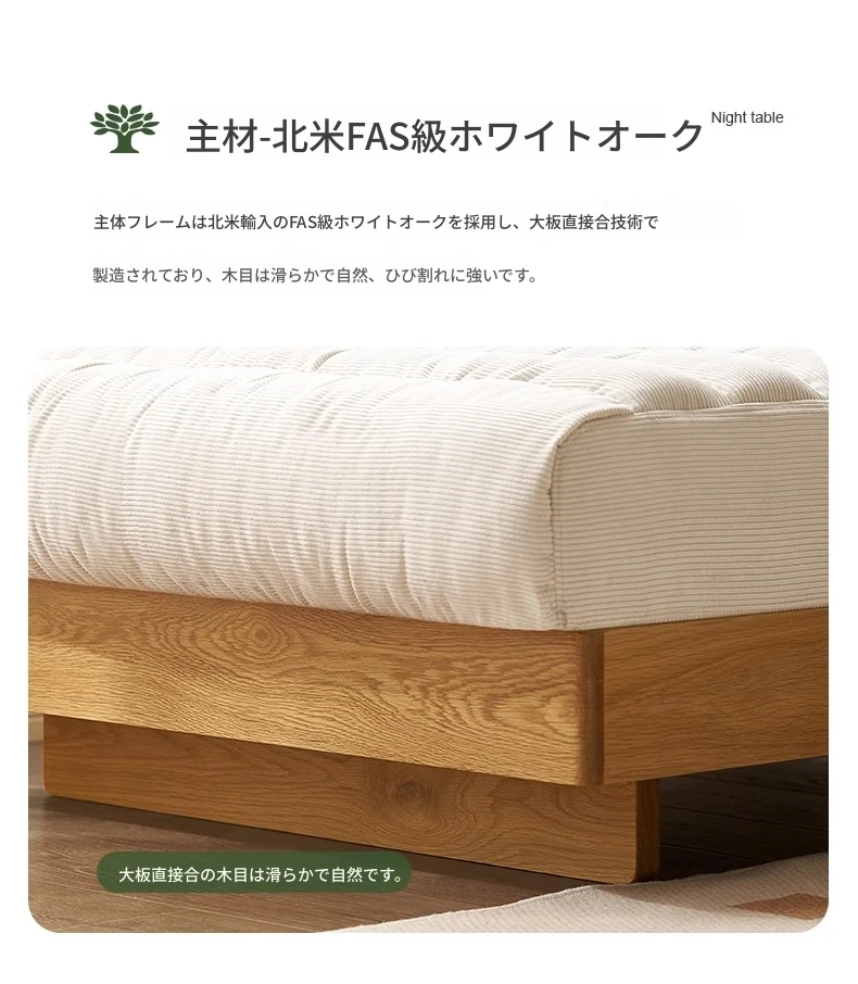 【ホワイトオーク- ナチュラルカラー】0.9メートルデイベッド(コーデュロイ-ムーンホワイト)(900*1540*840mm)