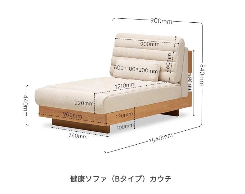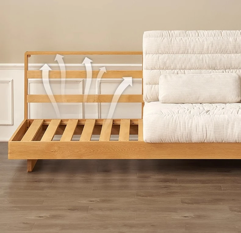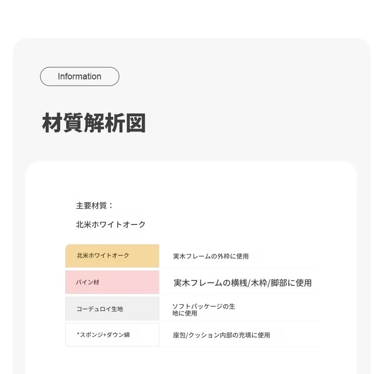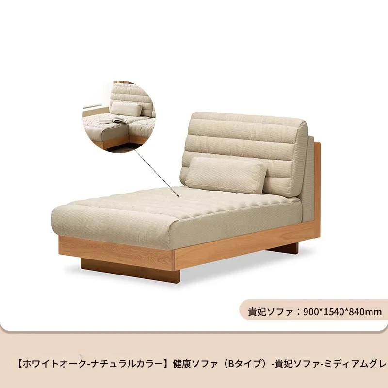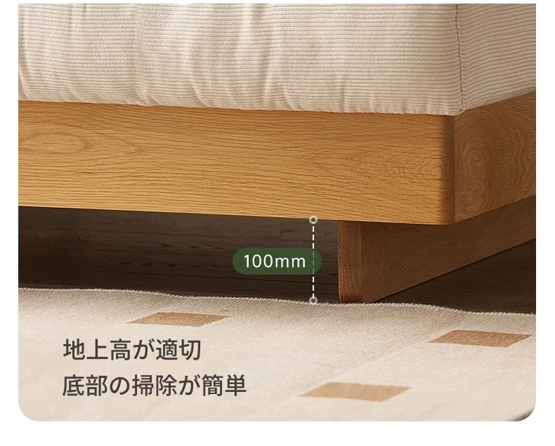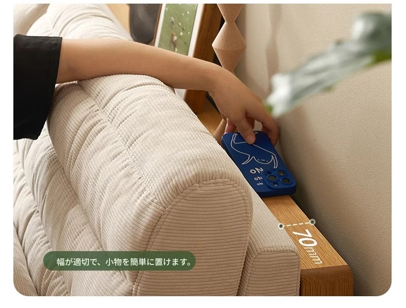 【ホワイトオーク- ナチュラルカラー】0.9メートルデイベッド(コーデュロイ-ムーンホワイト)(900*1540*840mm)