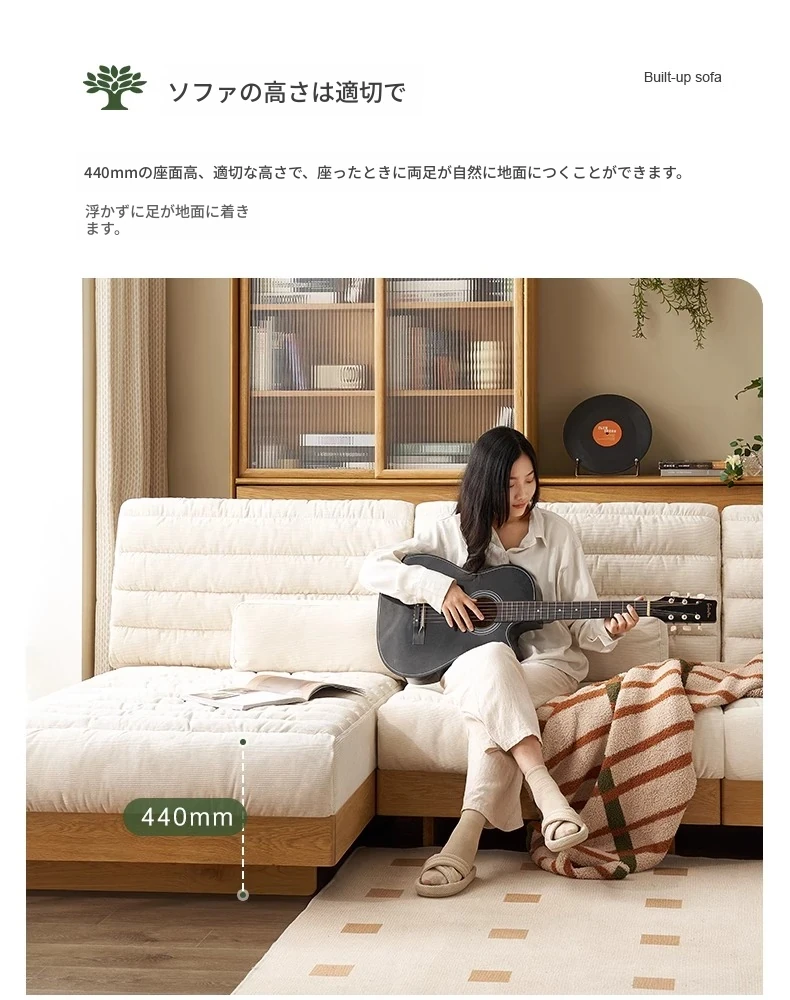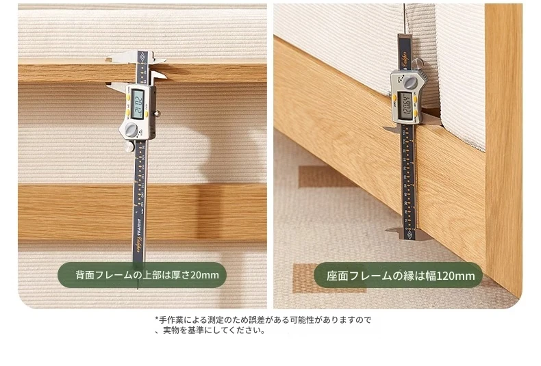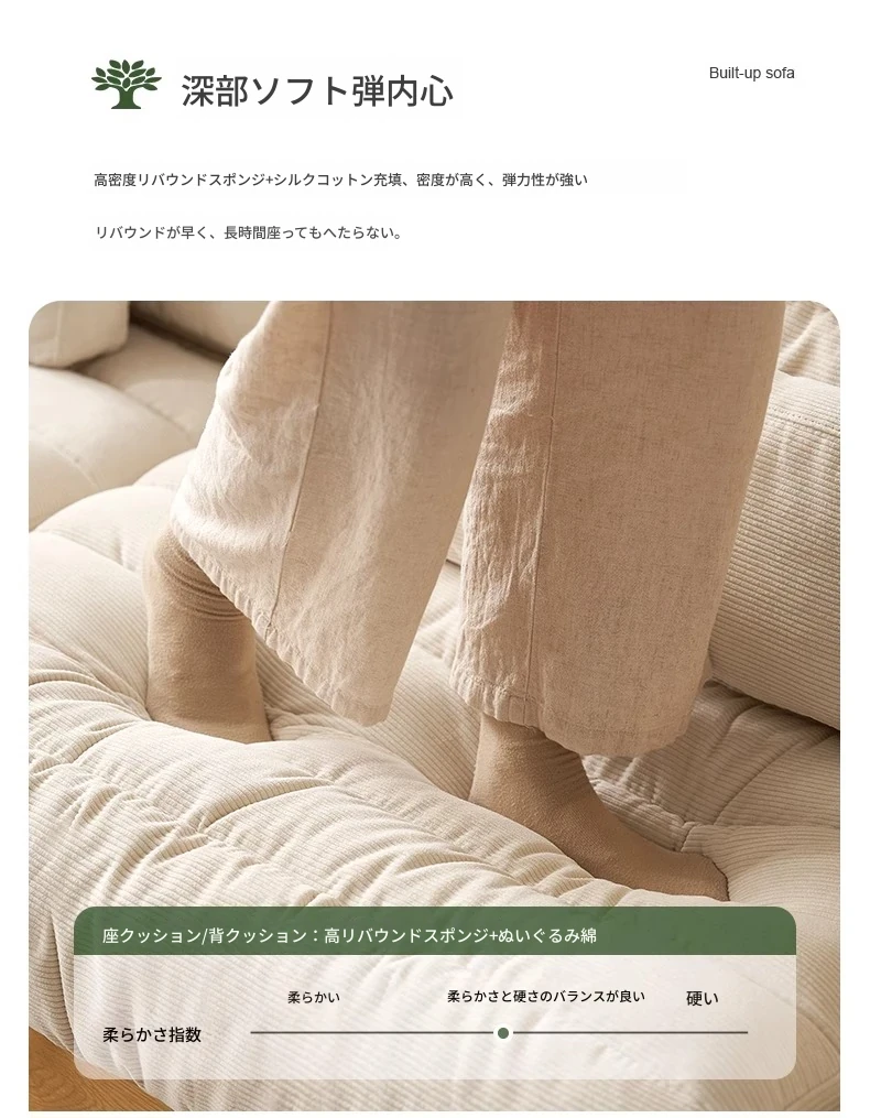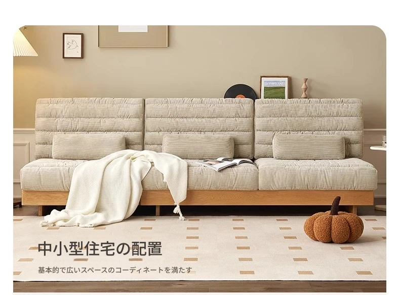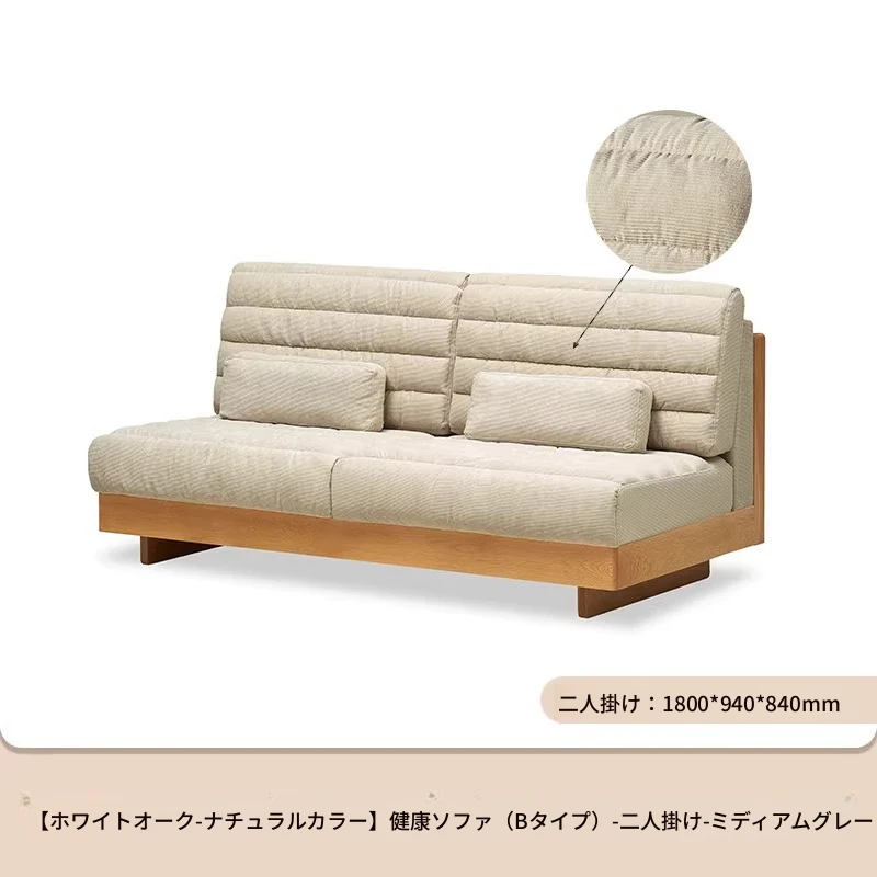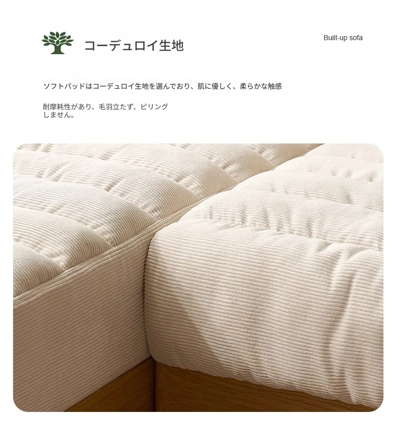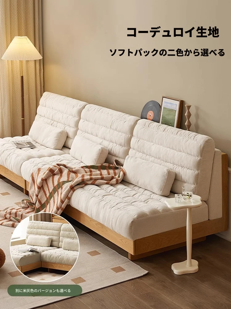 【ホワイトオーク- ナチュラルカラー】1.8メートルダブルソファ(コーデュロイ-ムーンホワイト)(1800*940*840mm)