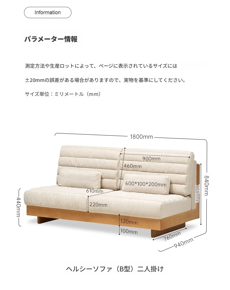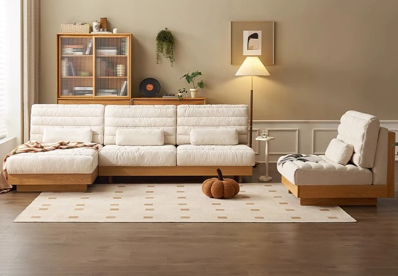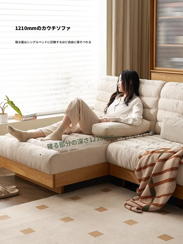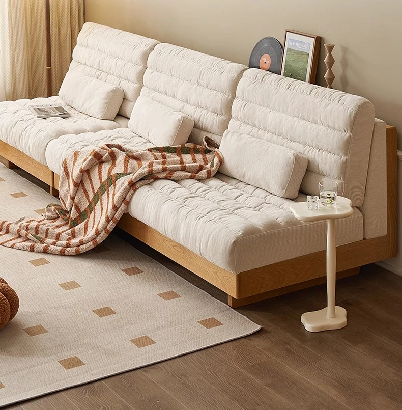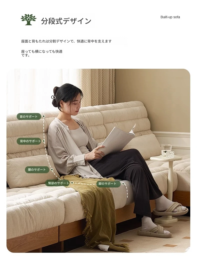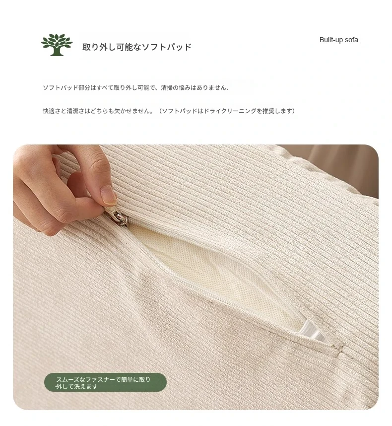 【ホワイトオーク- ナチュラルカラー】1.8メートルダブルソファ(コーデュロイ-ムーンホワイト)(1800*940*840mm)