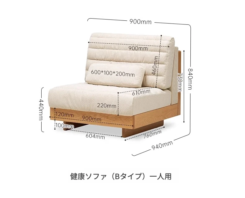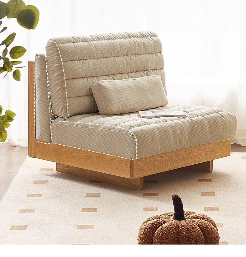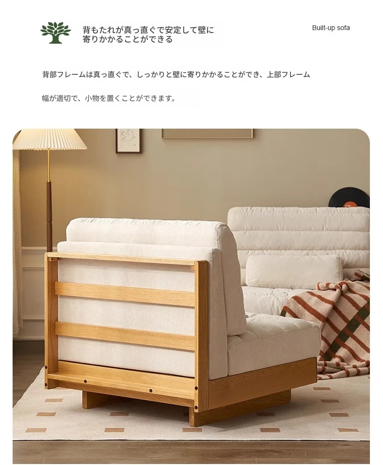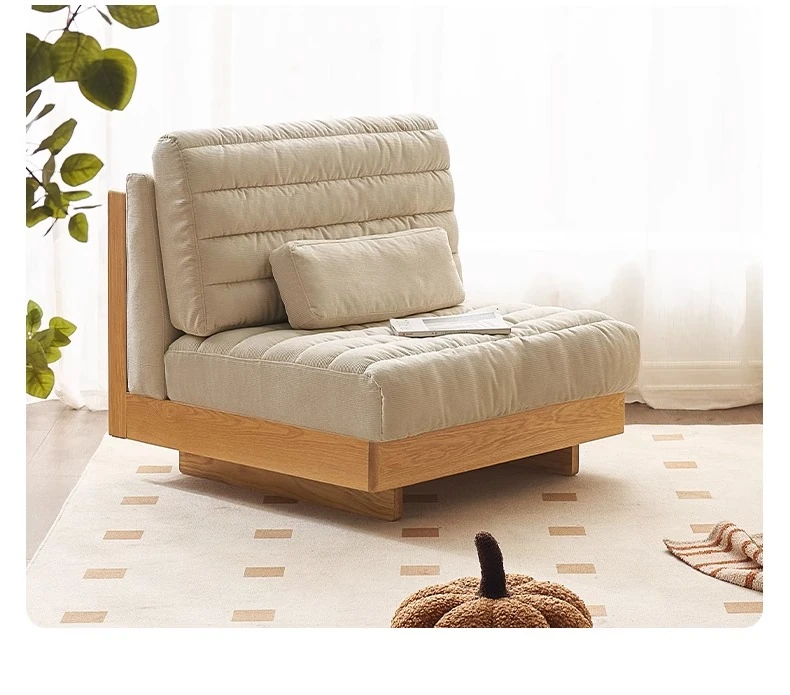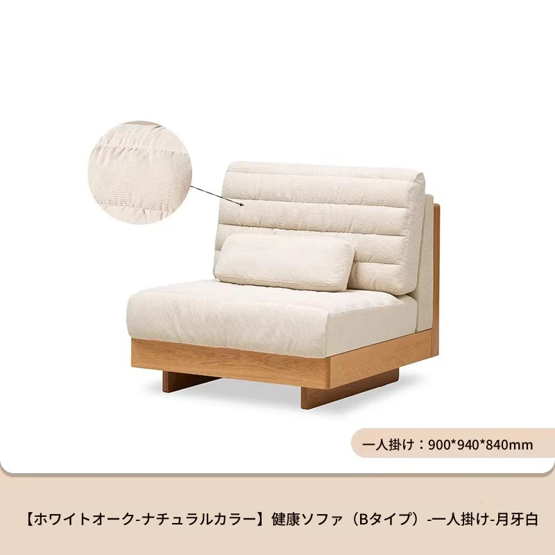 【ホワイトオーク- ナチュラルカラー】0.9メートルシングルソファ(コーデュロイ-ムーンホワイト)(900*940*840mm)