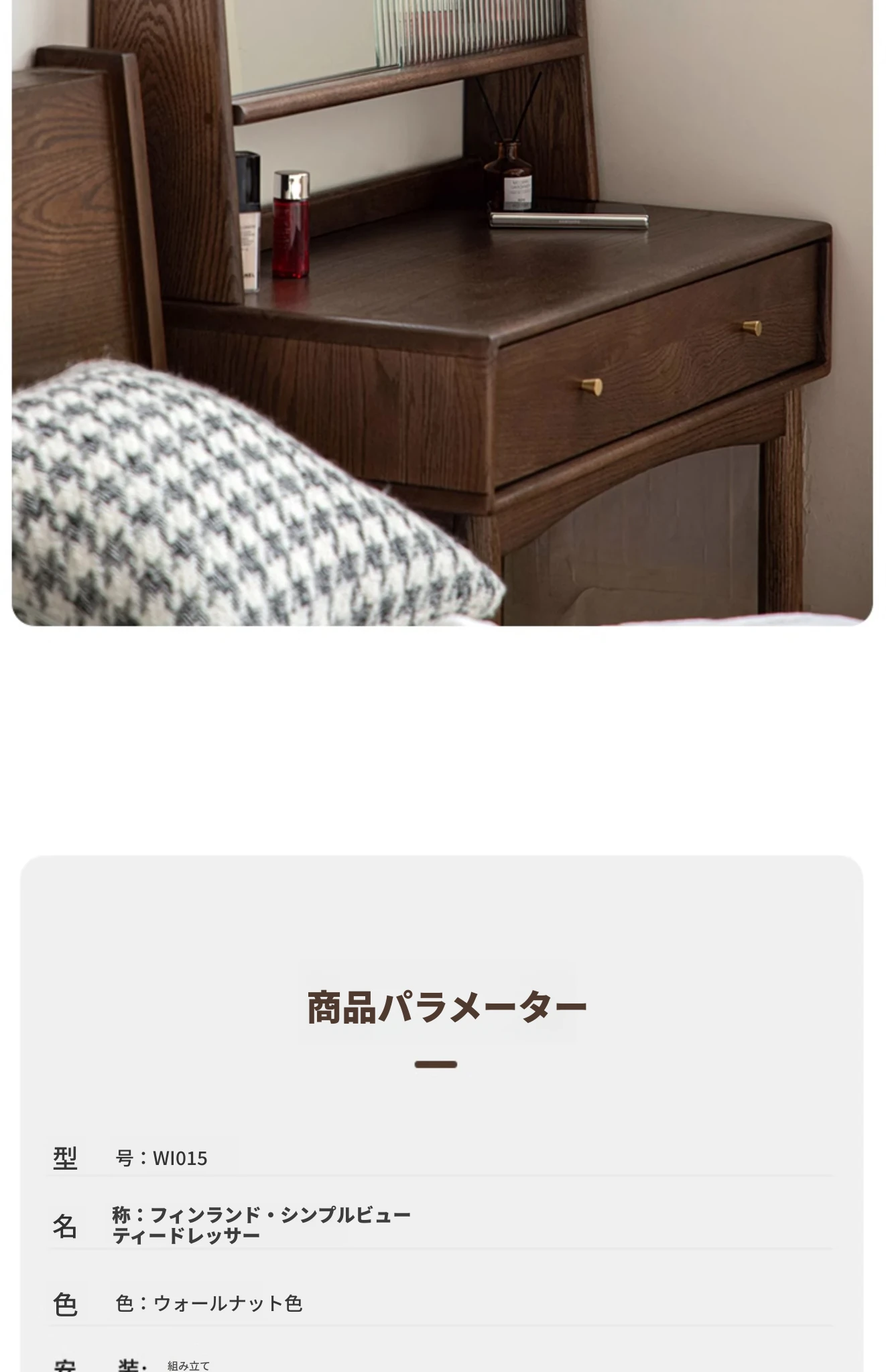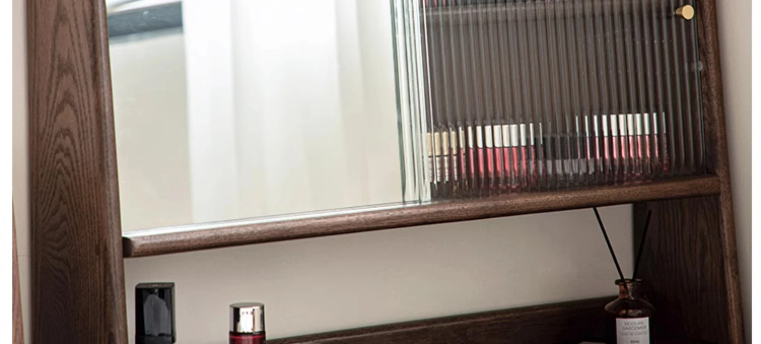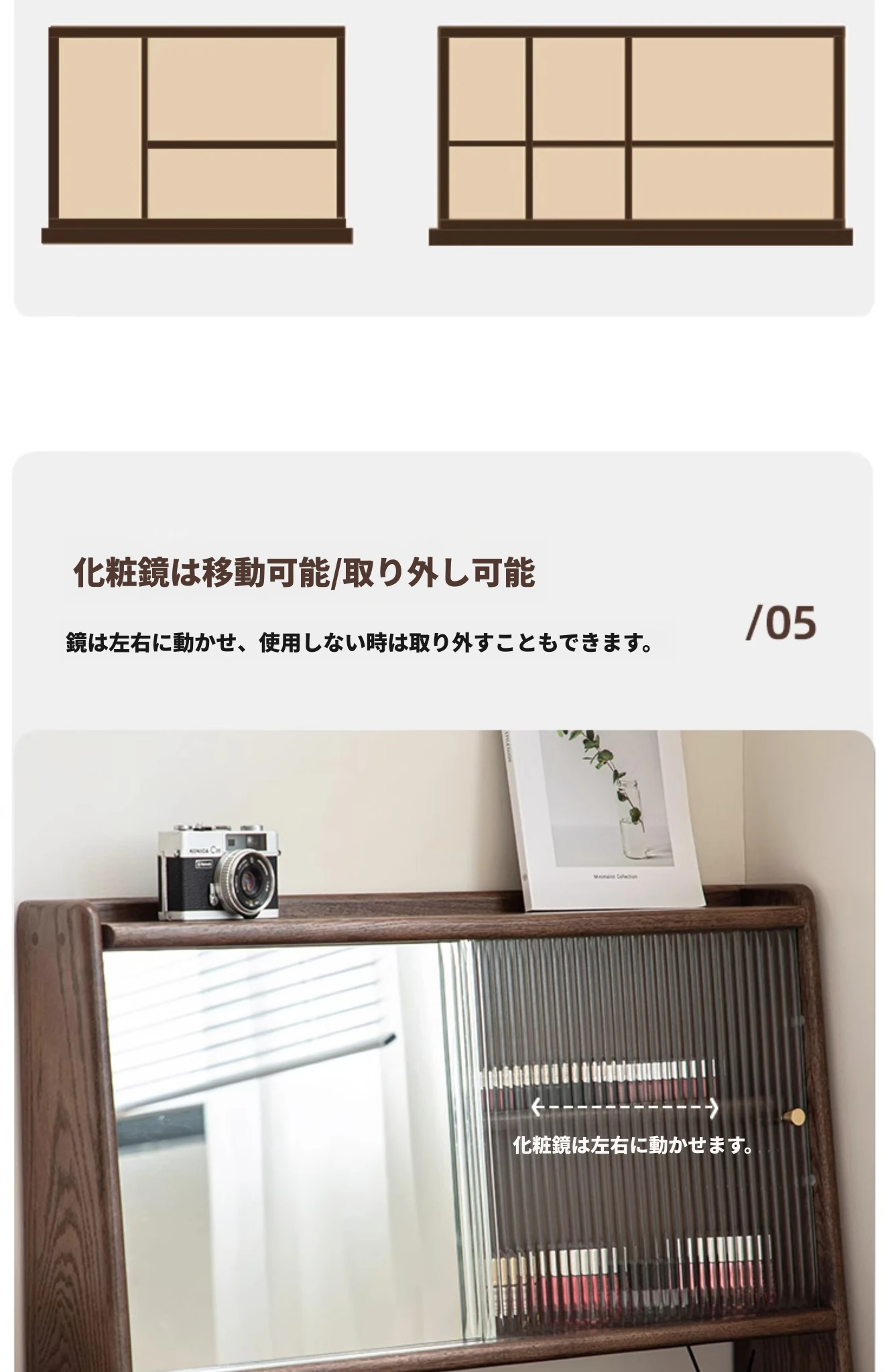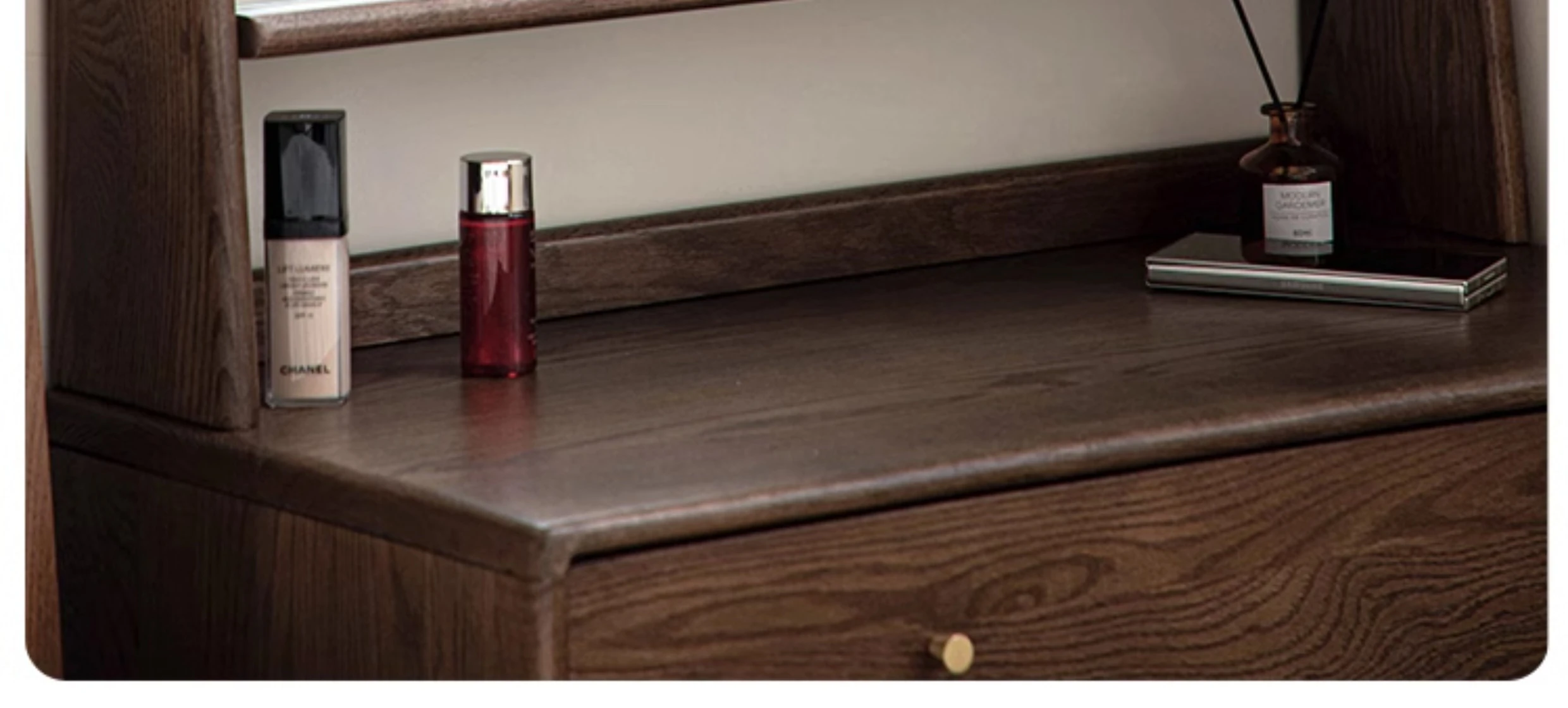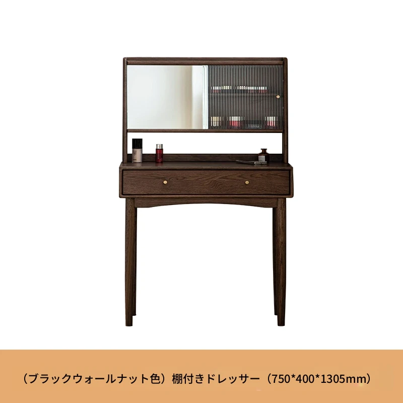 モダンな無垢材化粧台 - シンプルでスタイリッシュなデザインの北欧スタイル、収納力抜群!鏡付きでメイクも快適、書斎としても使える多機能家具。あなたの寝室にぴったりのオーク材で仕上げた化粧テーブルです。