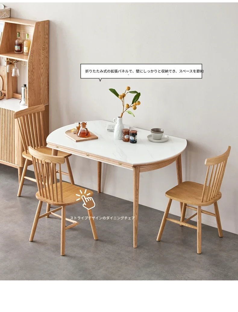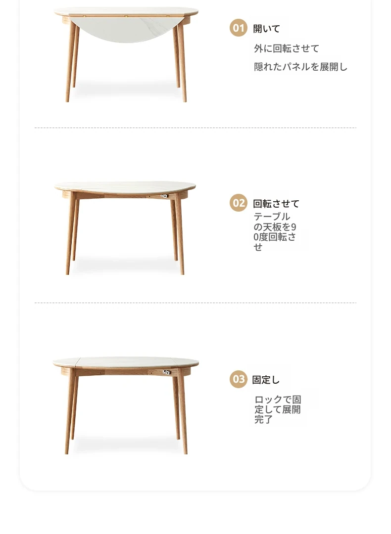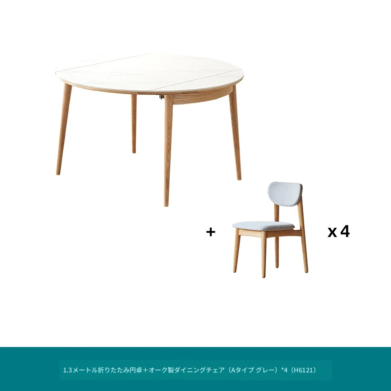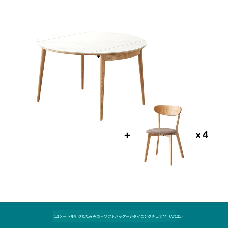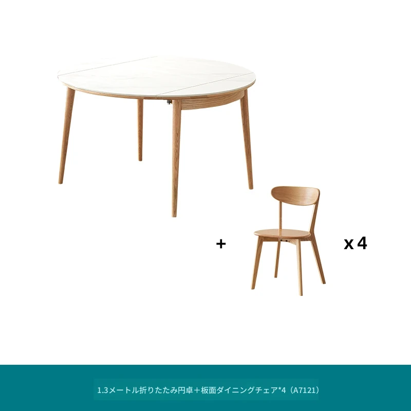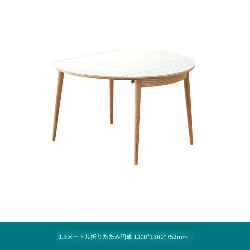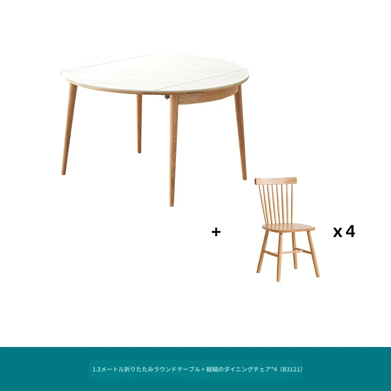 北欧風シンプル折りたたみ式実木ロックテーブル - 小型住宅に最適!伸縮可能な円形ダイニングテーブルと椅子セットで、コンパクトなのに広々とした食事空間を実現!家庭にぴったりのモダンデザイン。