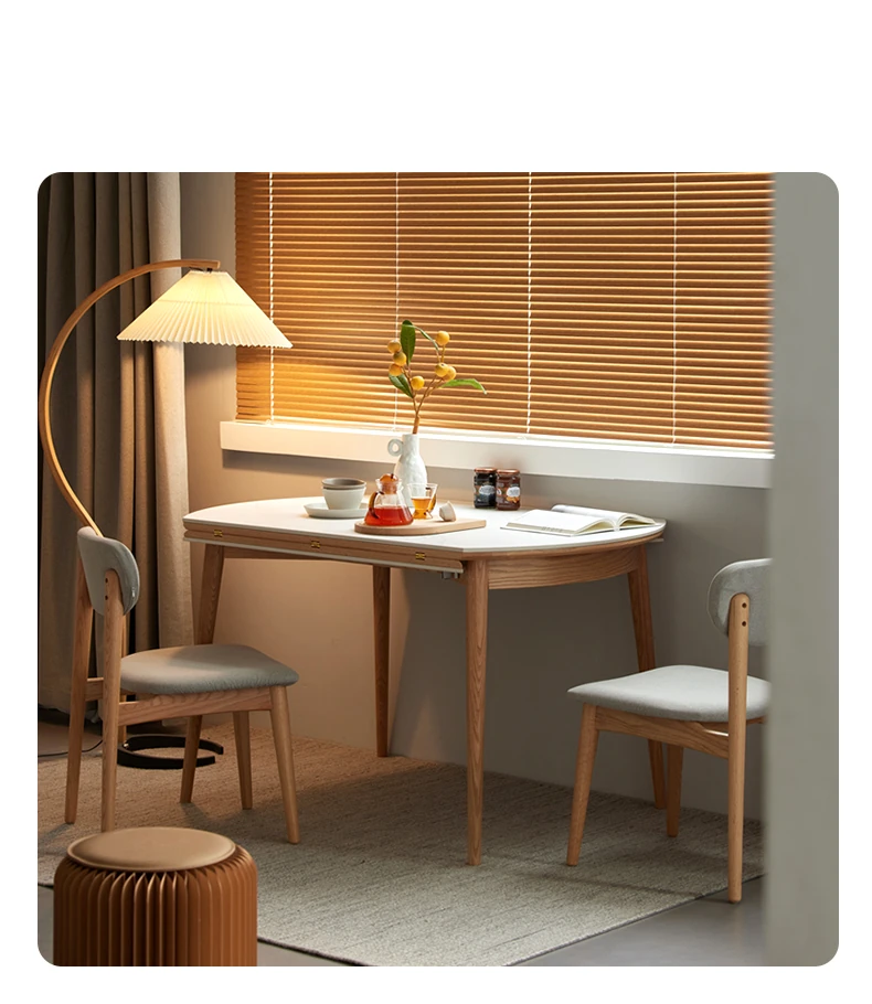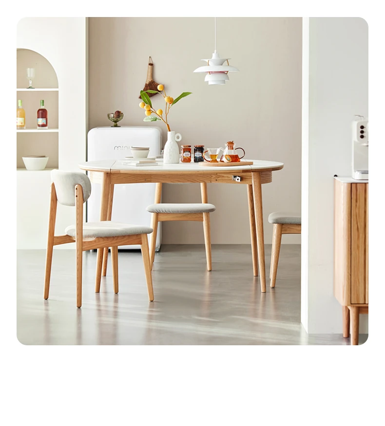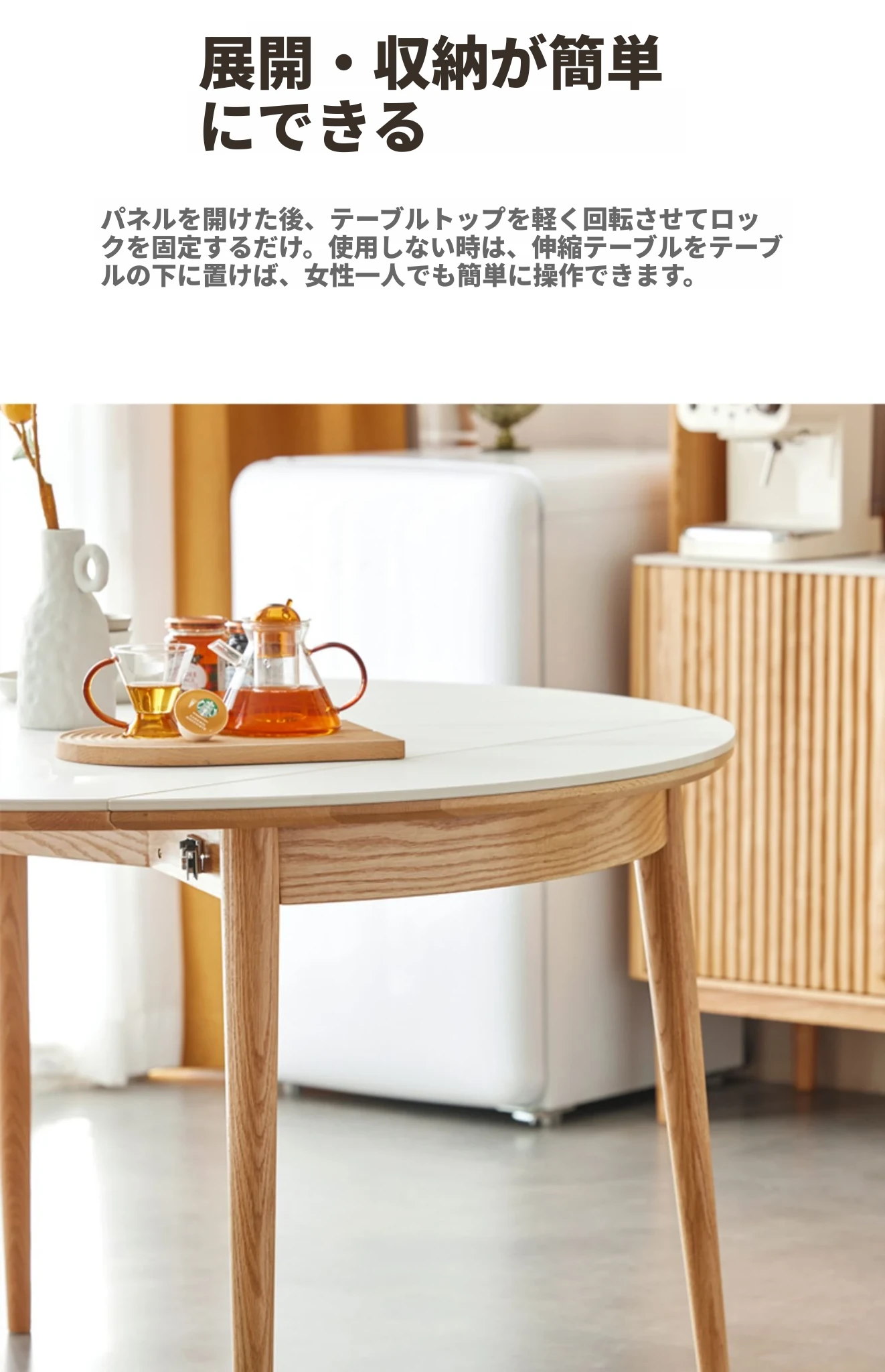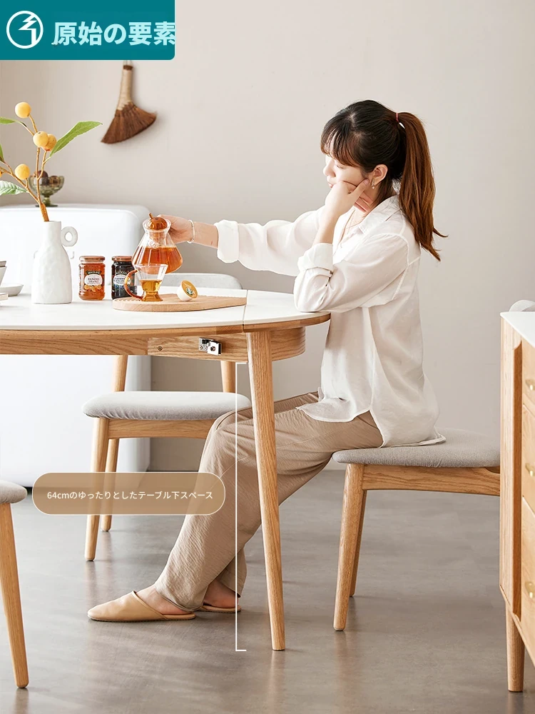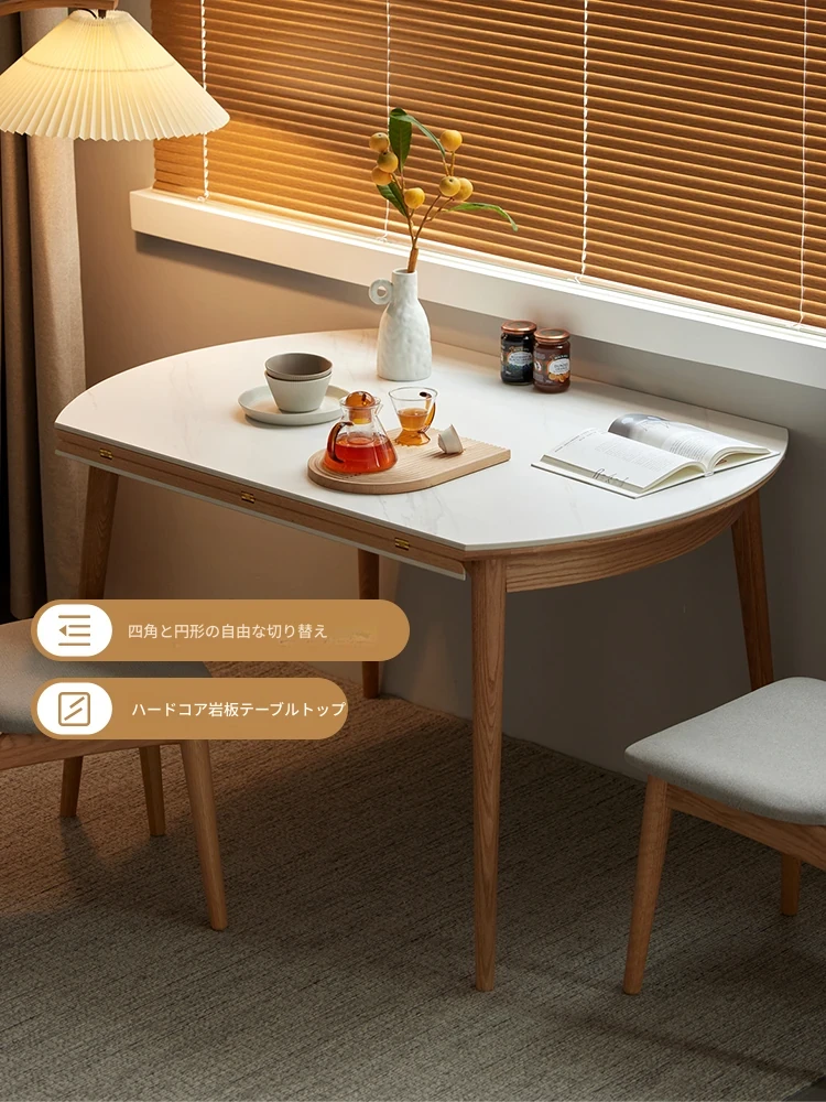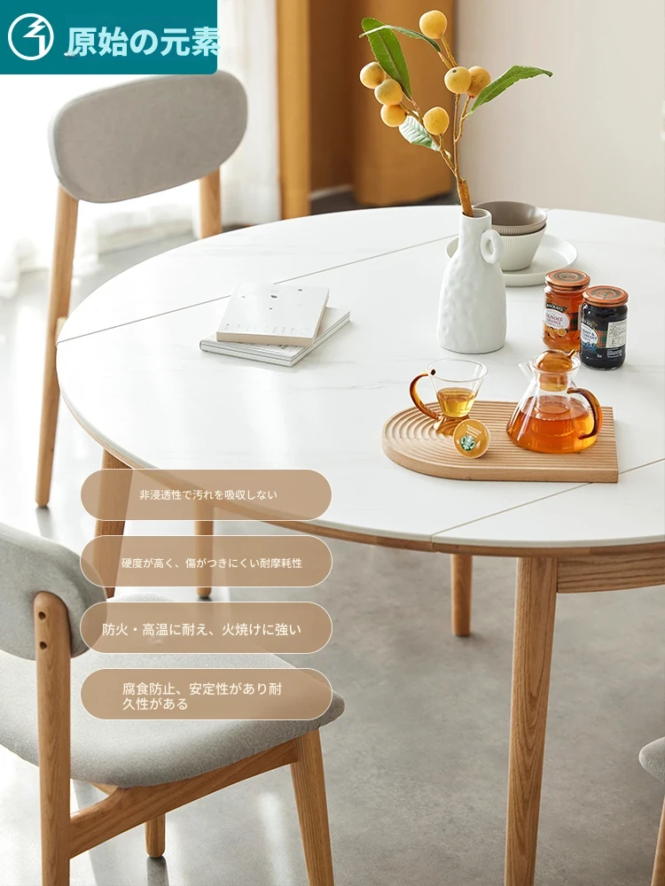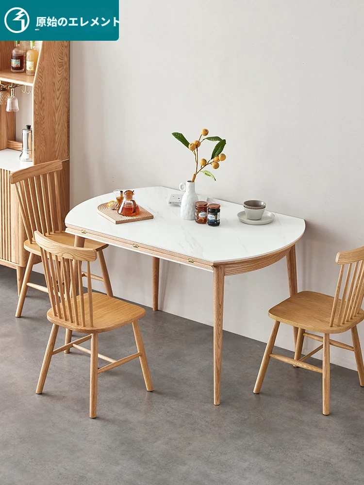 北欧風シンプル折りたたみ式実木ロックテーブル - 小型住宅に最適!伸縮可能な円形ダイニングテーブルと椅子セットで、コンパクトなのに広々とした食事空間を実現!家庭にぴったりのモダンデザイン。