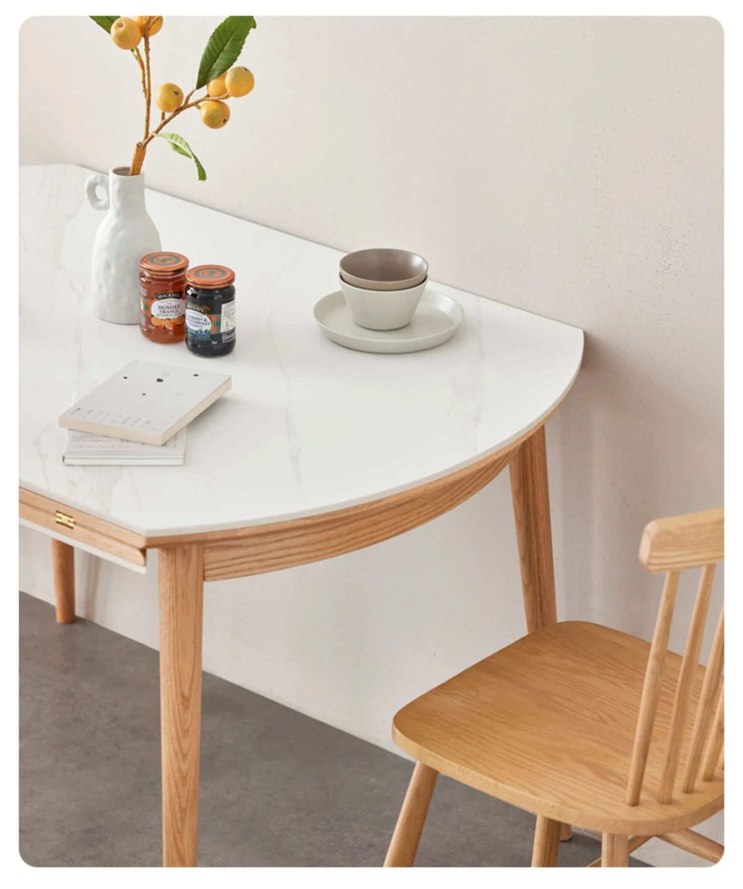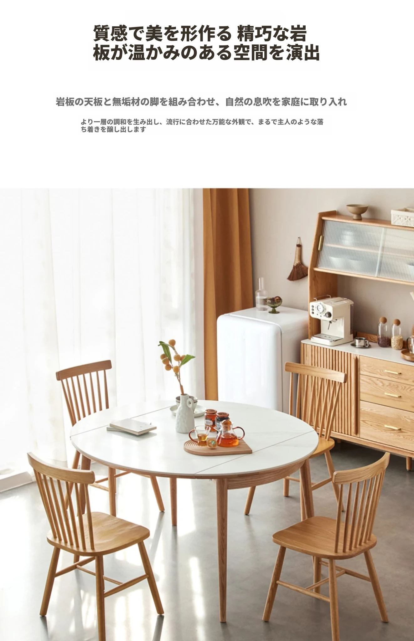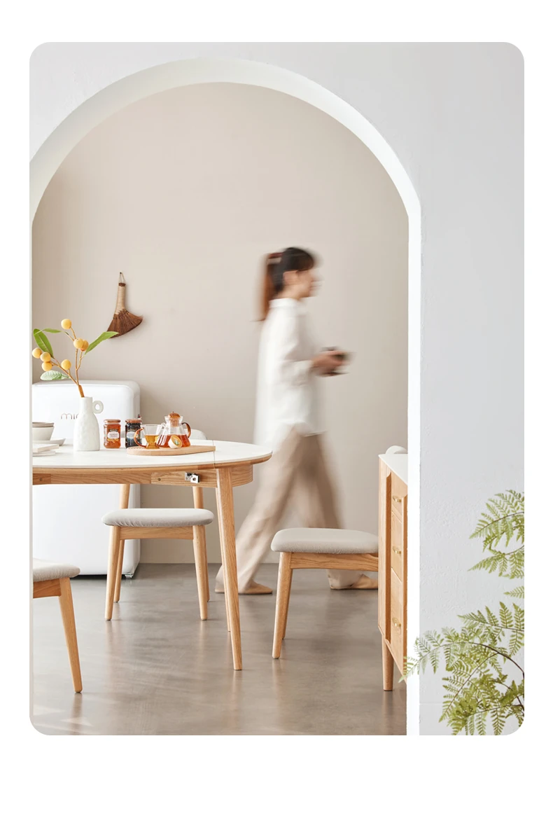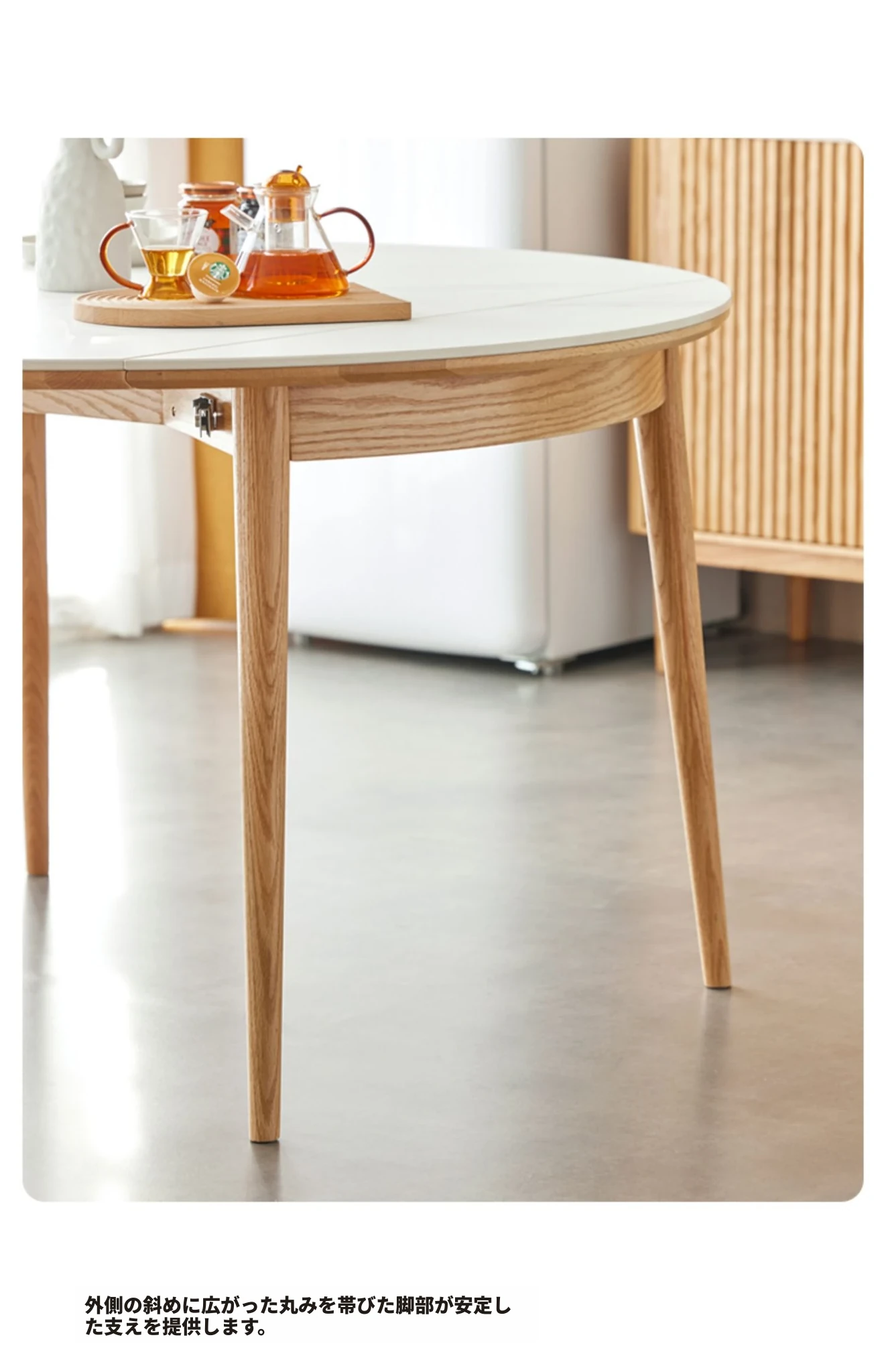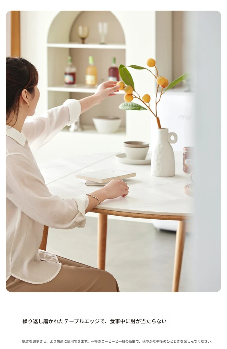 北欧風シンプル折りたたみ式実木ロックテーブル - 小型住宅に最適!伸縮可能な円形ダイニングテーブルと椅子セットで、コンパクトなのに広々とした食事空間を実現!家庭にぴったりのモダンデザイン。