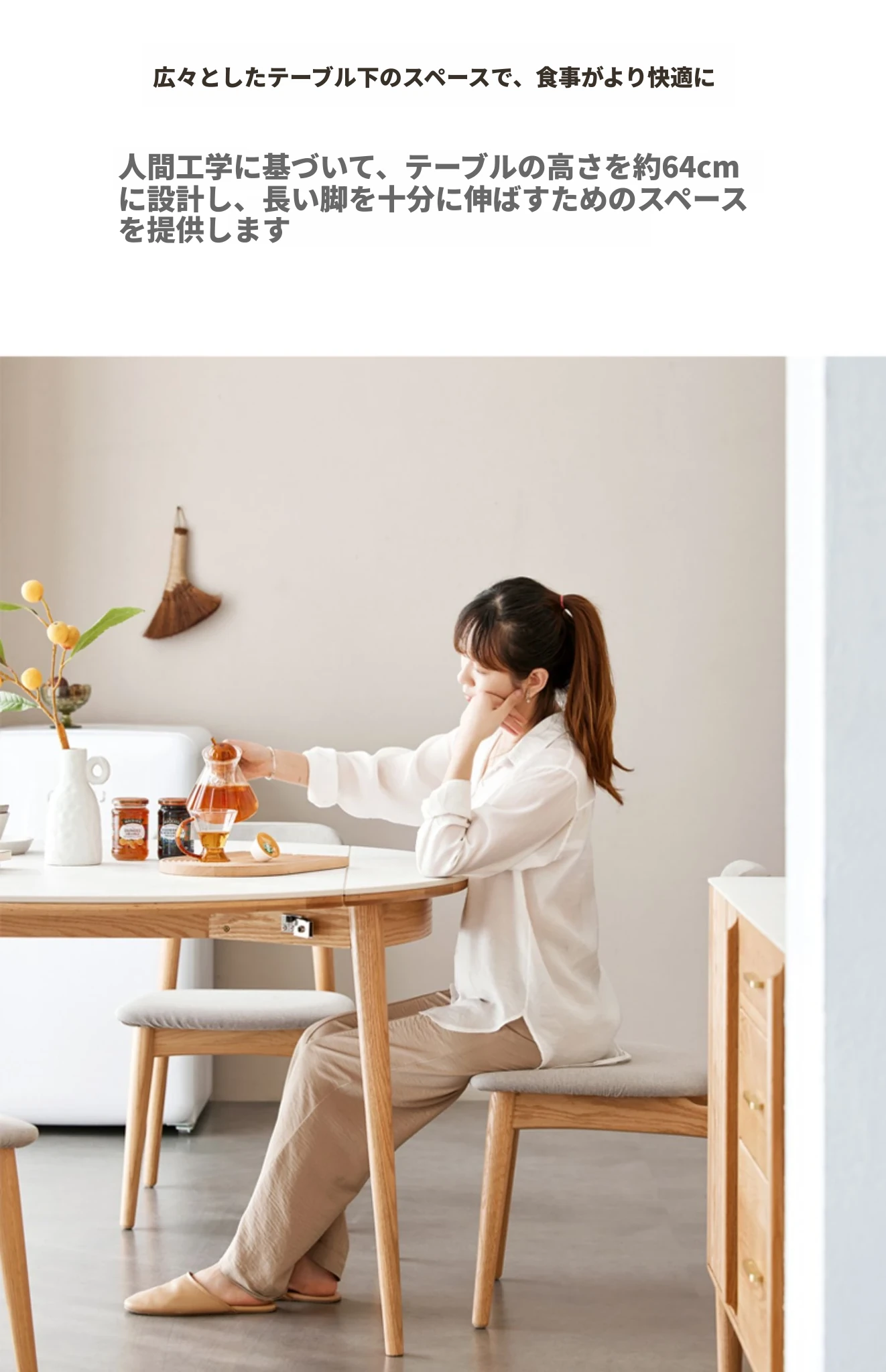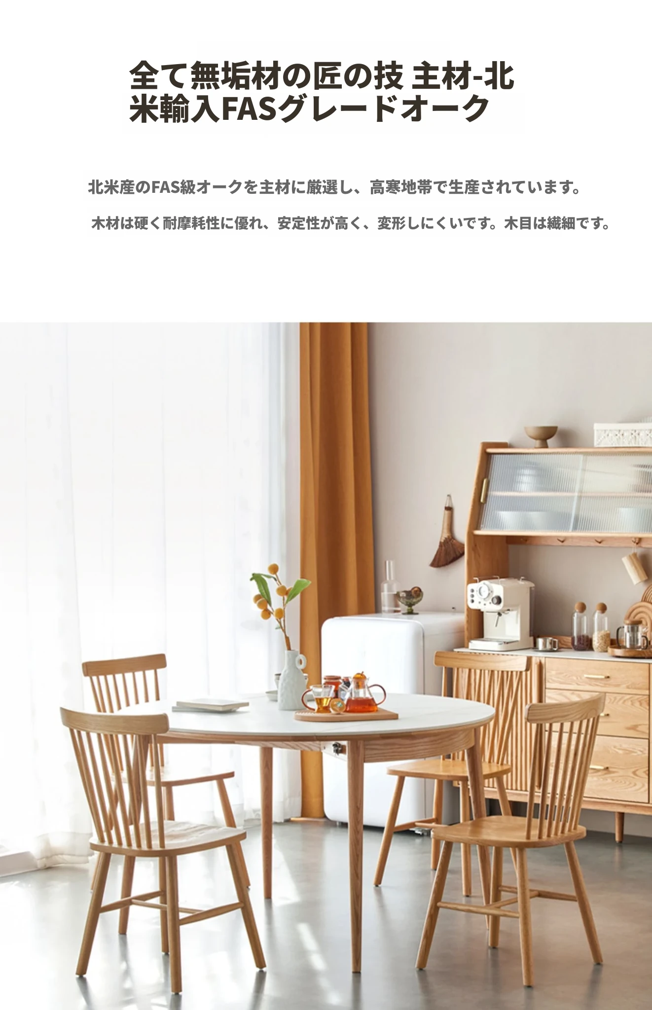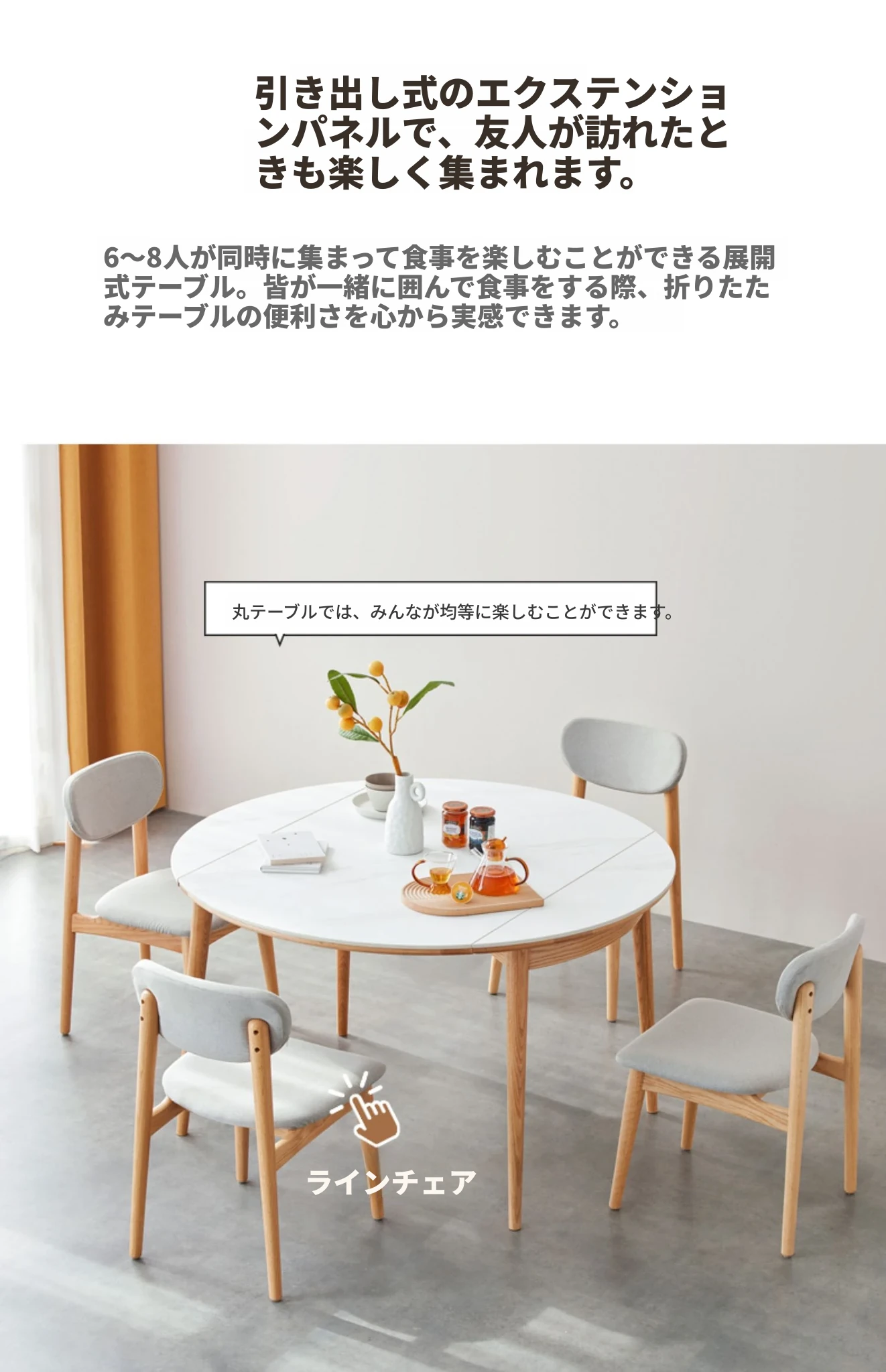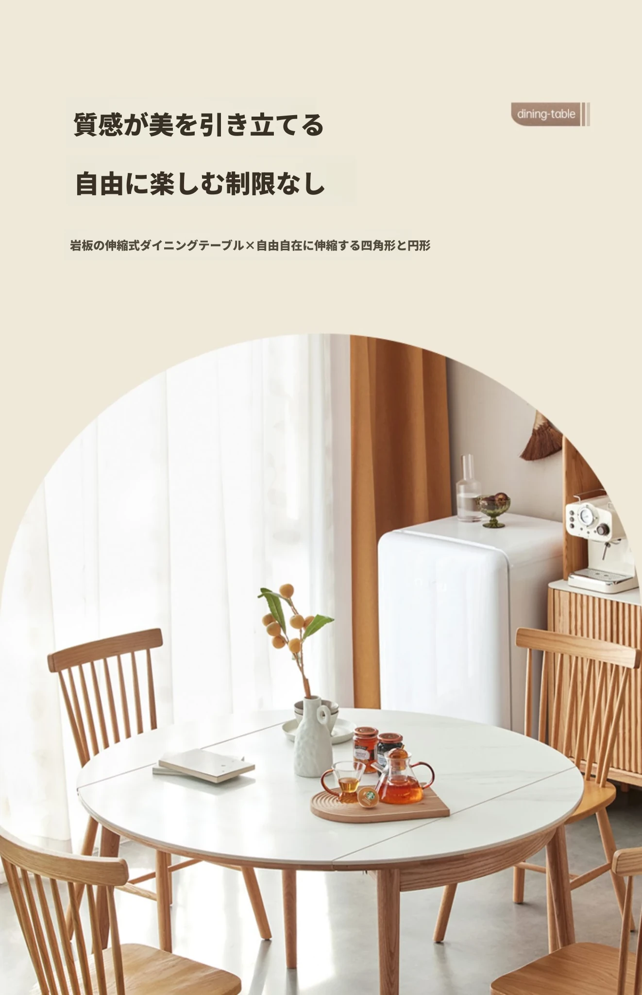 北欧風シンプル折りたたみ式実木ロックテーブル - 小型住宅に最適!伸縮可能な円形ダイニングテーブルと椅子セットで、コンパクトなのに広々とした食事空間を実現!家庭にぴったりのモダンデザイン。