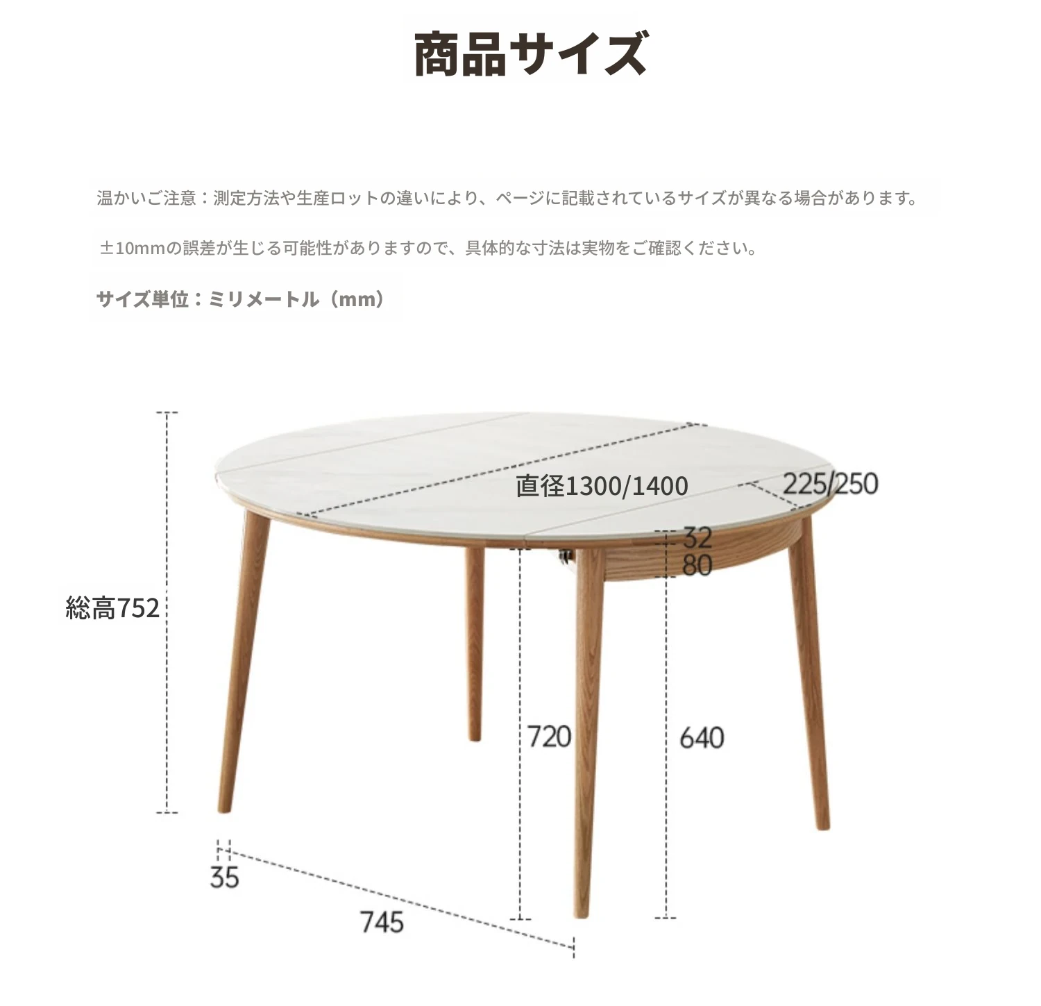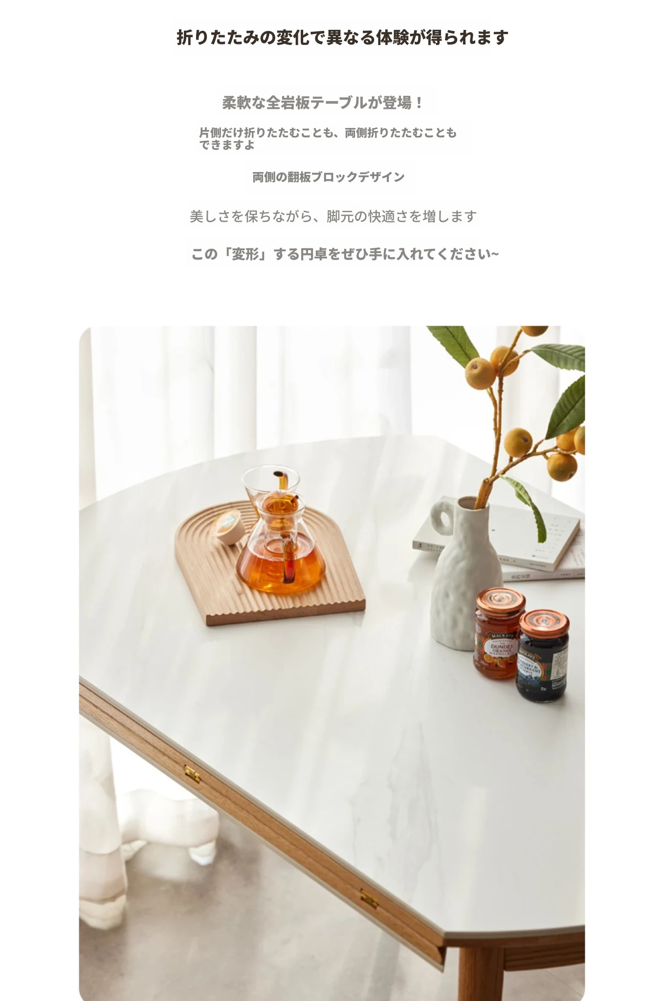 1.3m折りたたみ円卓 - ナチュラルウッド - 魚の腹白