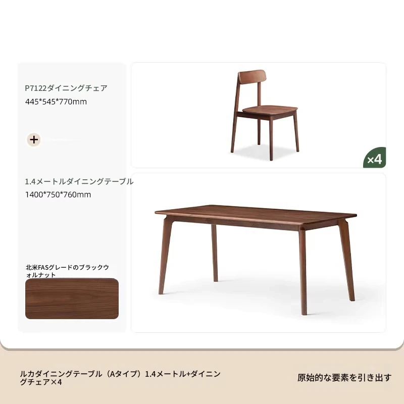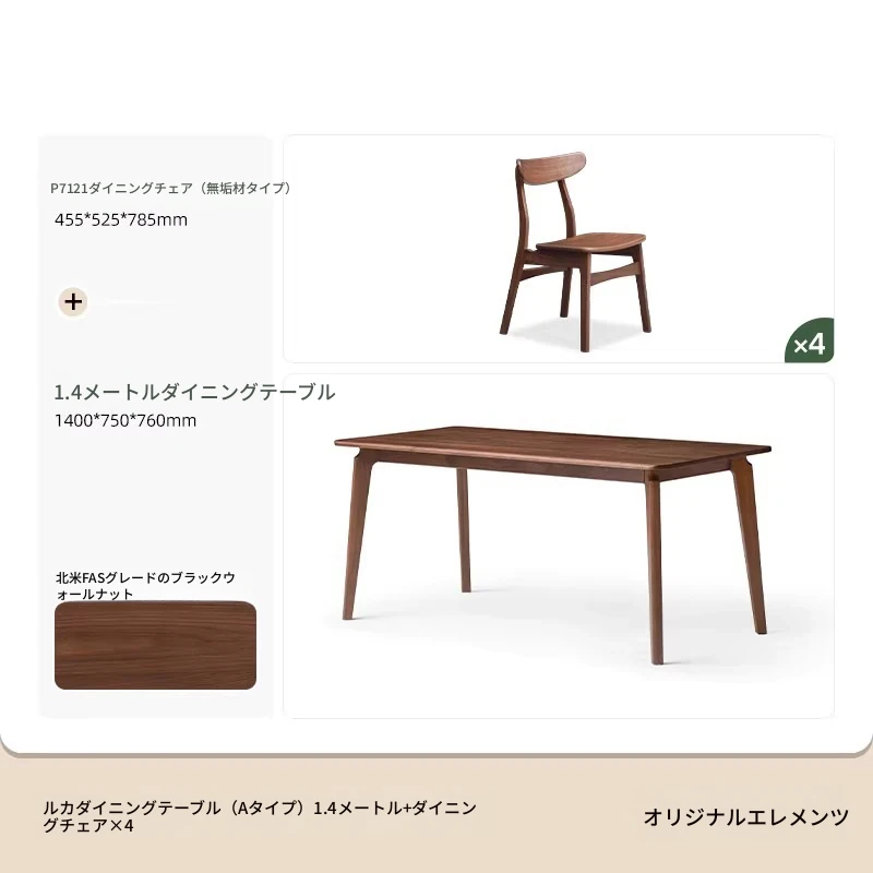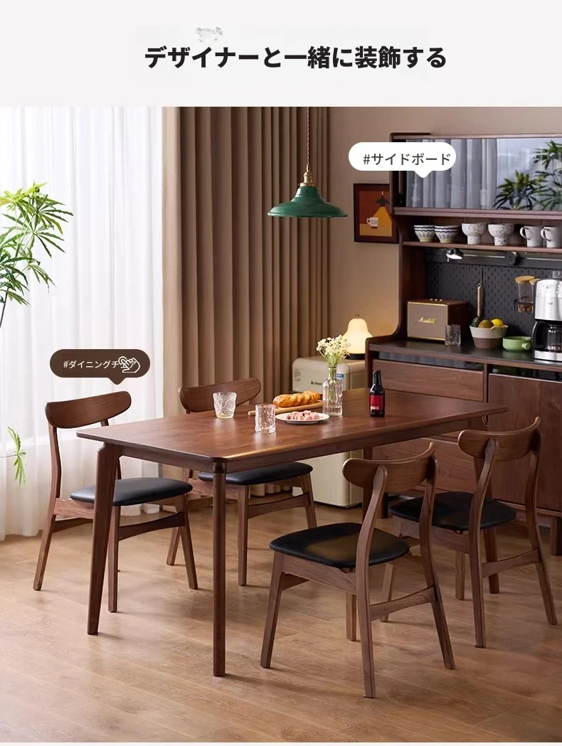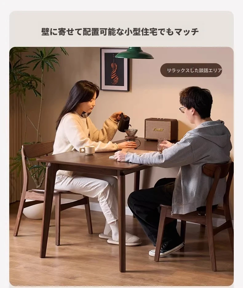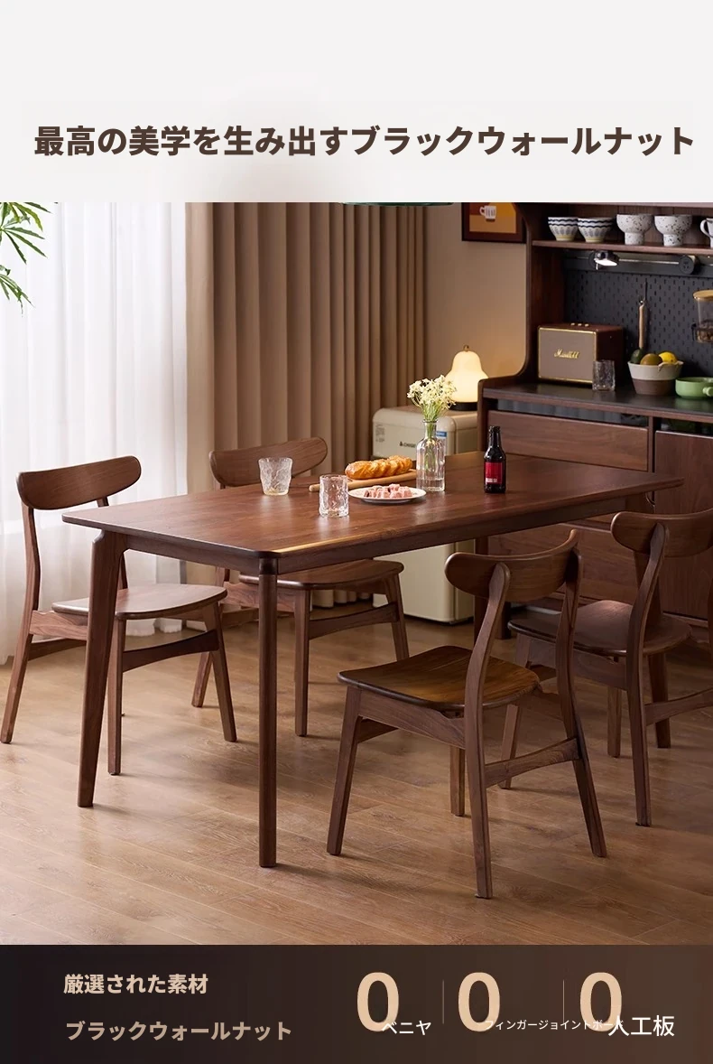 北米産ウォールナット無垢材使用!おしゃれでコンパクトな長方形ダイニングテーブル&チェアセット - 小さなお部屋にぴったりの高品質家具。家庭の温もりを演出します!