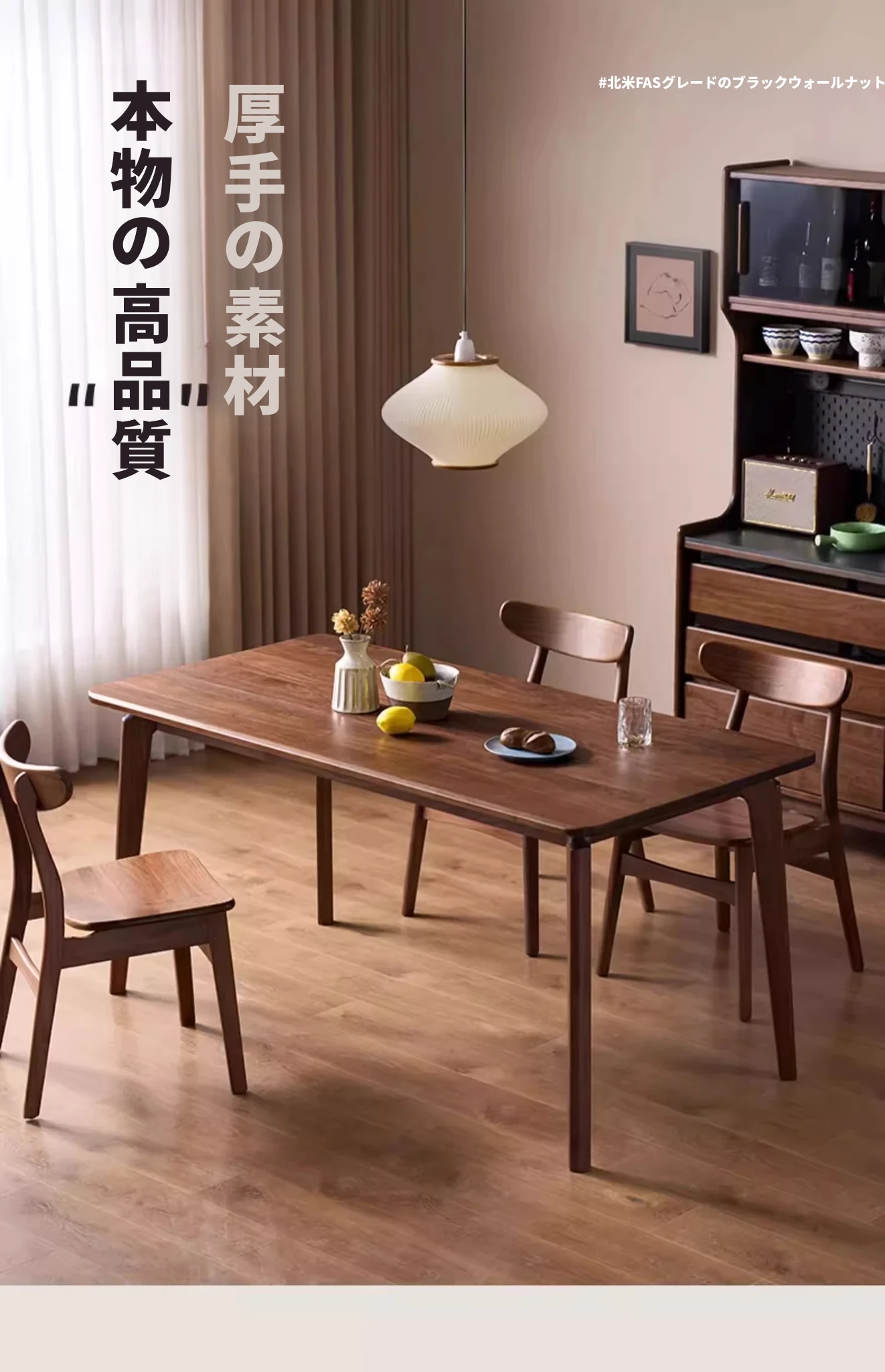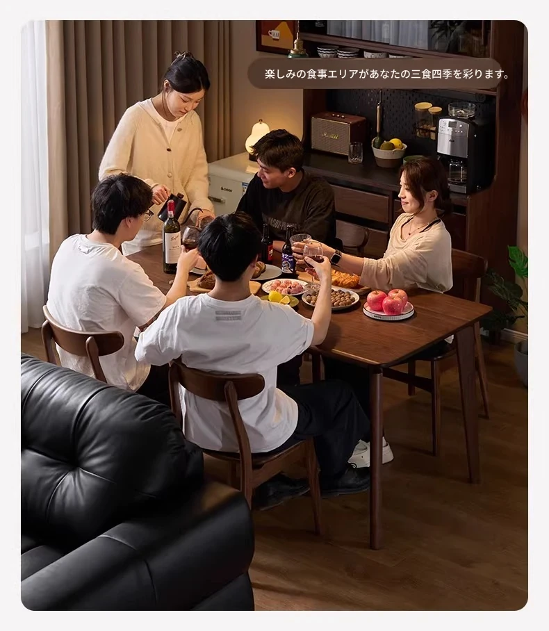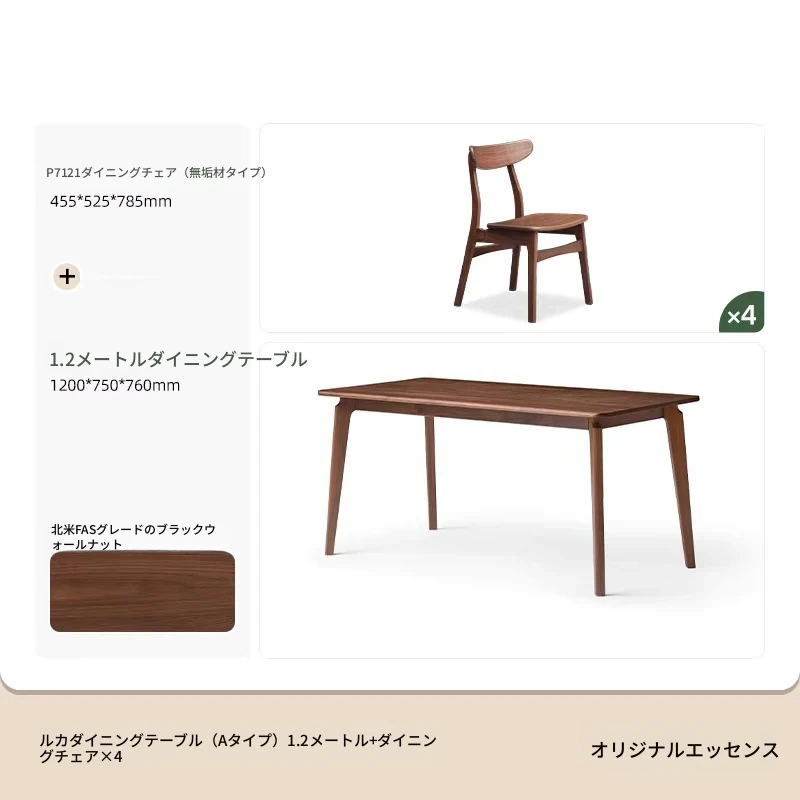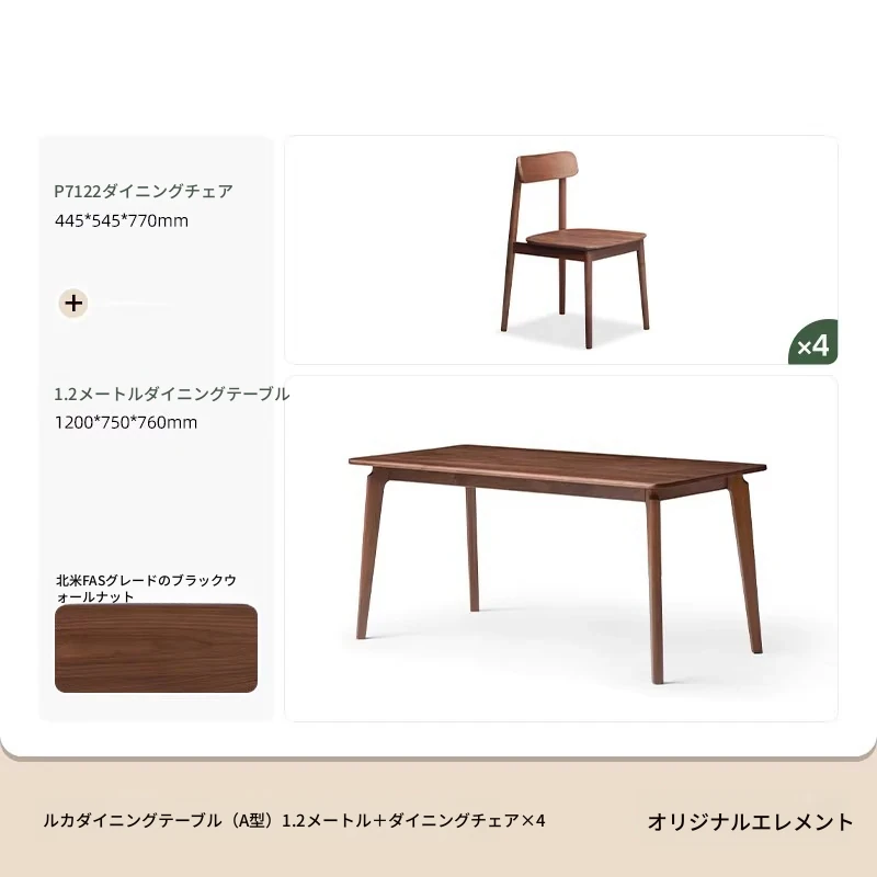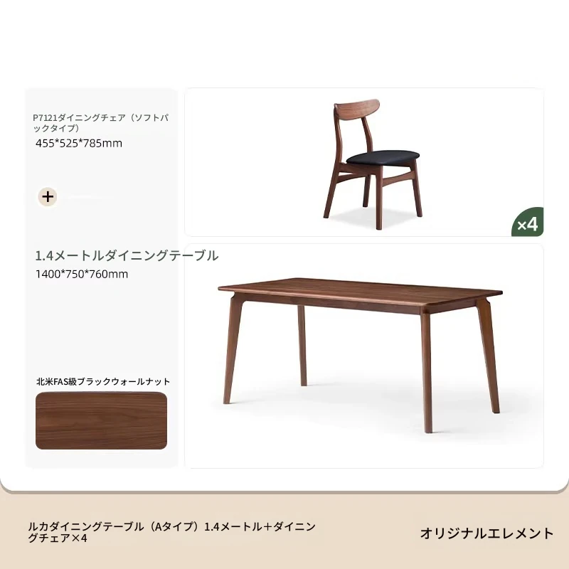 北米産ウォールナット無垢材使用!おしゃれでコンパクトな長方形ダイニングテーブル&チェアセット - 小さなお部屋にぴったりの高品質家具。家庭の温もりを演出します!
