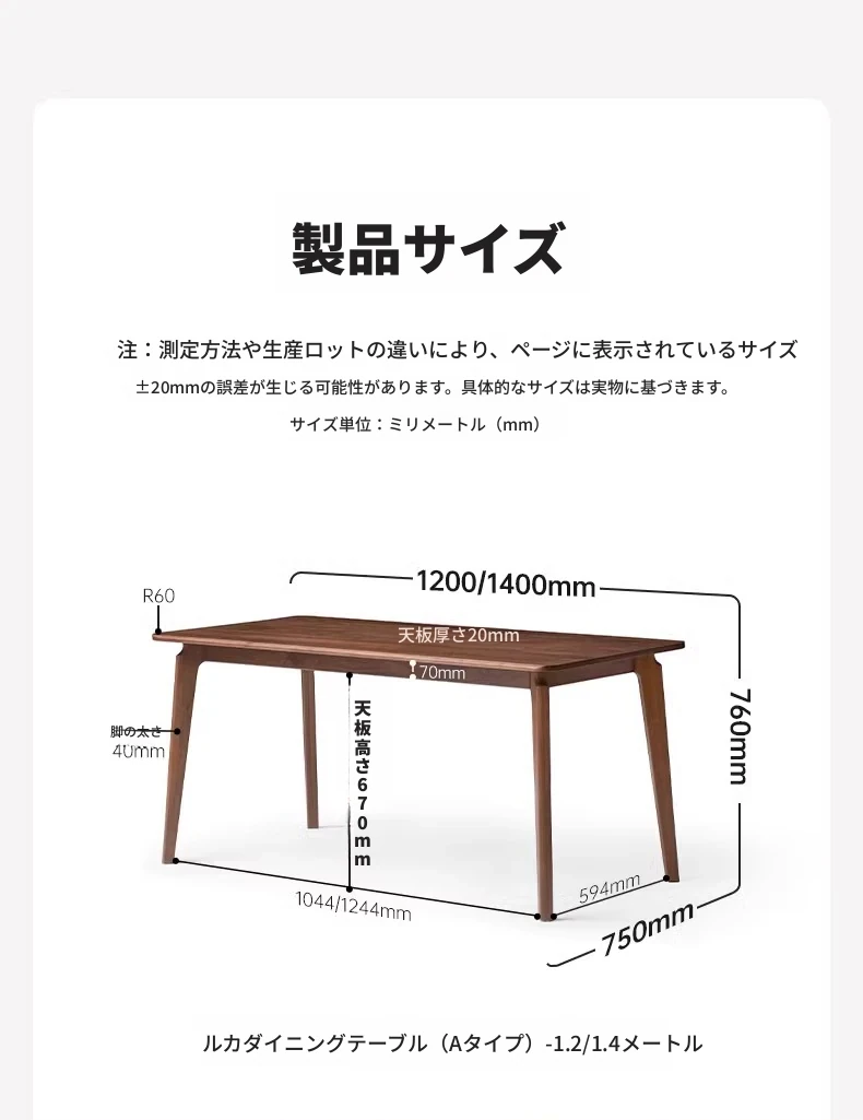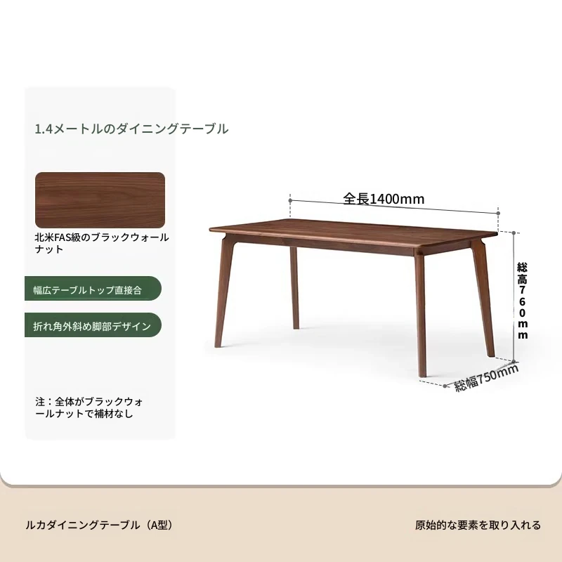ブラックウォールナット 1.4メートル ダイニングテーブル 1400*750*760mm