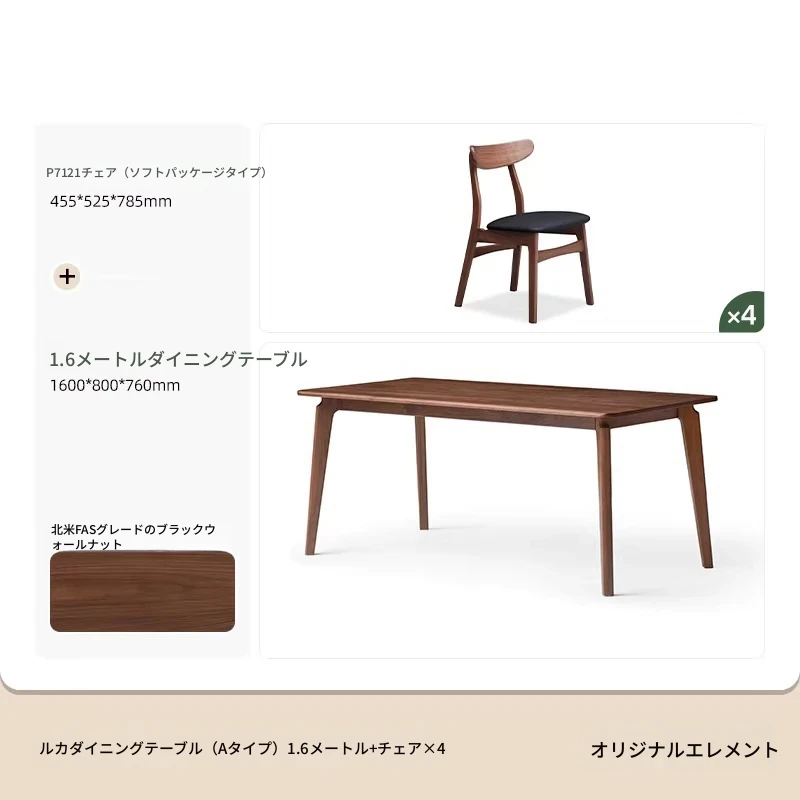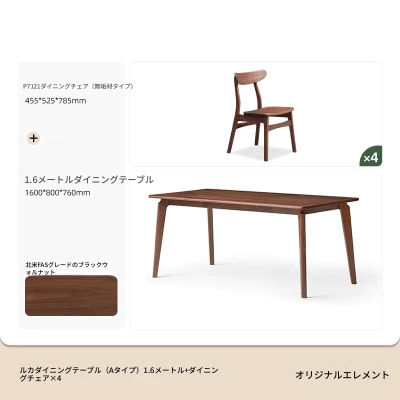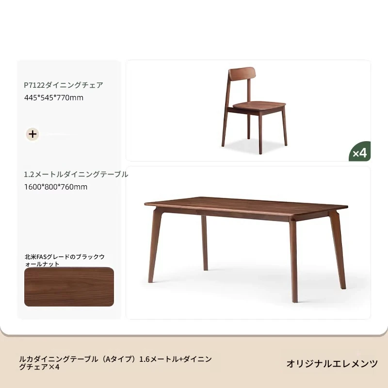 ブラックウォールナット 1.6メートル ダイニングテーブル 1600*800*760mm
