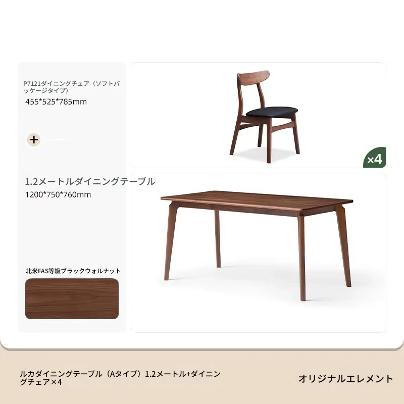 ブラックウォールナット 1.2メートル ダイニングテーブル 1200*750*760mm