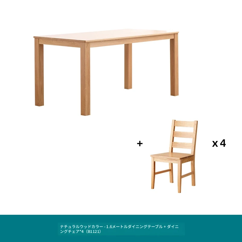 原木色-1.6mダイニングテーブル+テビックチェア*4 (B1121)