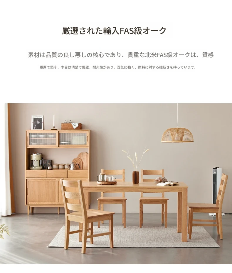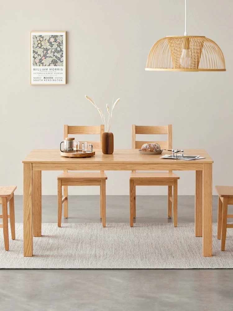 北欧スタイルの本格木製ダイニングテーブル|シンプルでモダンなデザイン|小さな部屋にも最適!オーク材使用の長方形テーブル&椅子セットで、快適な食事時間をお楽しみください。