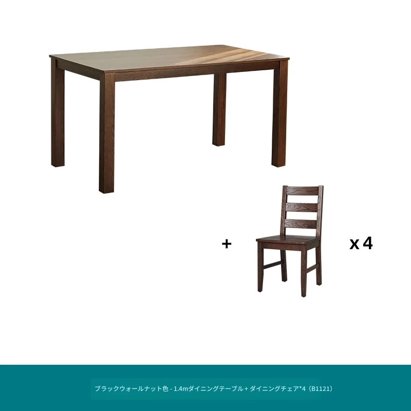 ウォールナット色-1.4mダイニングテーブル+テビックチェア*4 (B1121)