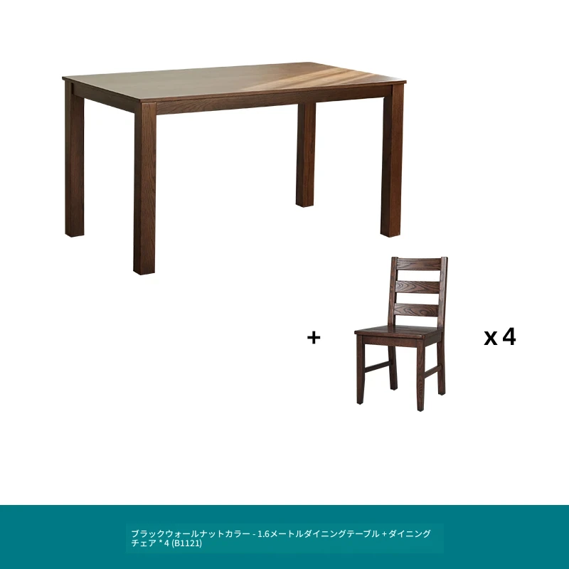 ウォールナット色-1.6mダイニングテーブル+テビックチェア*4 (B1121)