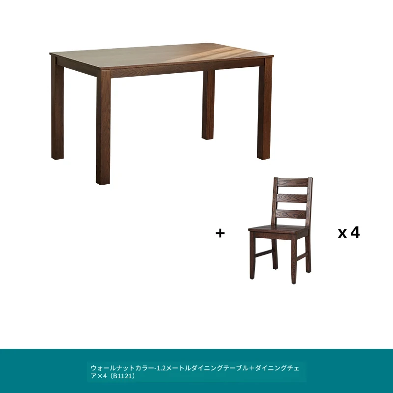 ウォールナット色-1.2mダイニングテーブル+テビックチェア*4 (B1121)