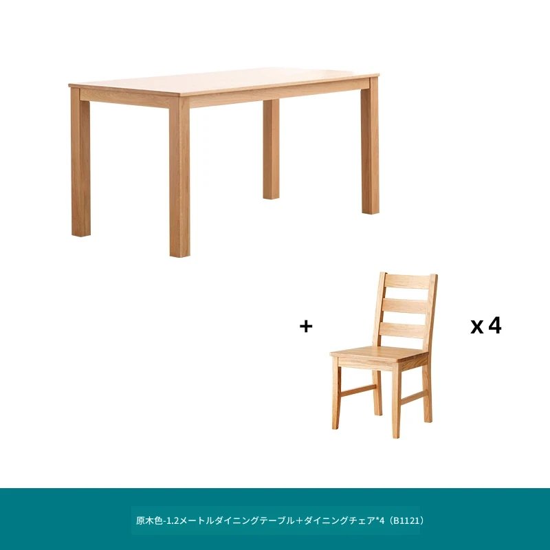 原木色-1.2mダイニングテーブル+テビックチェア*4 (B1121)