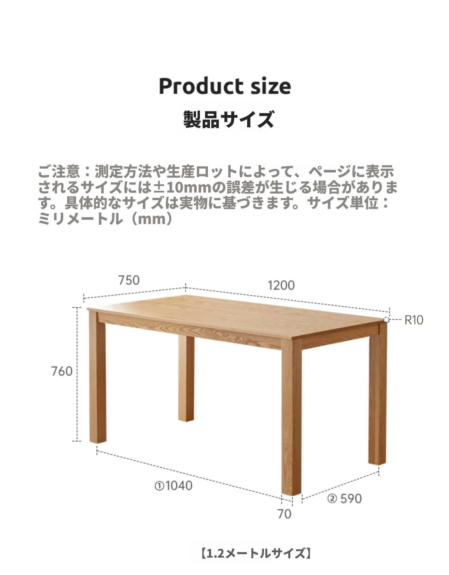 原木色-1.2mオークダイニングテーブル 1200*750*760mm