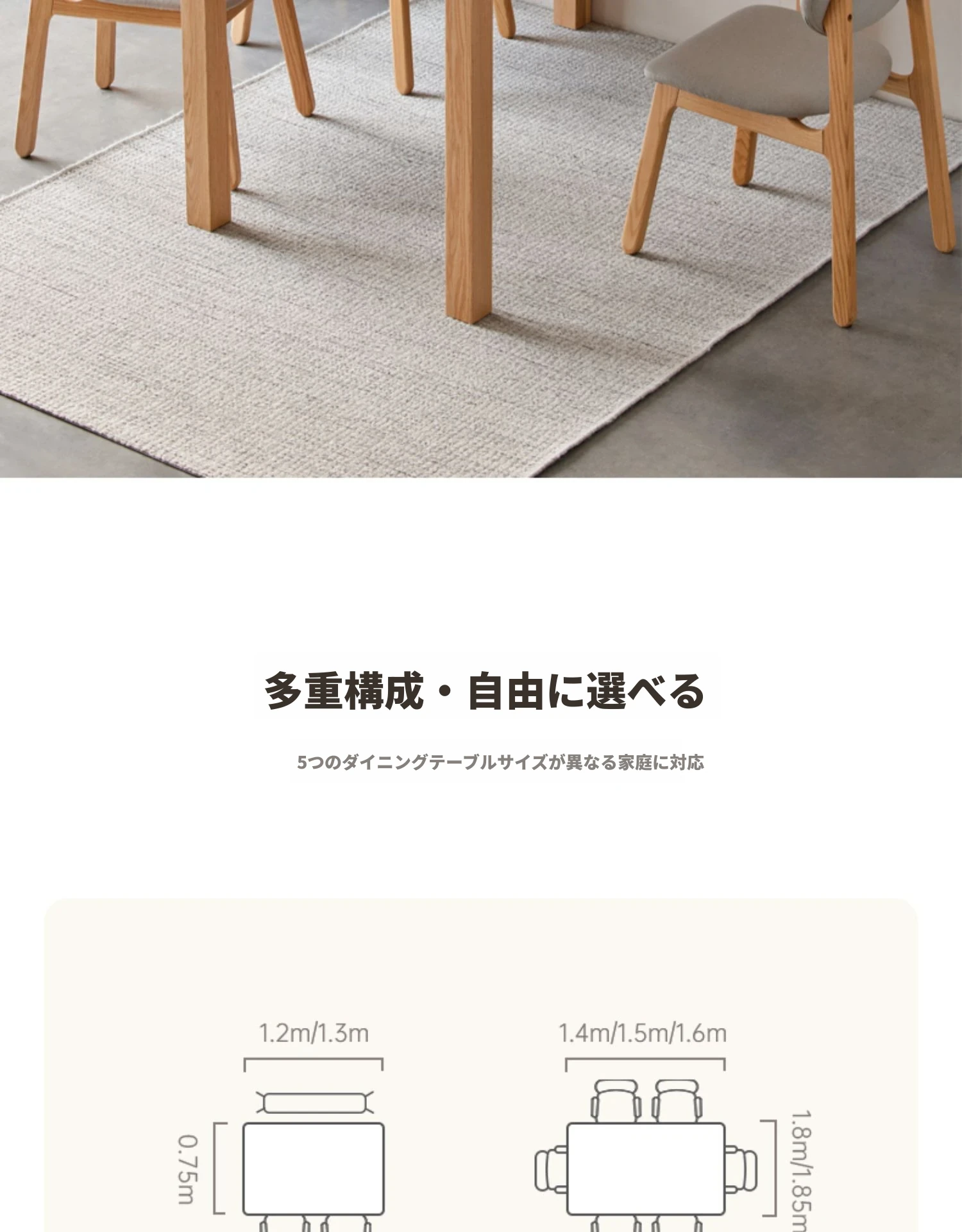 原木色-1.3mオークダイニングテーブル 1300*750*760mm