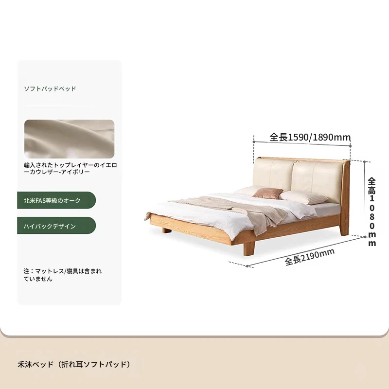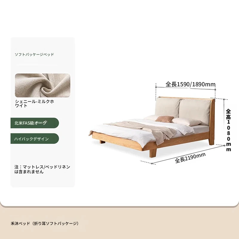 【オーク-シェニール-アイボリー色】禾沐ベッド(折耳ソフトパッケージ)