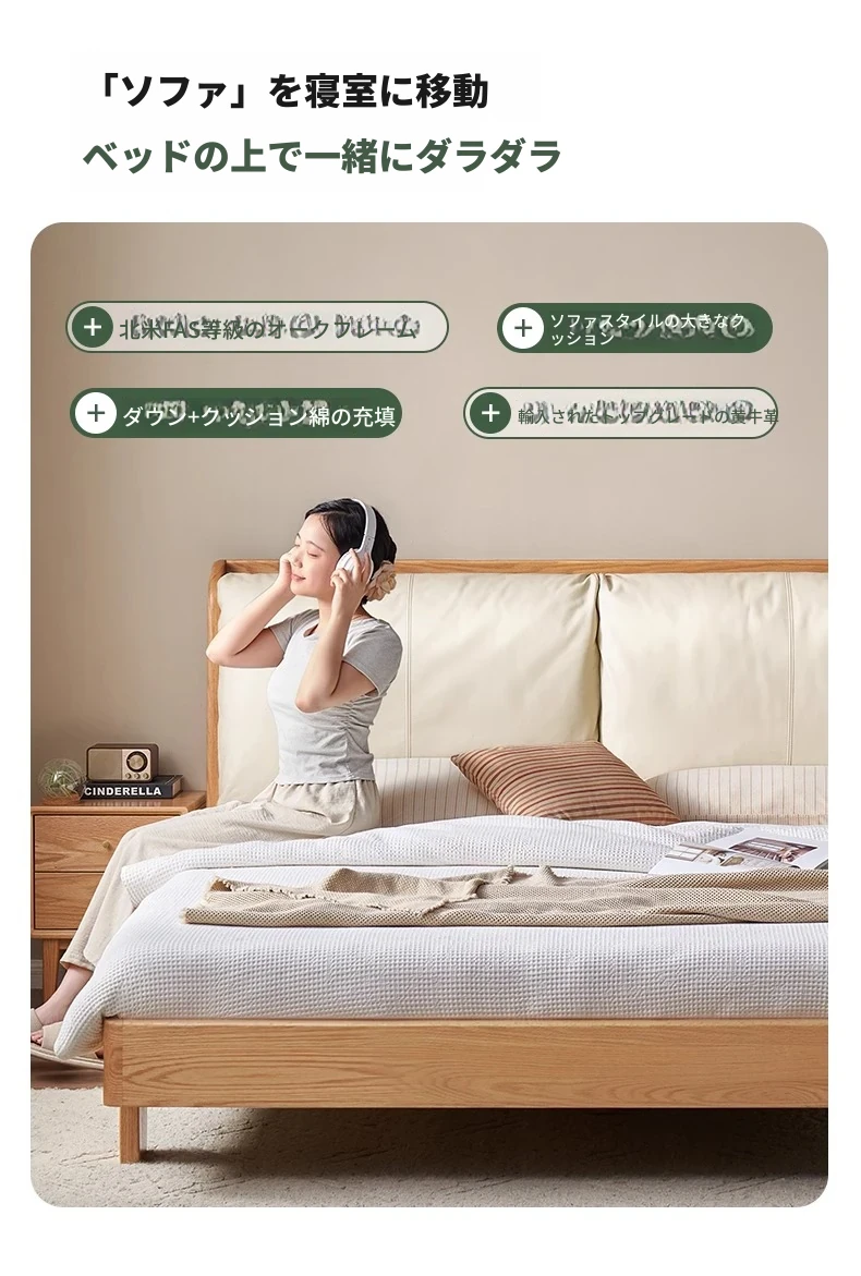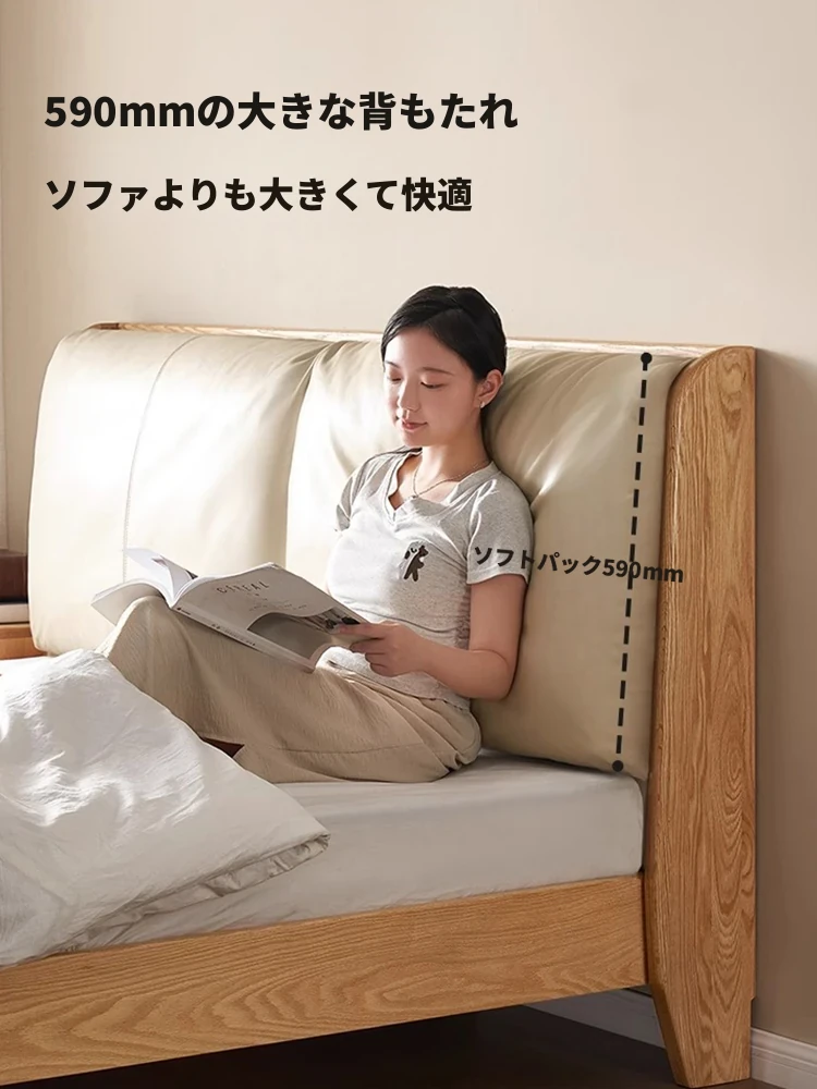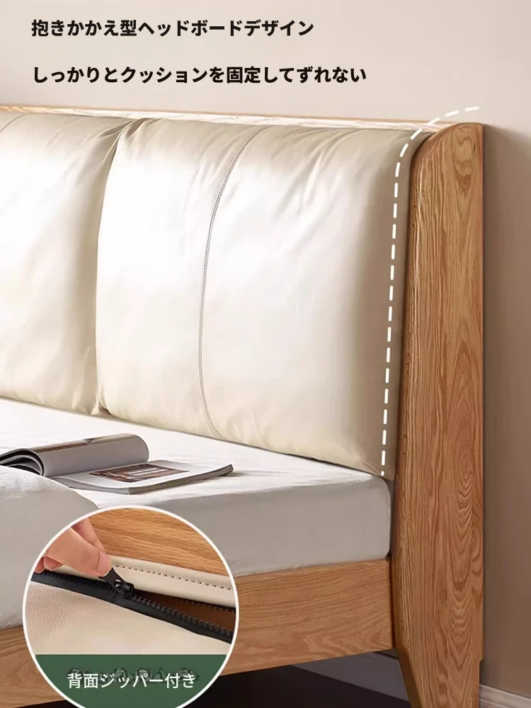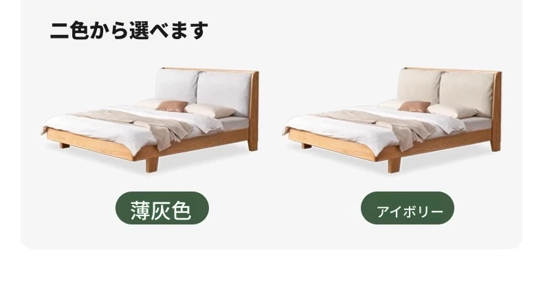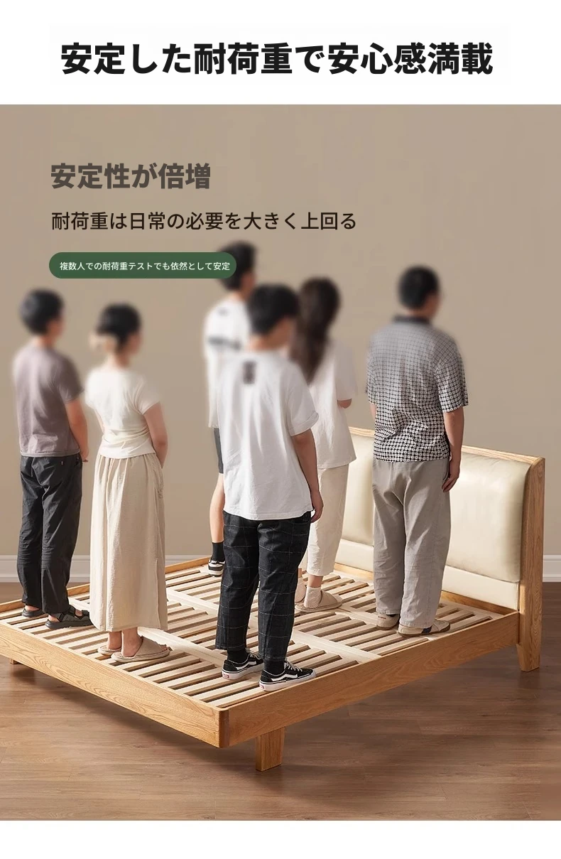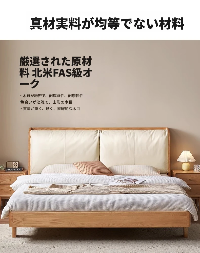 北欧スタイルの無垢材ソフトパッケージベッド - モダンでシンプルなオーク材使用、1.8mダブルベッド、主寝室にぴったりな原木家具。快適な睡眠をサポートします!