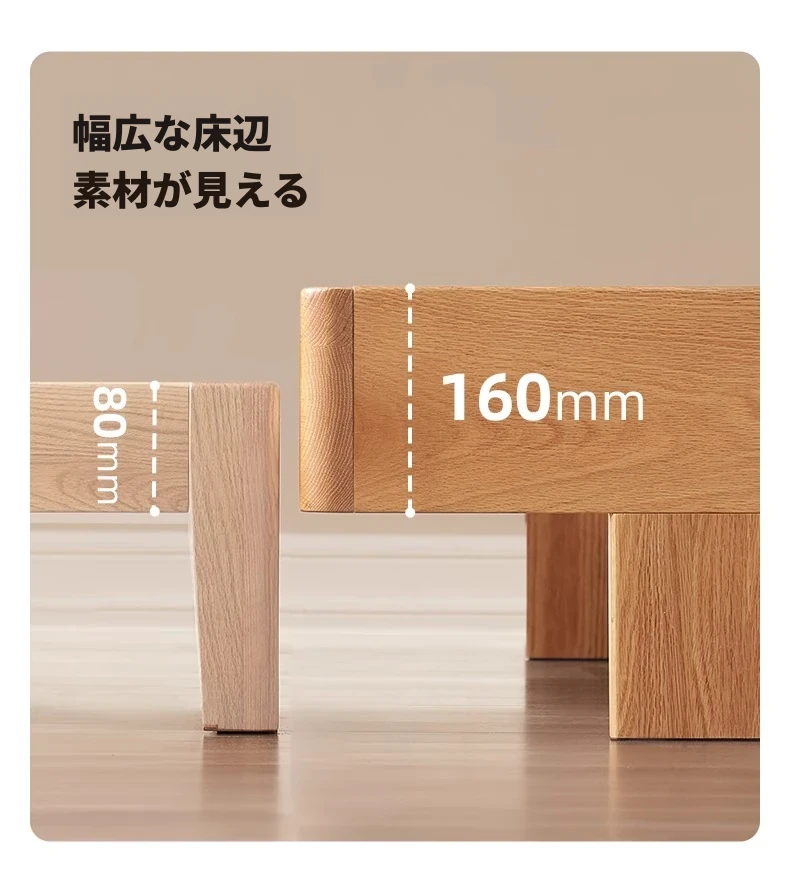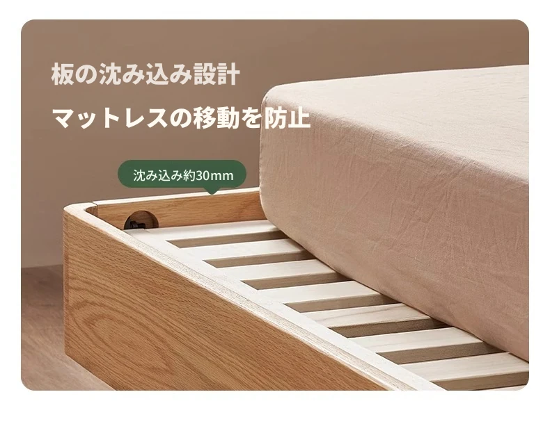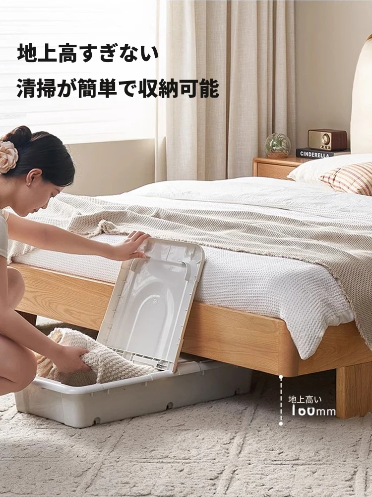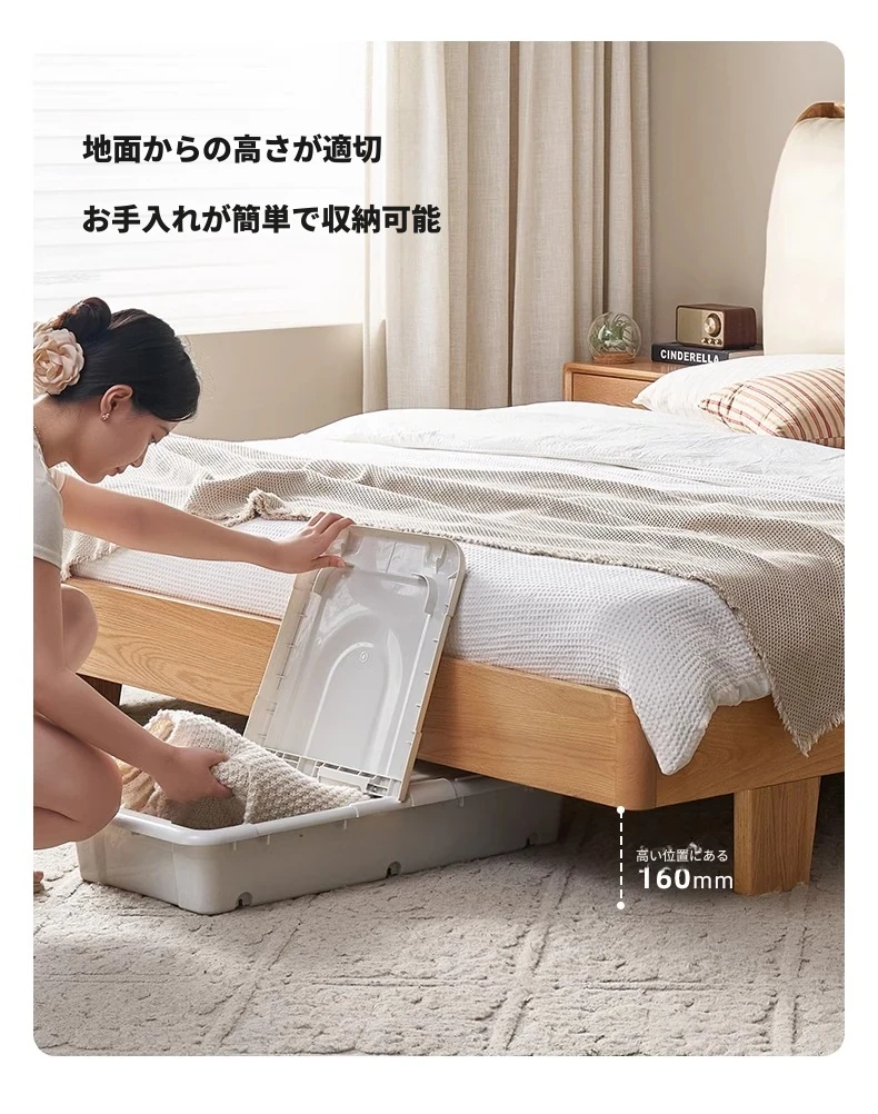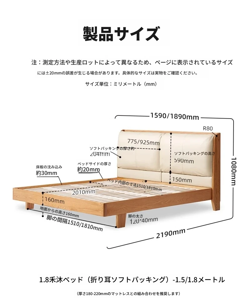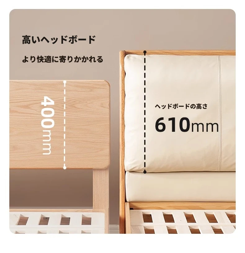北欧スタイルの無垢材ソフトパッケージベッド - モダンでシンプルなオーク材使用、1.8mダブルベッド、主寝室にぴったりな原木家具。快適な睡眠をサポートします!