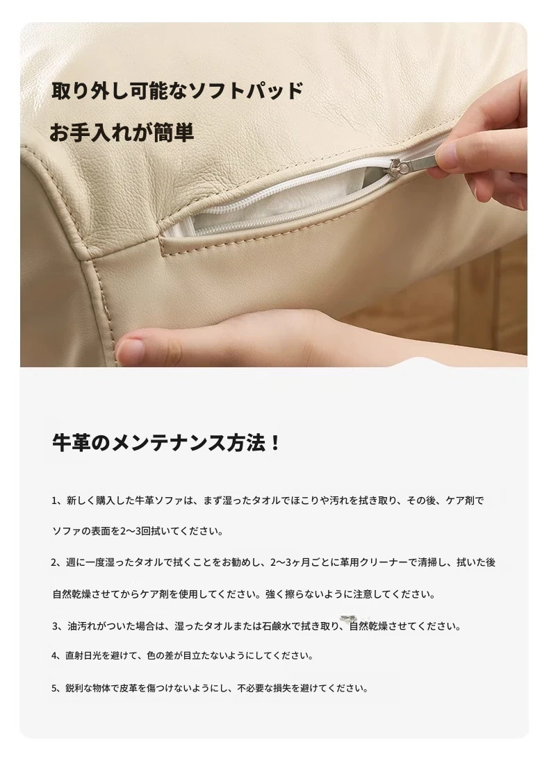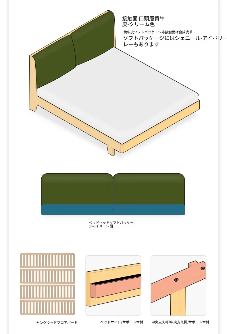 【オーク-トップグレイン牛革-クリーム色】禾沐ベッド(折耳ソフトパッケージ)