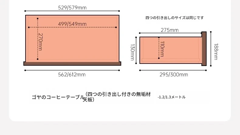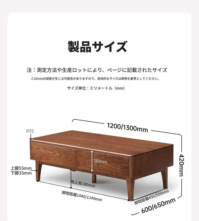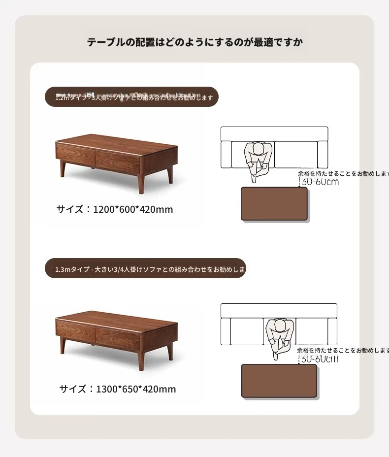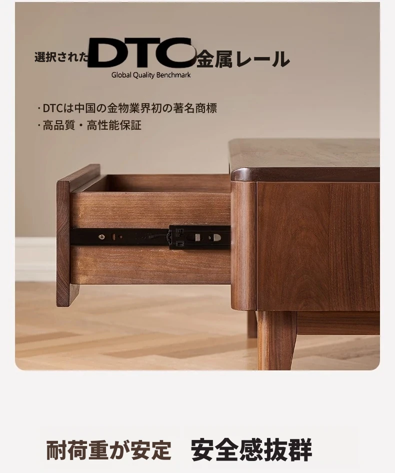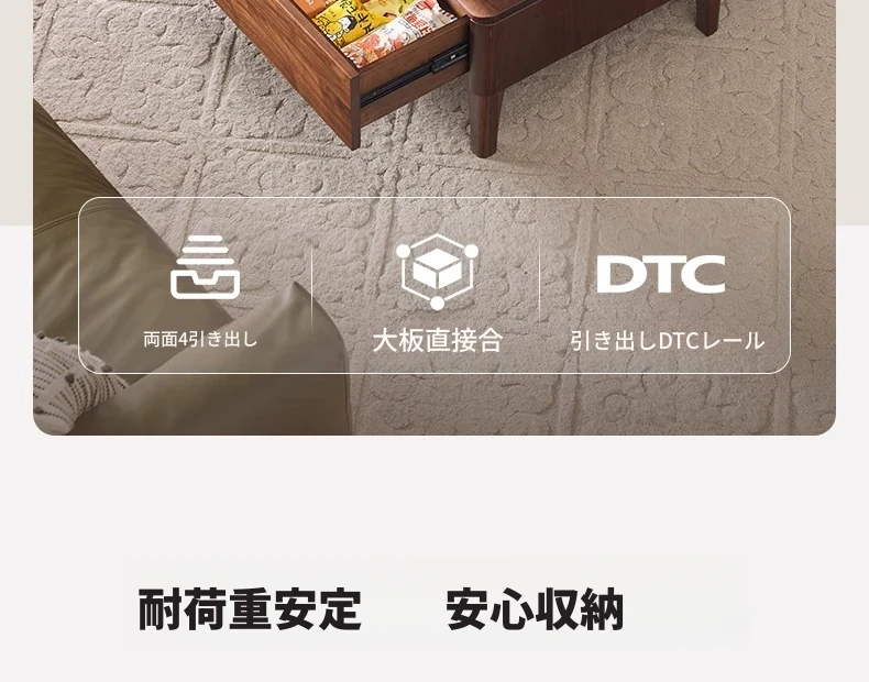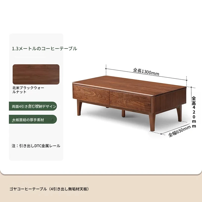 【ブラックウォールナット-ゴヤコーヒーテーブル】(4引き出し無垢材天板)1300*650*420mm