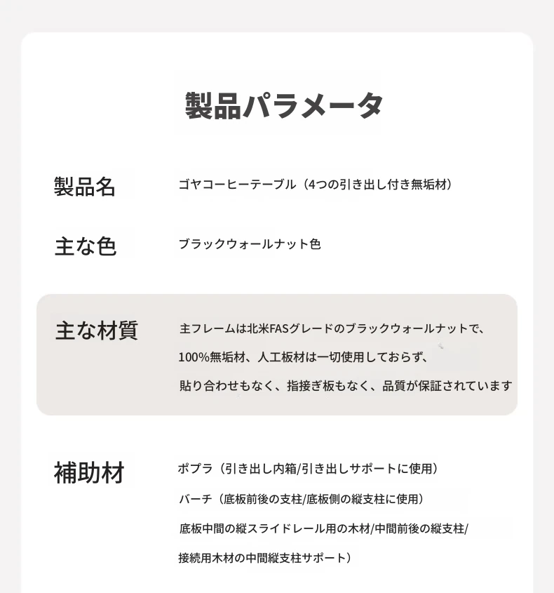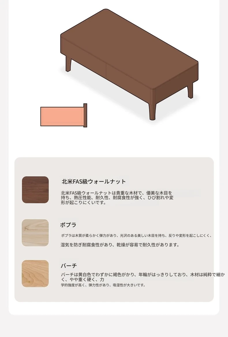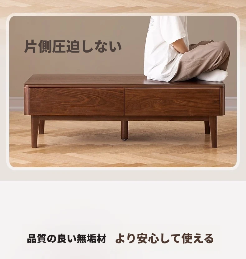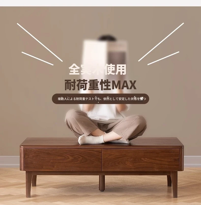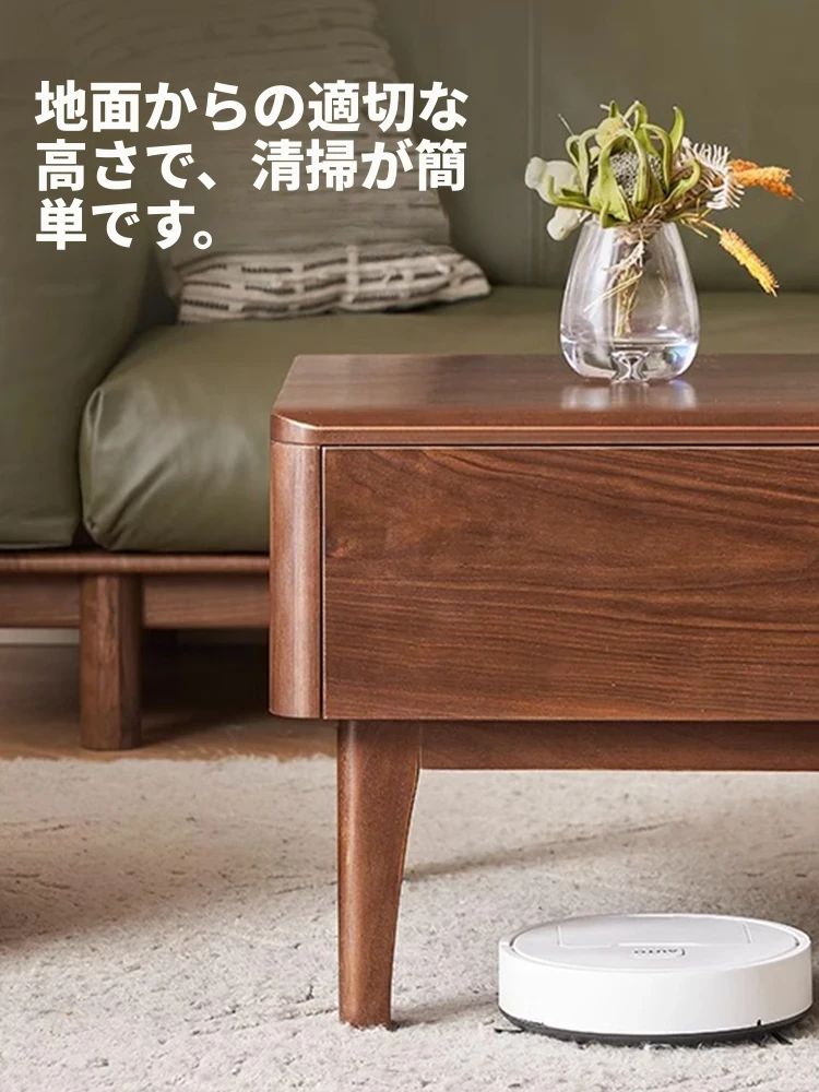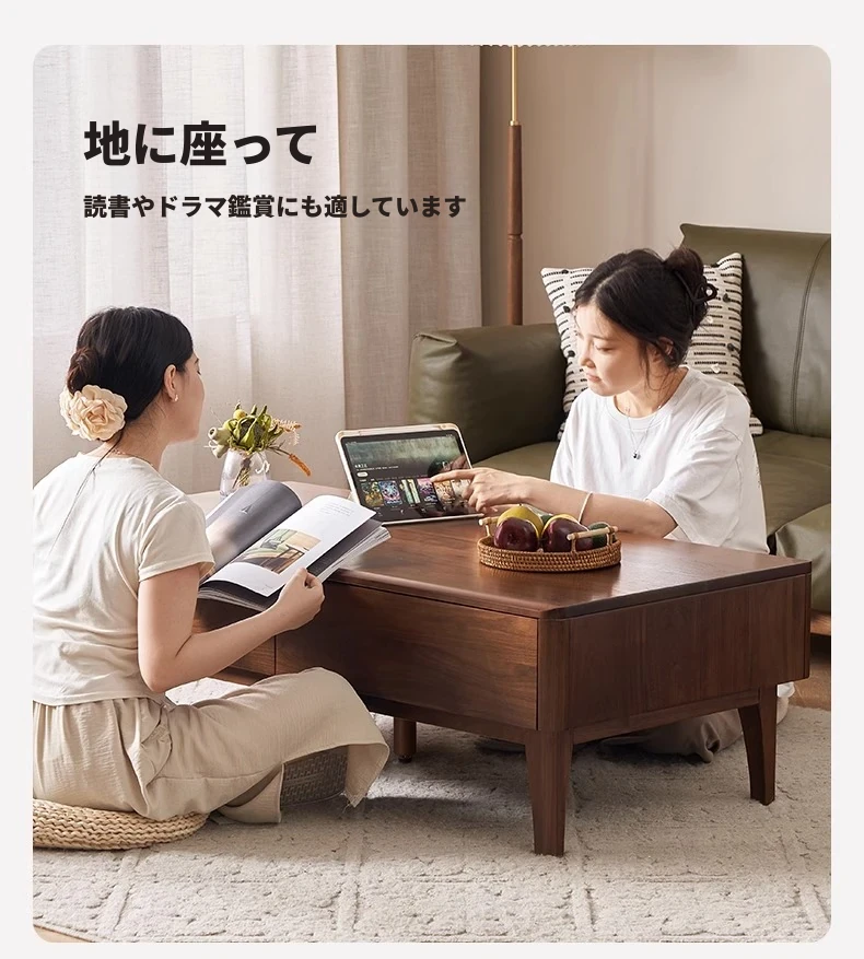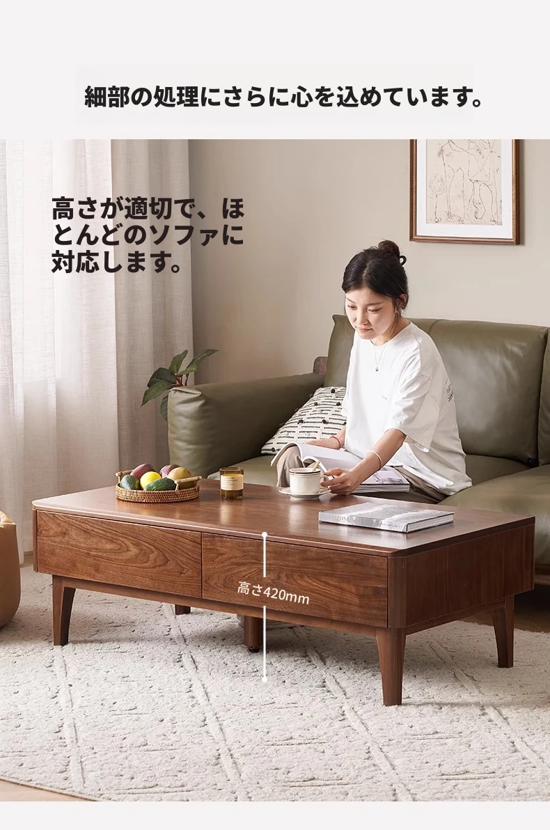 原始原素北米産ブラックウォールナットのラグジュアリー感あふれる4段引き出し付き、シンプルでスタイリッシュなリビング用実木コーヒーテーブル。小さな空間にもぴったり!