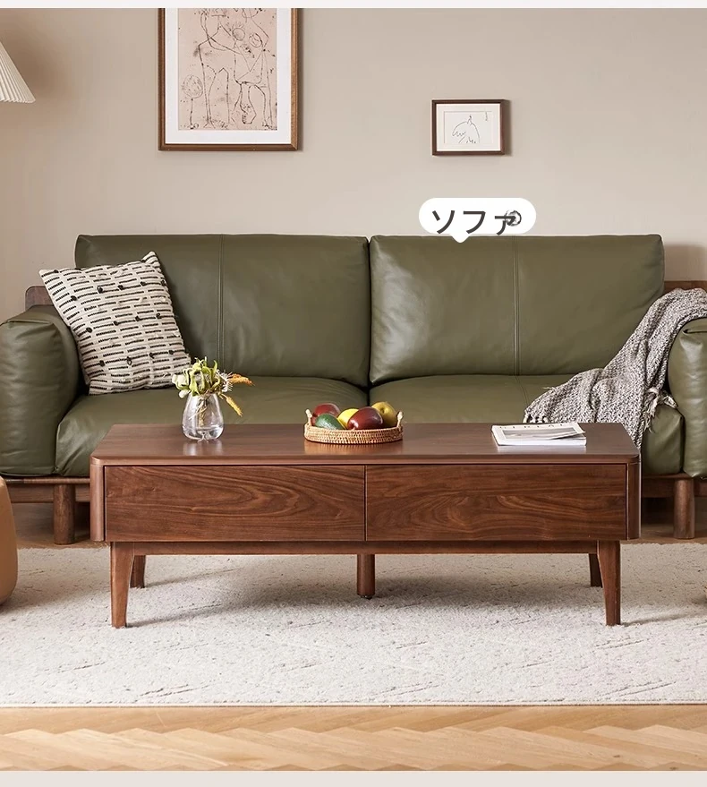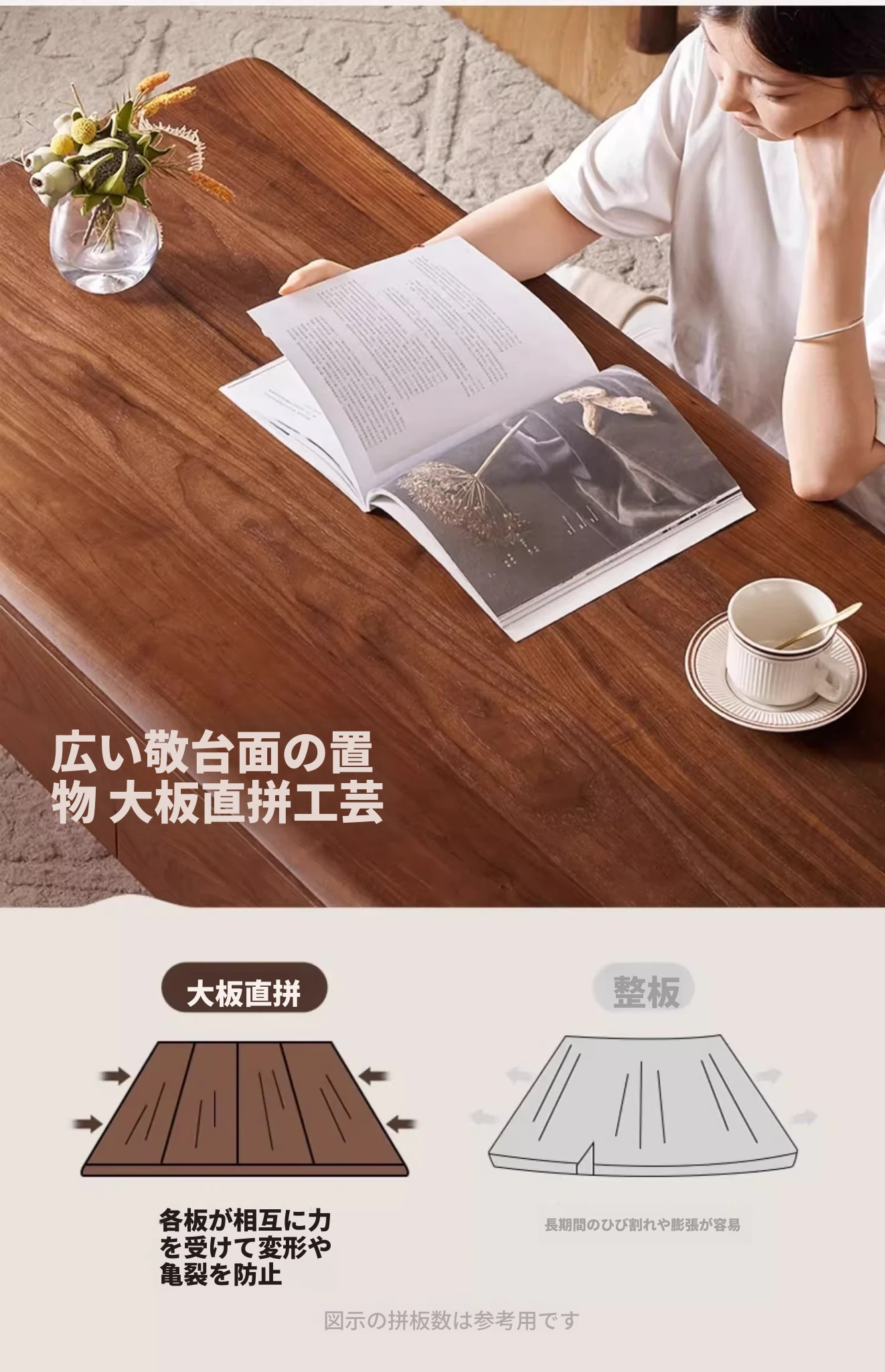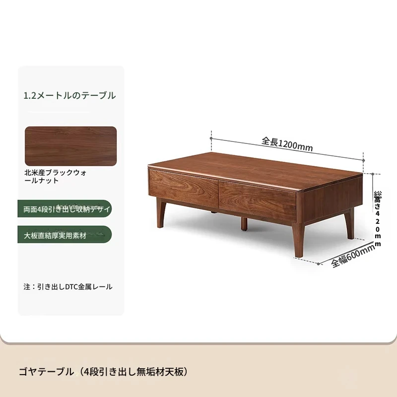 【ブラックウォールナット-ゴヤコーヒーテーブル】(4引き出し無垢材天板)1200*600*420mm