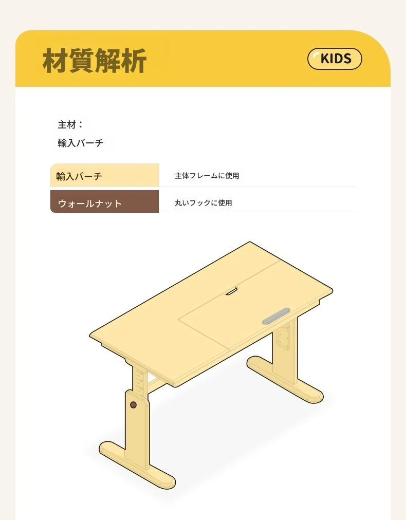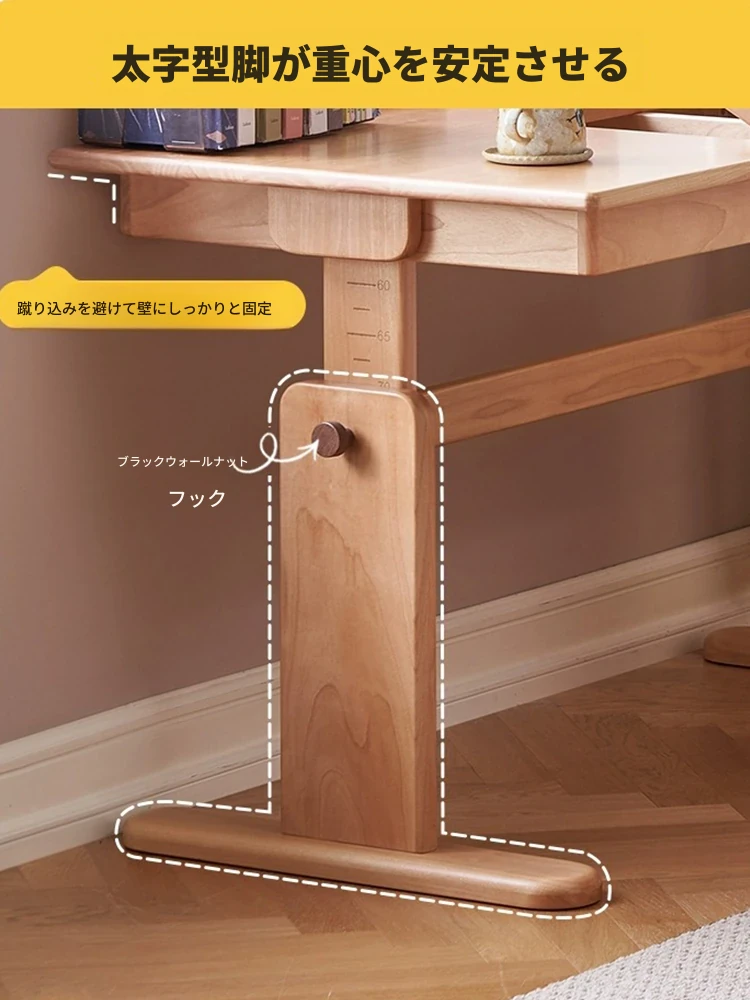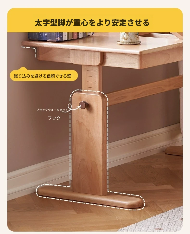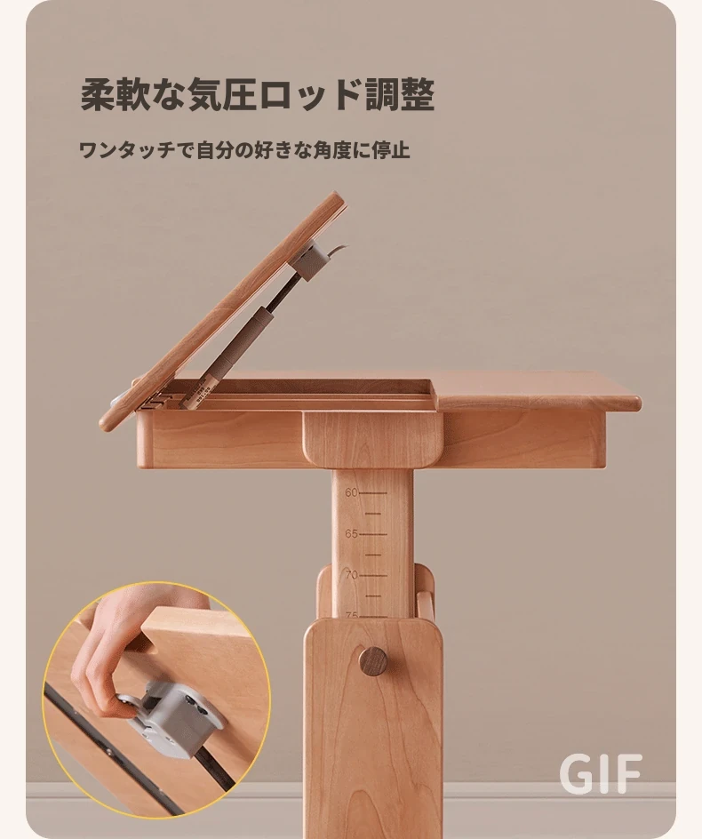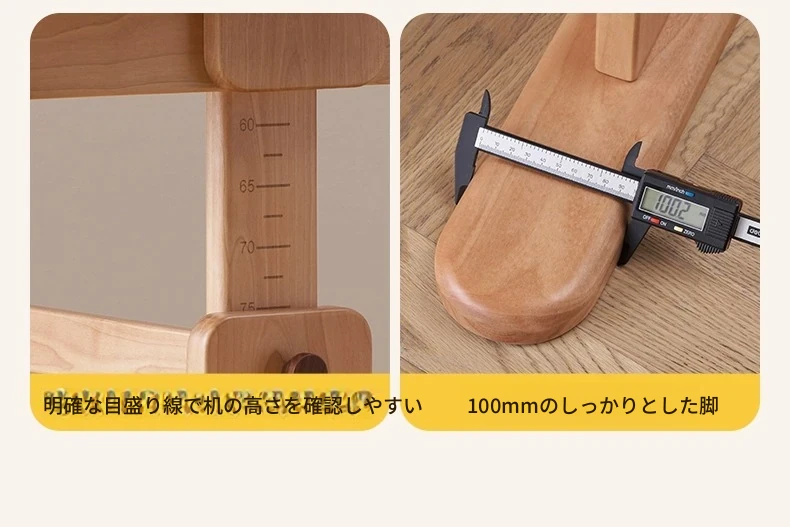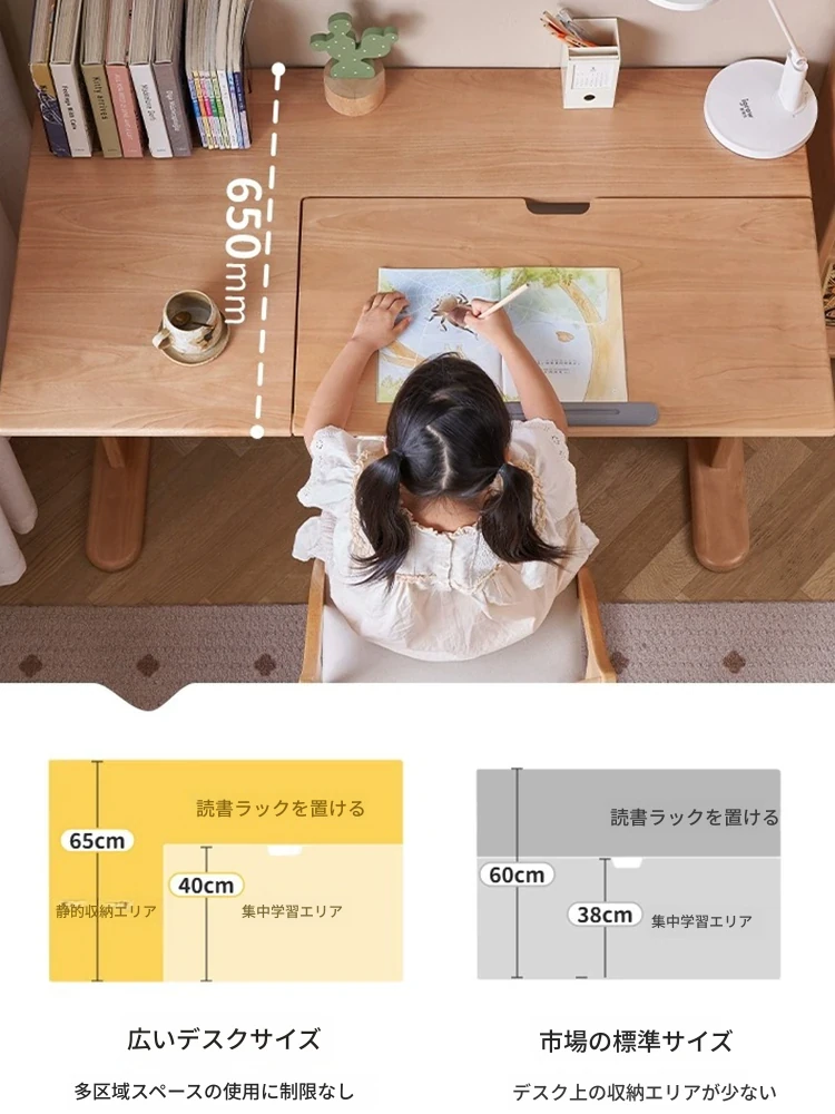 原木素材のシンプルな子供用学習デスク - 調整可能な昇降式、成長に合わせて使える!勉強も楽しくなるスタイリッシュなデザイン。
