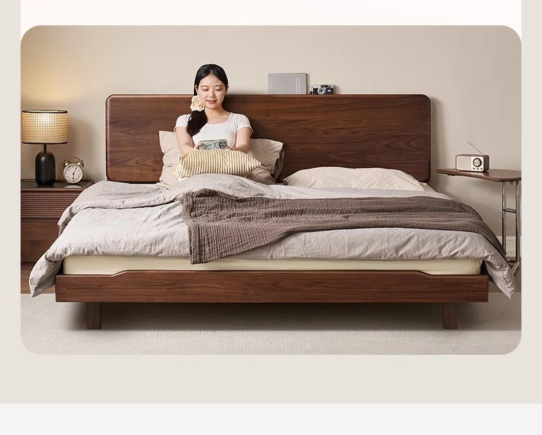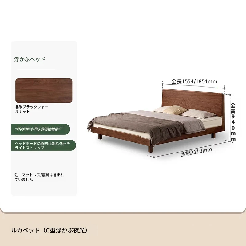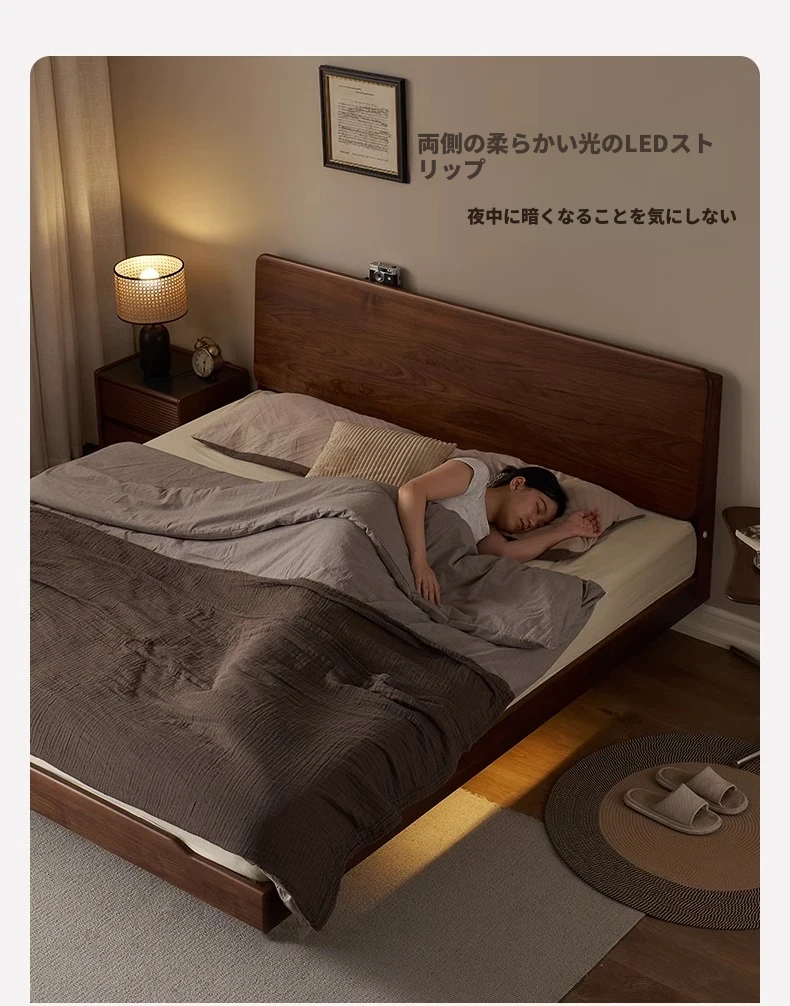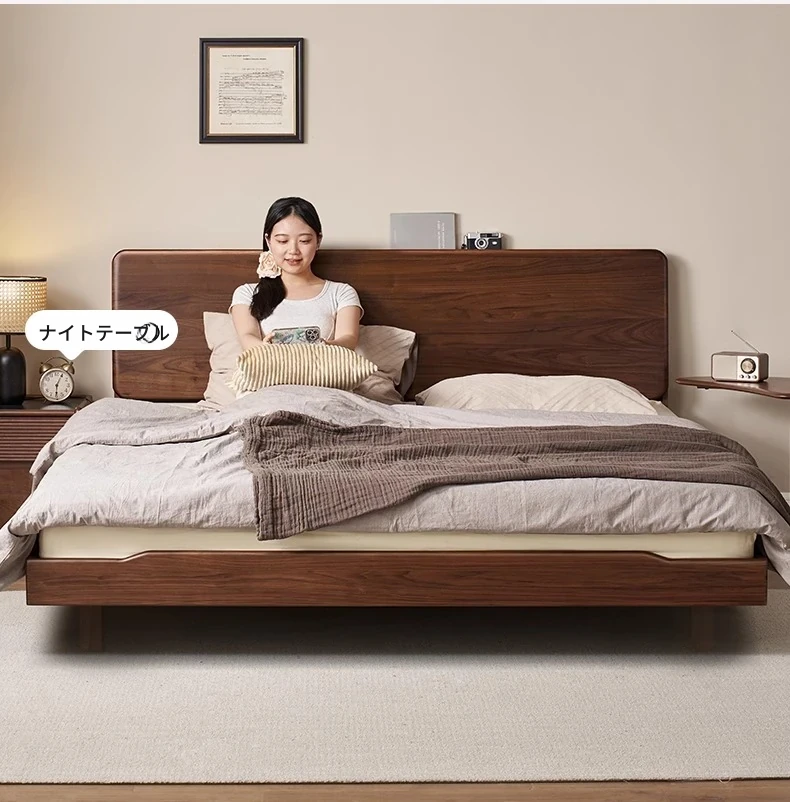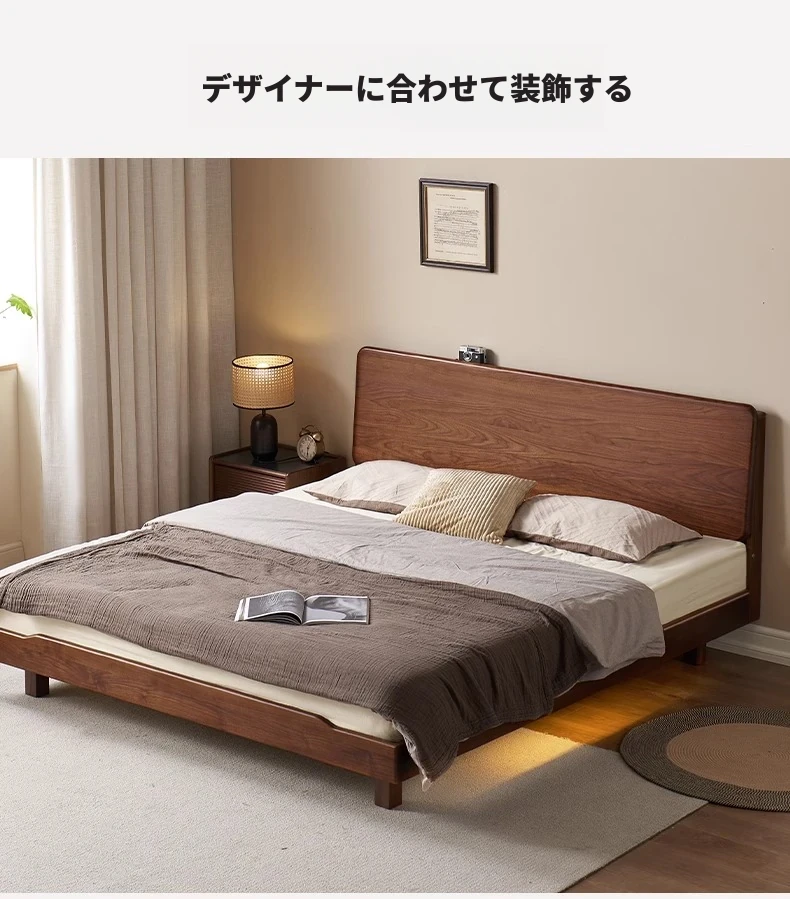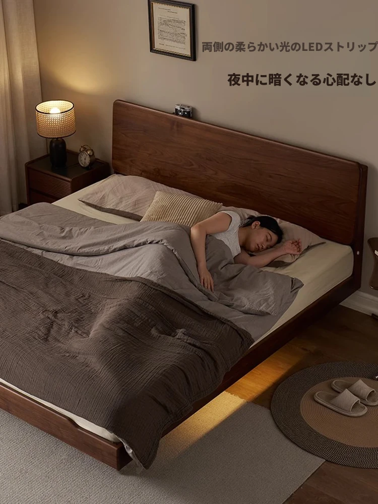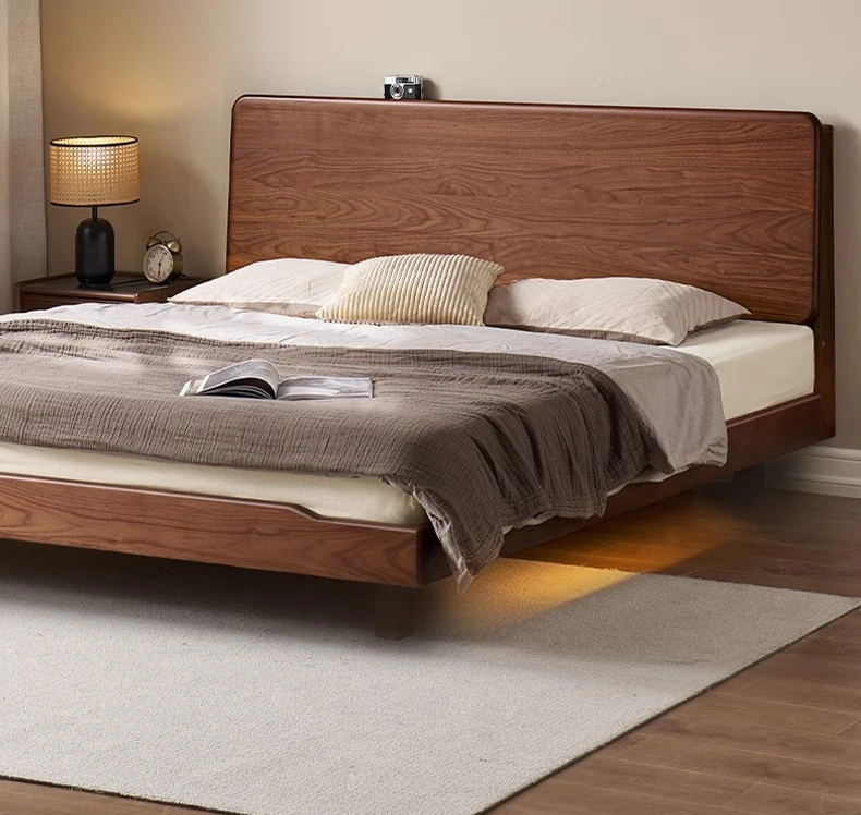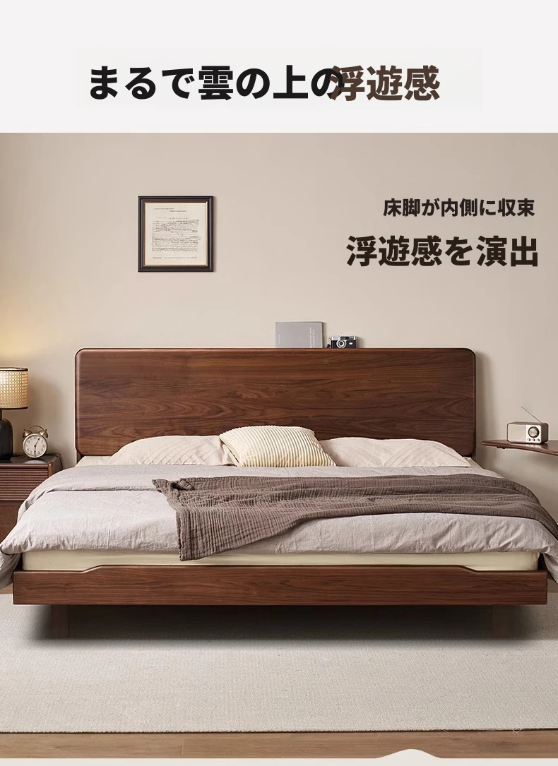 原始エレメント 無垢材使用 モダンシンプル ブラックウォールナット ダブル浮遊ベッド 小型住宅向け スタイリッシュなデザイン