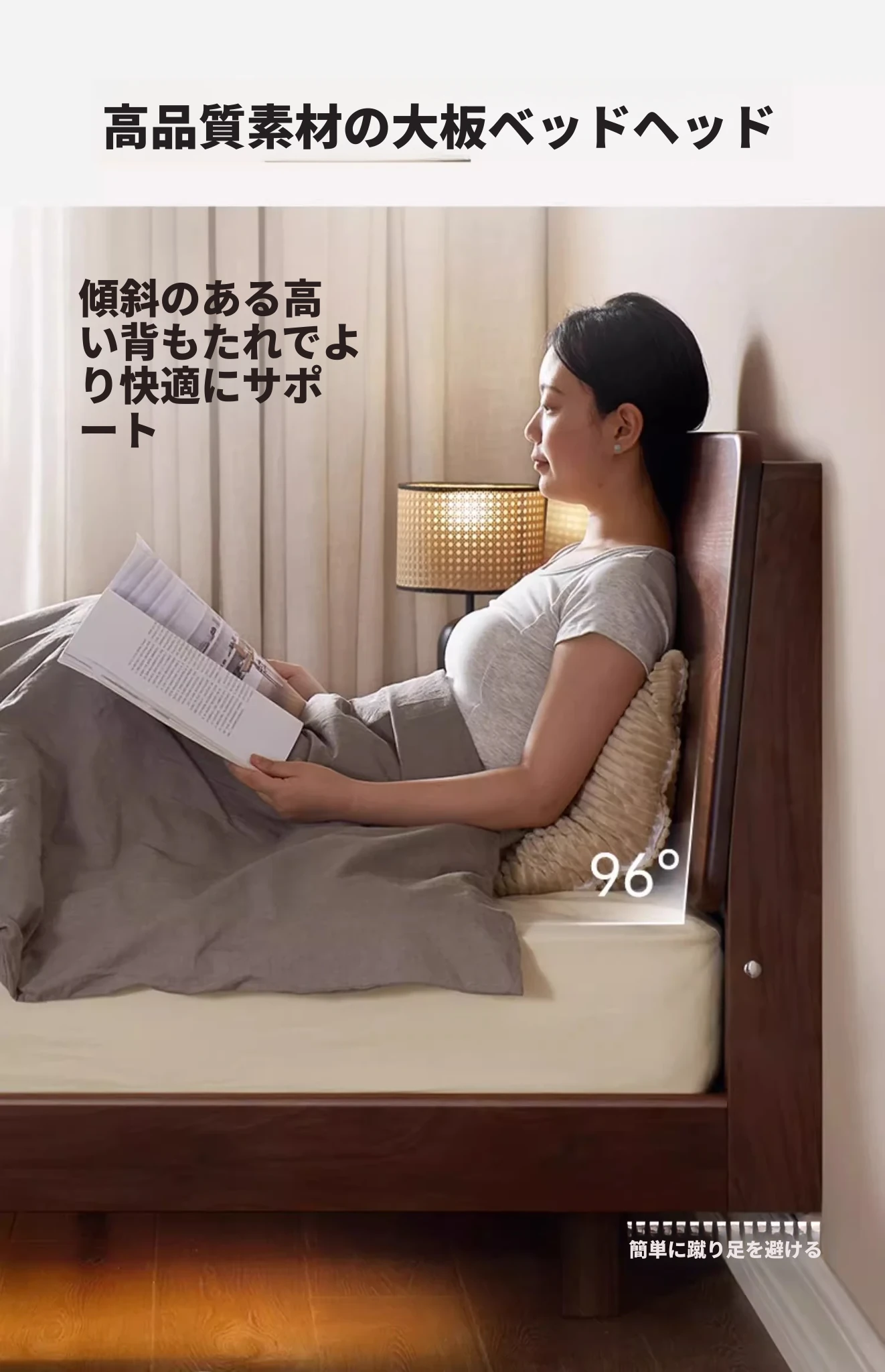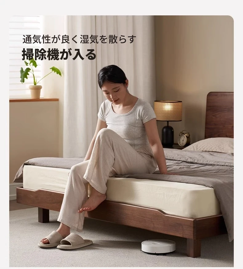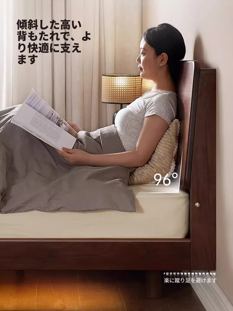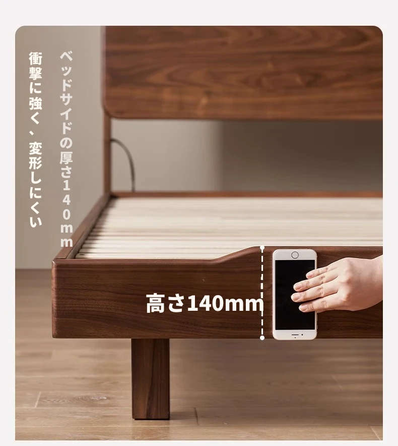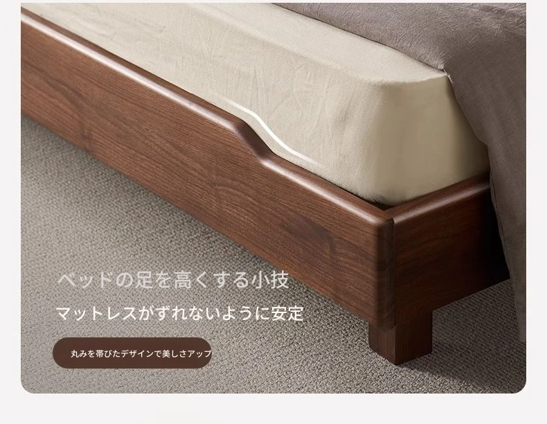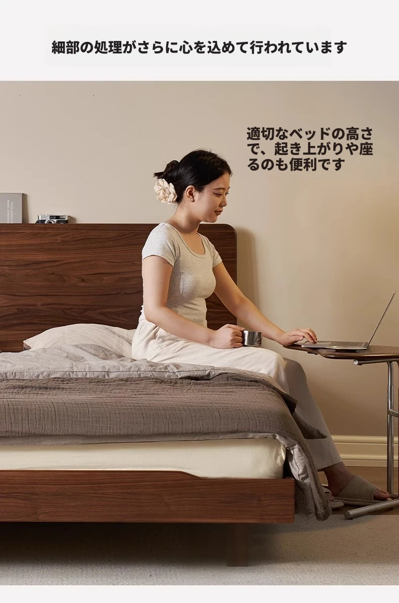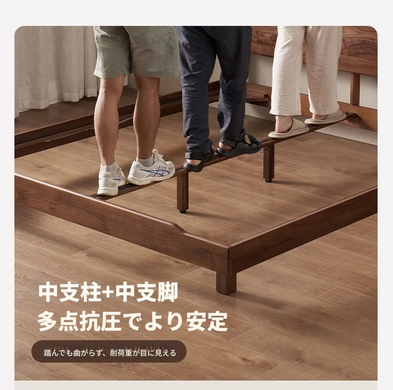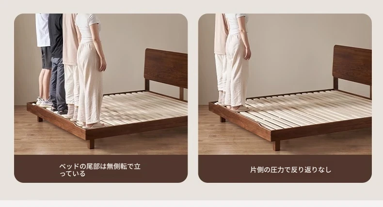 原始エレメント 無垢材使用 モダンシンプル ブラックウォールナット ダブル浮遊ベッド 小型住宅向け スタイリッシュなデザイン