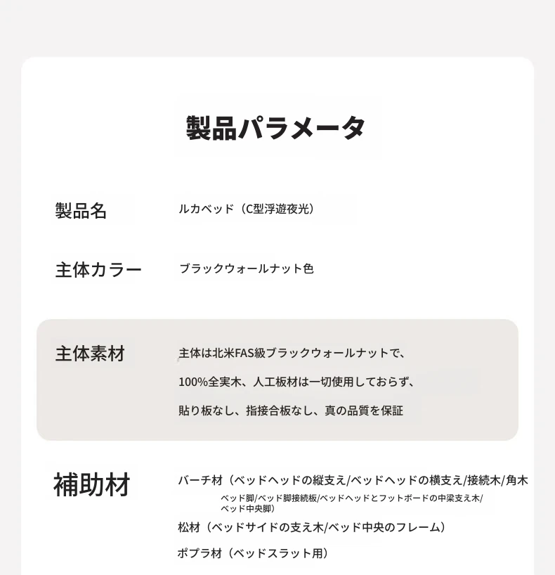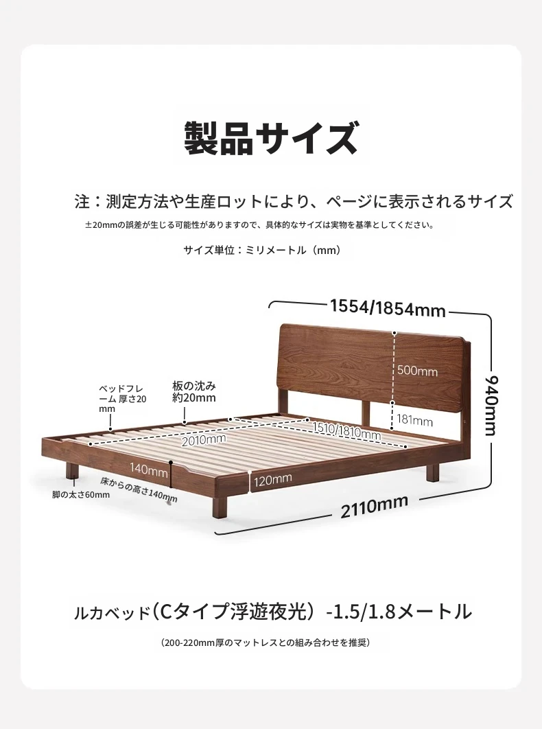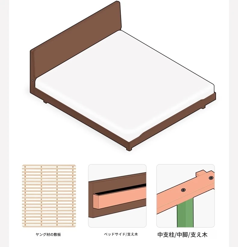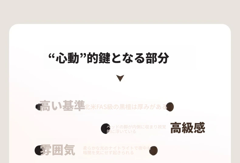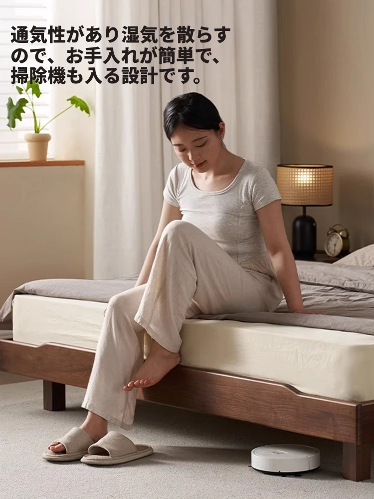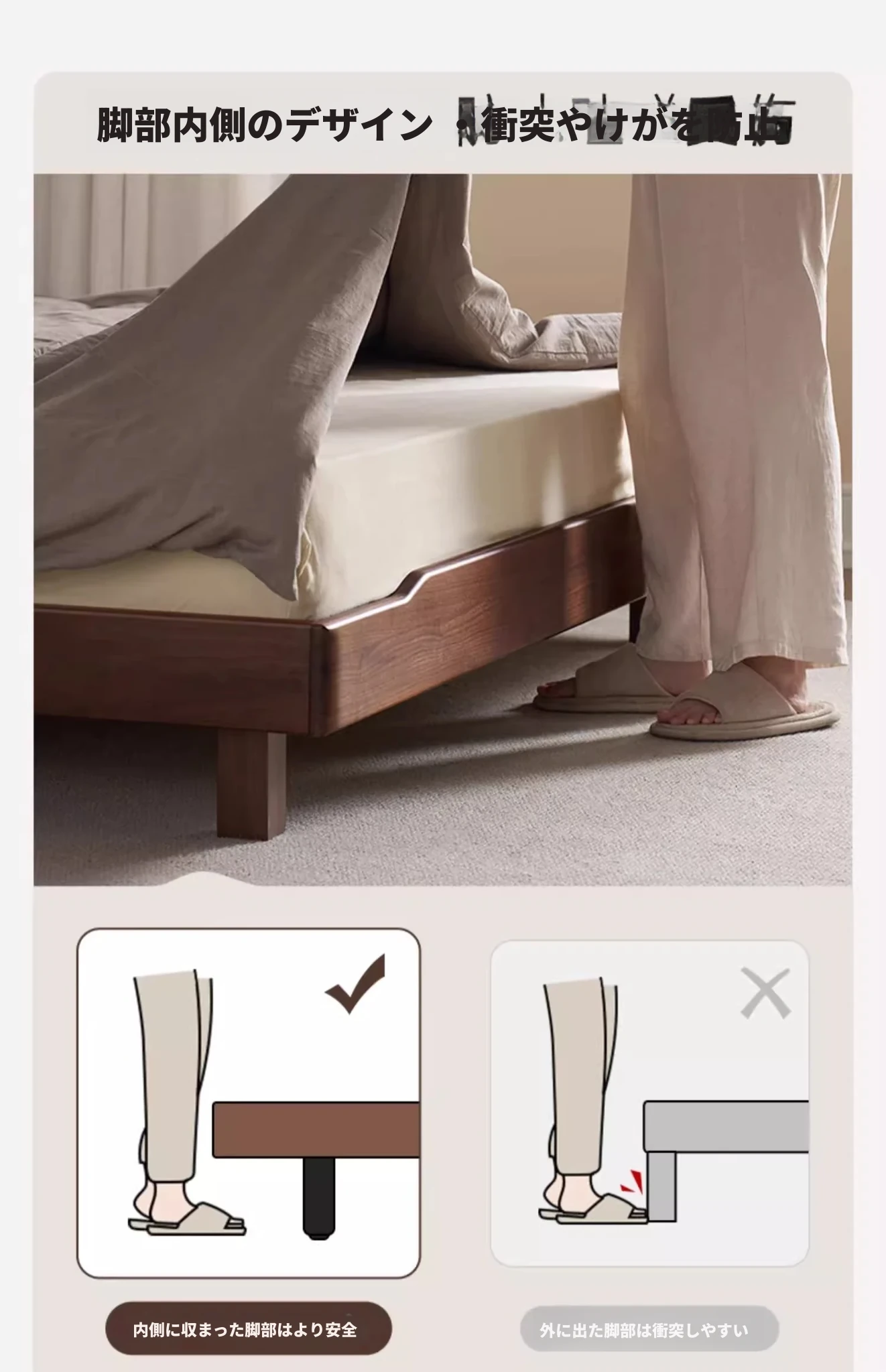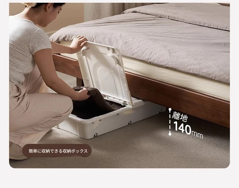 原始エレメント 無垢材使用 モダンシンプル ブラックウォールナット ダブル浮遊ベッド 小型住宅向け スタイリッシュなデザイン